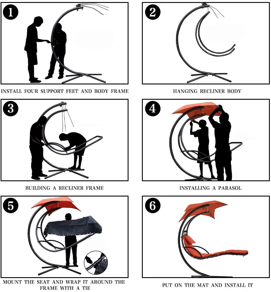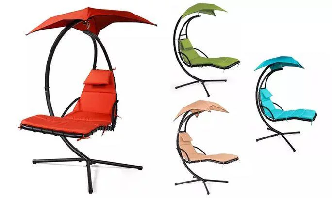Amazingforless Green Hanging Curved Chaise Lounge Hammock Chair Swing Lounger with Cushion for Backyard, Patio w/ Pillow, Canopy, Steel Stand
