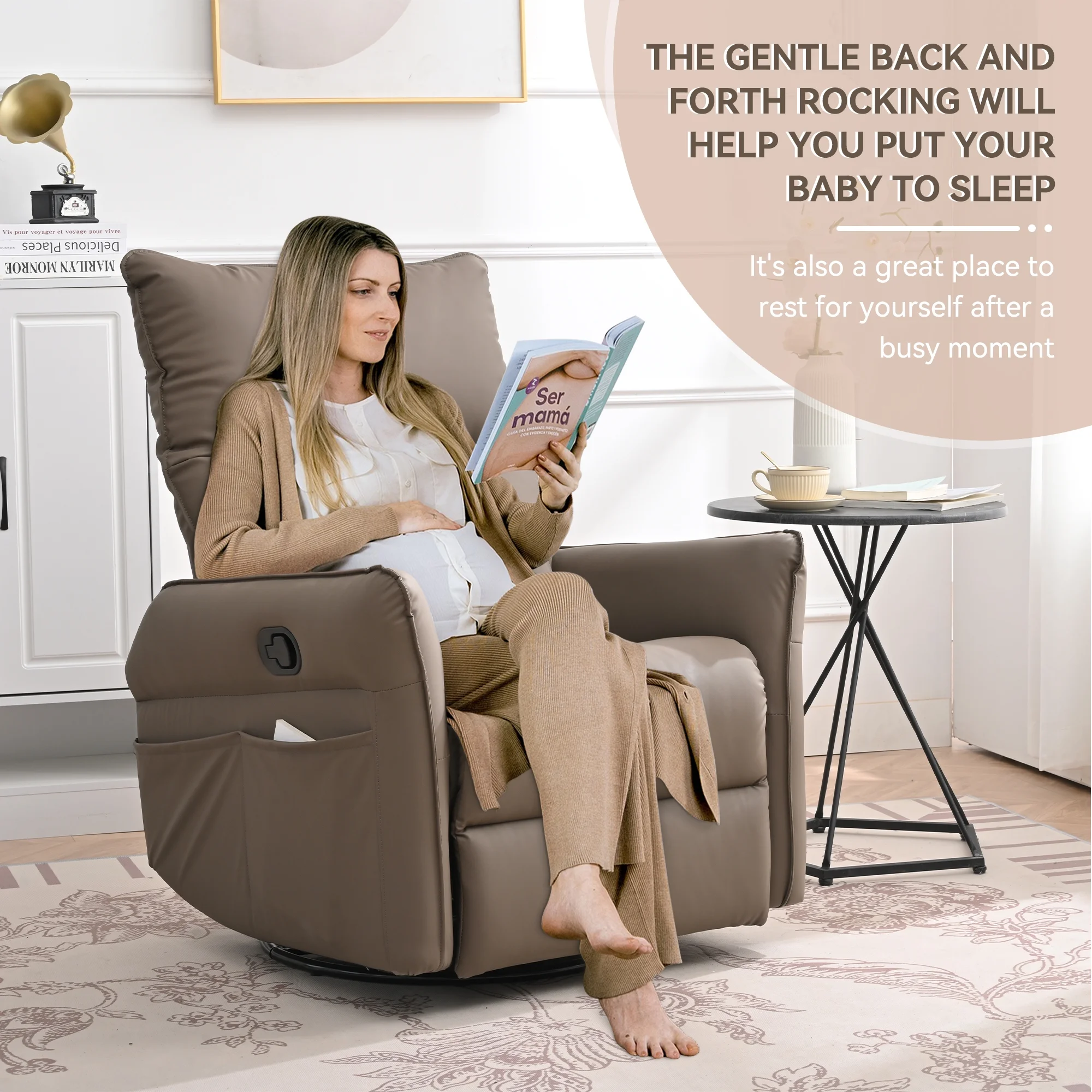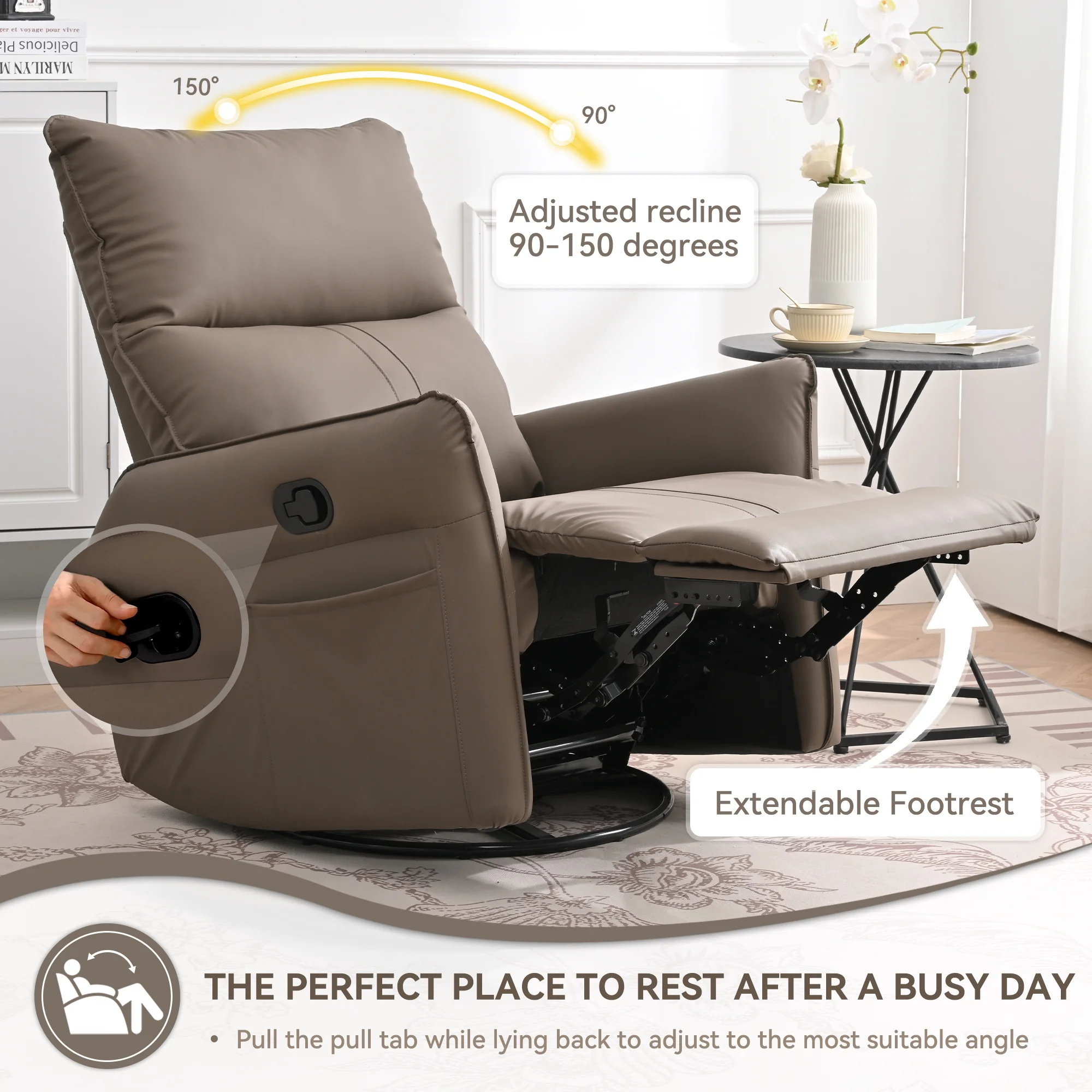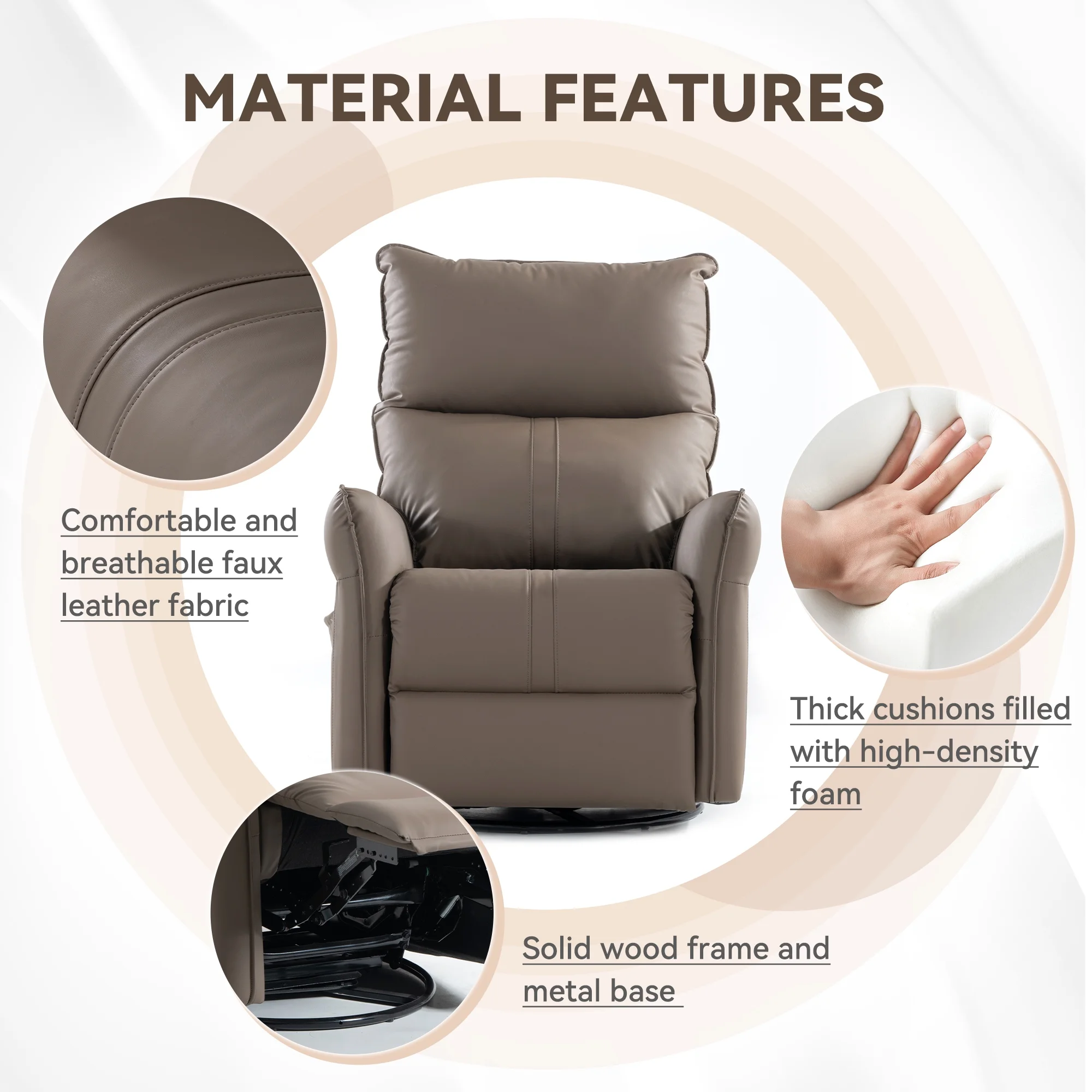 Muumblus 4-in-1 Swivel Glider Rocker Recliner Chair for Baby Nursery, Modern Faux Lehther Upholstered Theater Chir for Living Room, Brown