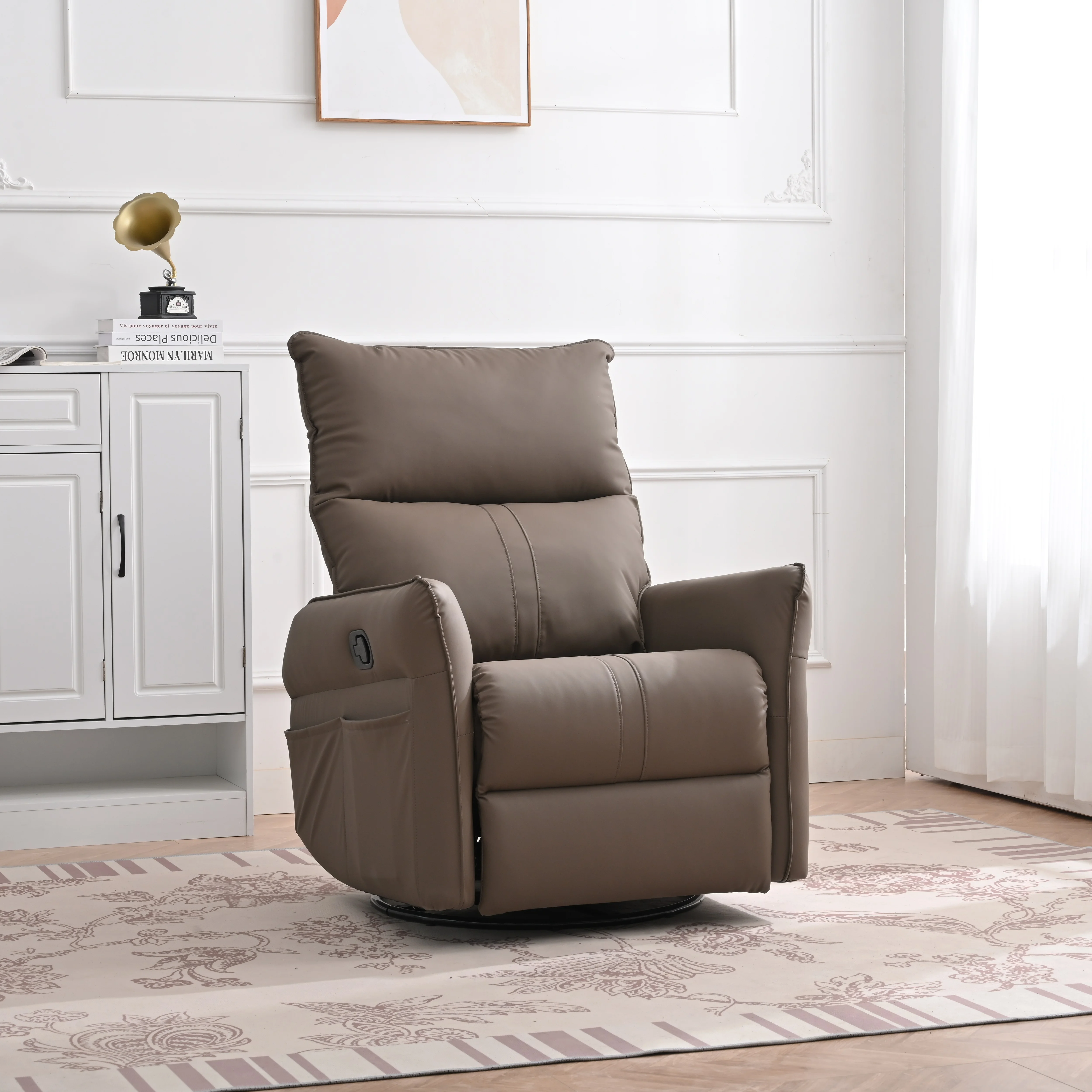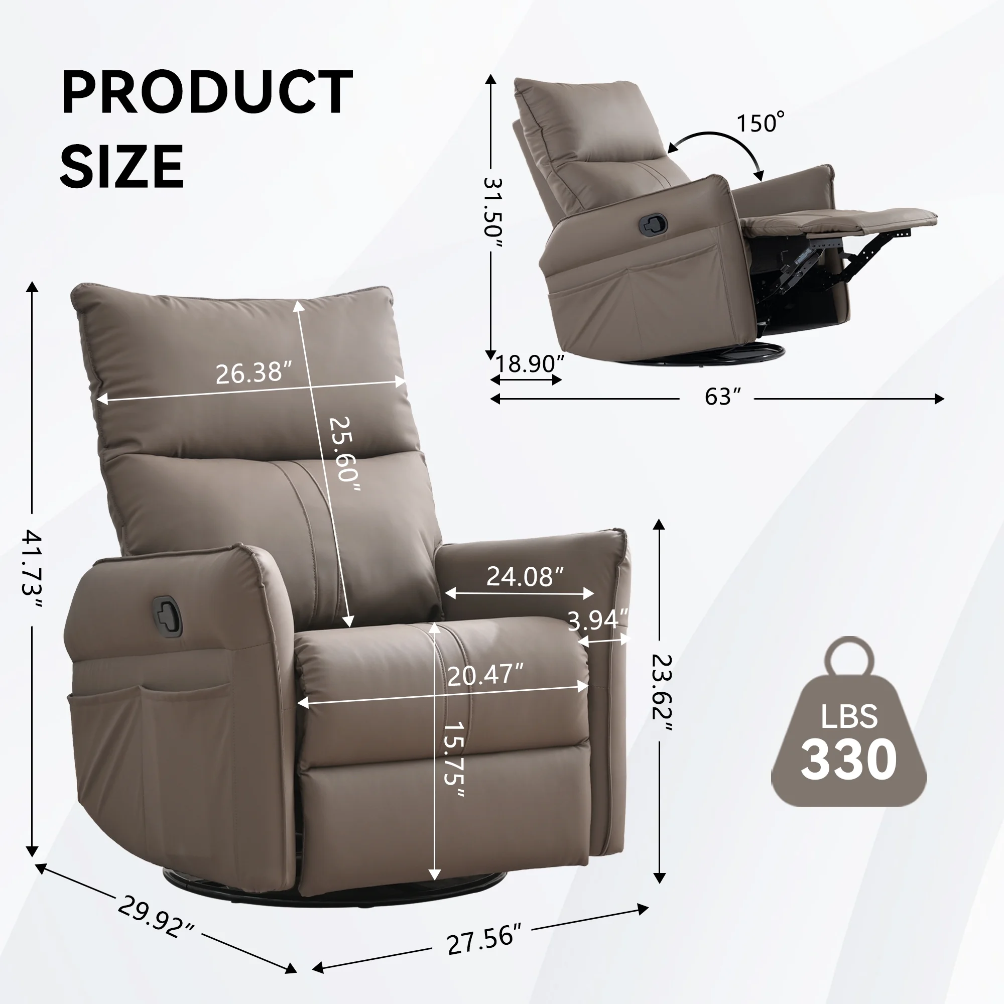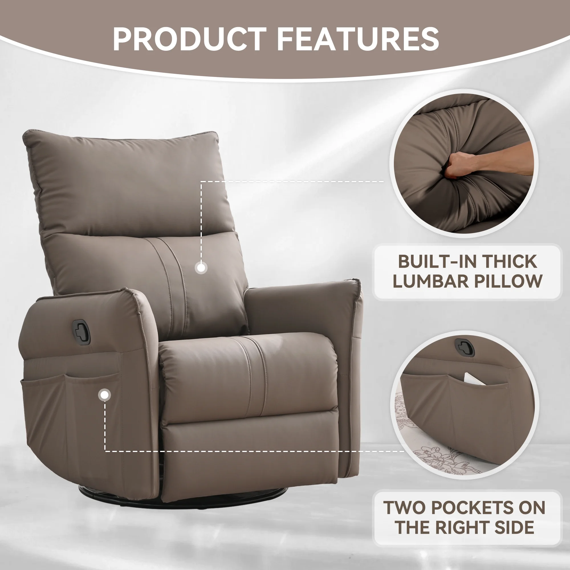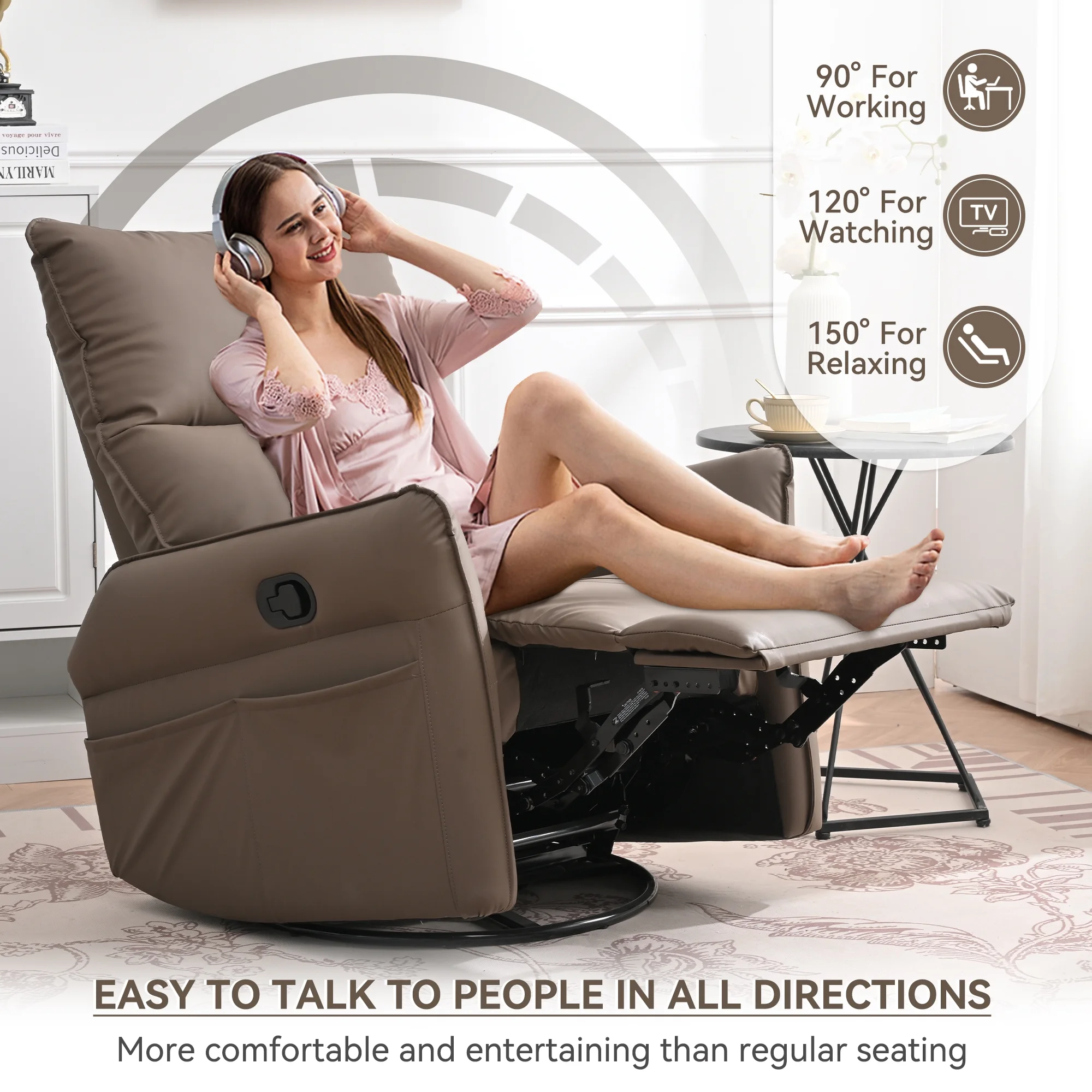 Muumblus 4-in-1 Swivel Glider Rocker Recliner Chair for Baby Nursery, Modern Faux Lehther Upholstered Theater Chir for Living Room, Brown