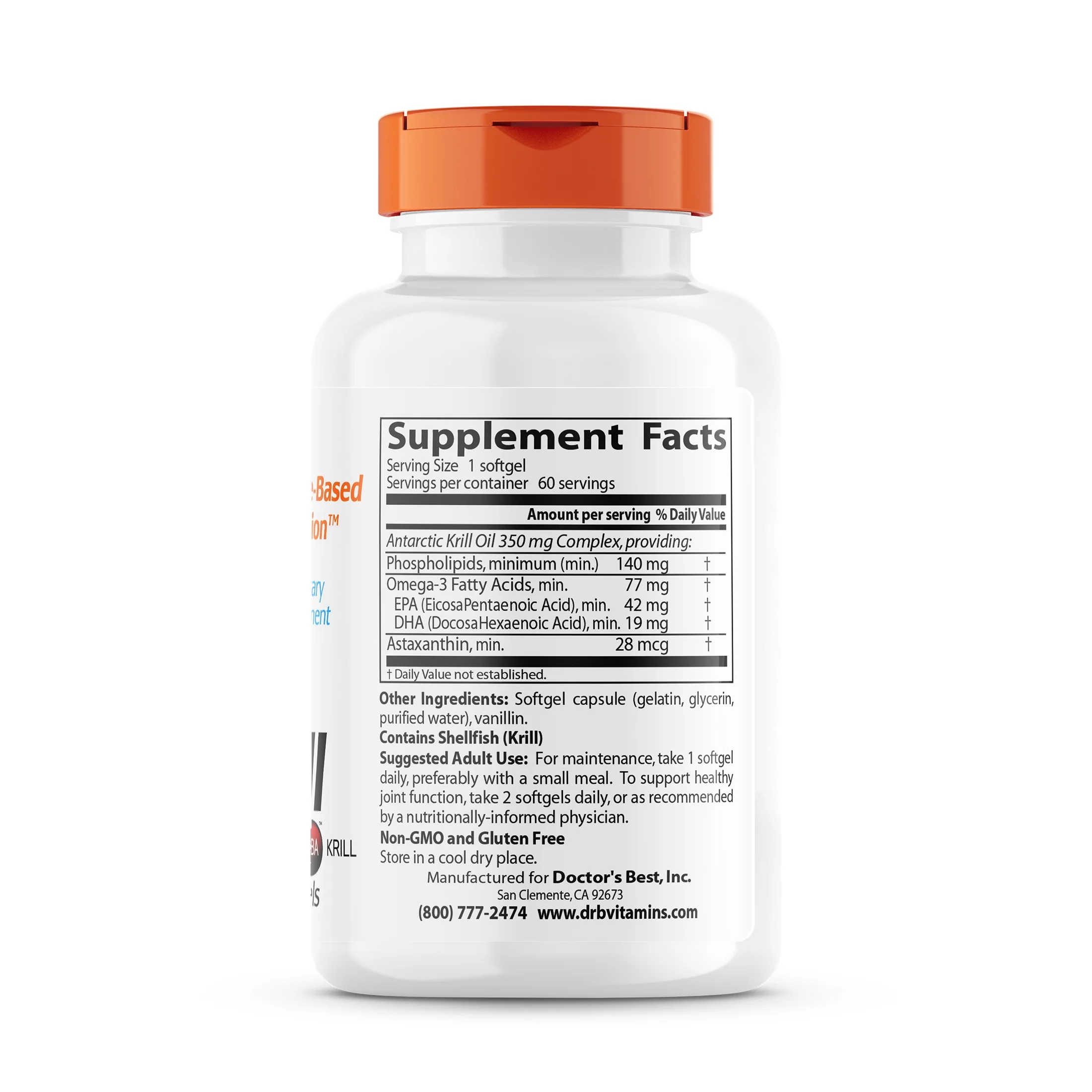 Doctor's Best Real Krill, Non-GMO, Gluten Free, Highly Active Omega-3's, 60 Softgels