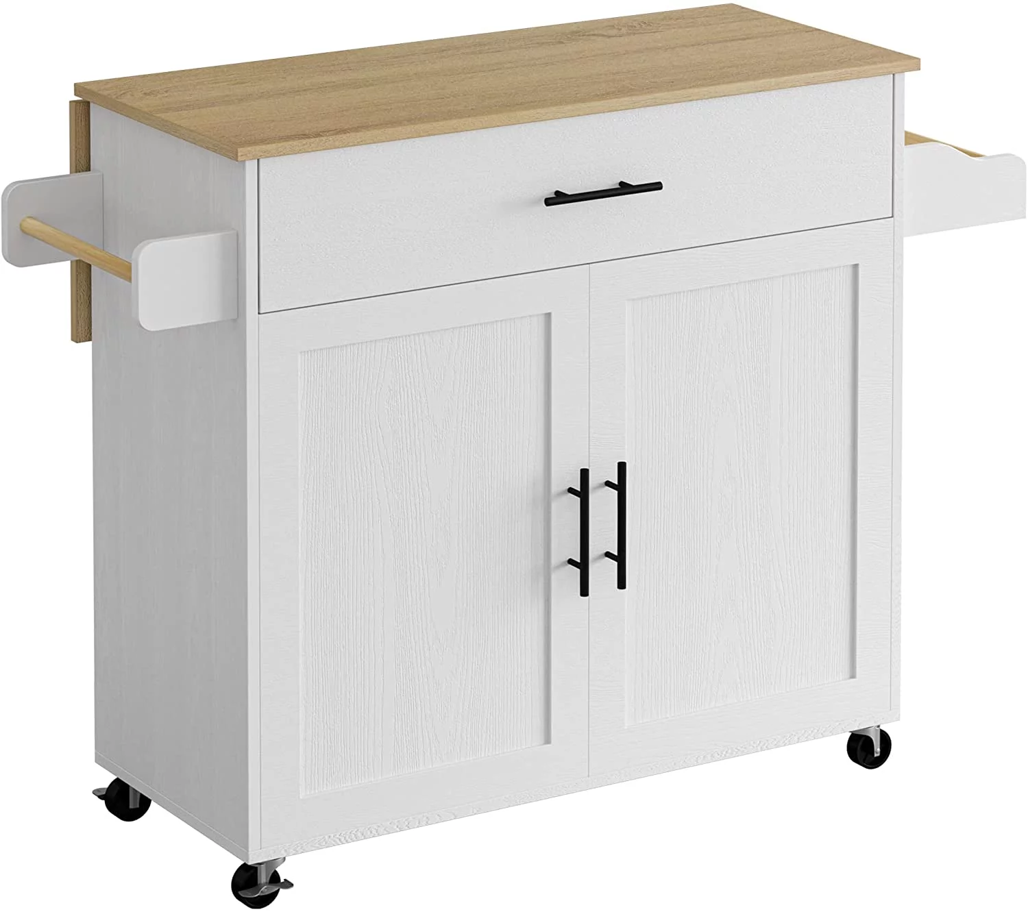 IRONCK Rolling Kitchen Island with Storage, with Storage Cabinet, Drawer, Spice Rack, Towel Rack, Kitchen Cart Table for Kitchen, White
