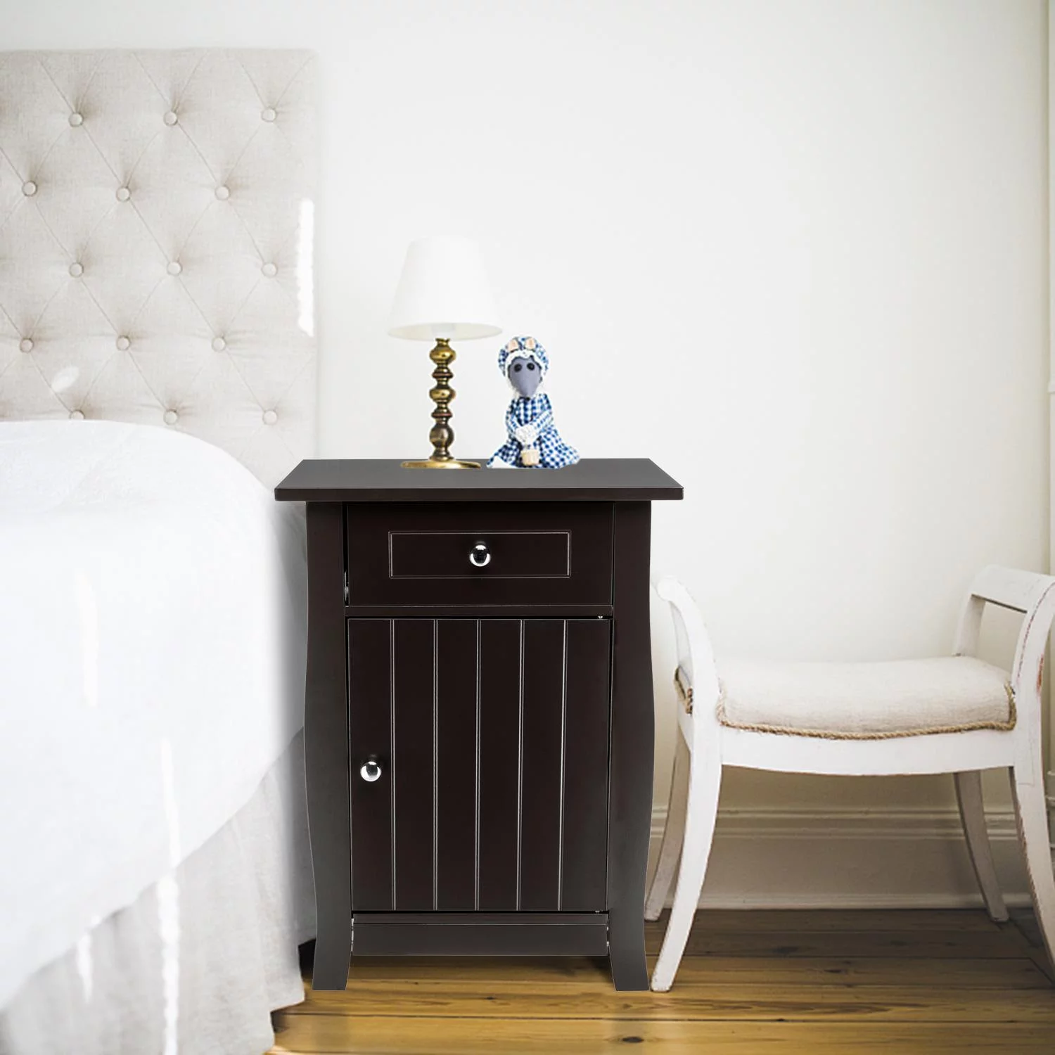 Ktaxon Coffee Nightstand with Drawer & Roomy Storage Cabinet Bedside End Tables for Bedroom 24.5"
