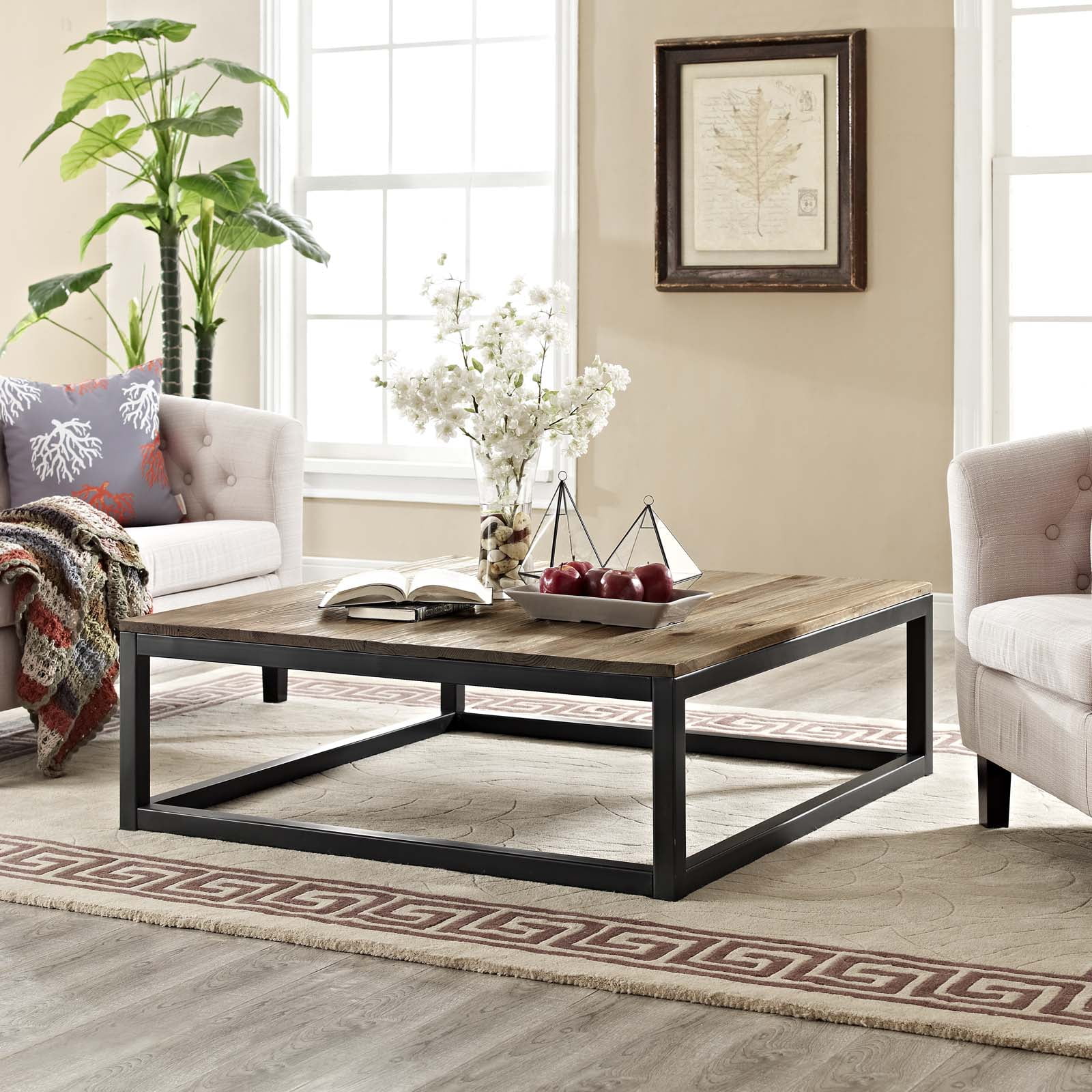Industrial Country Cottage Farm Beach House Living Room Lounge Club Lobby Coffee Table, Metal Steel Wood, Brown