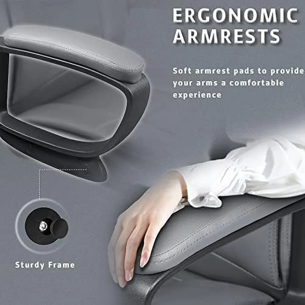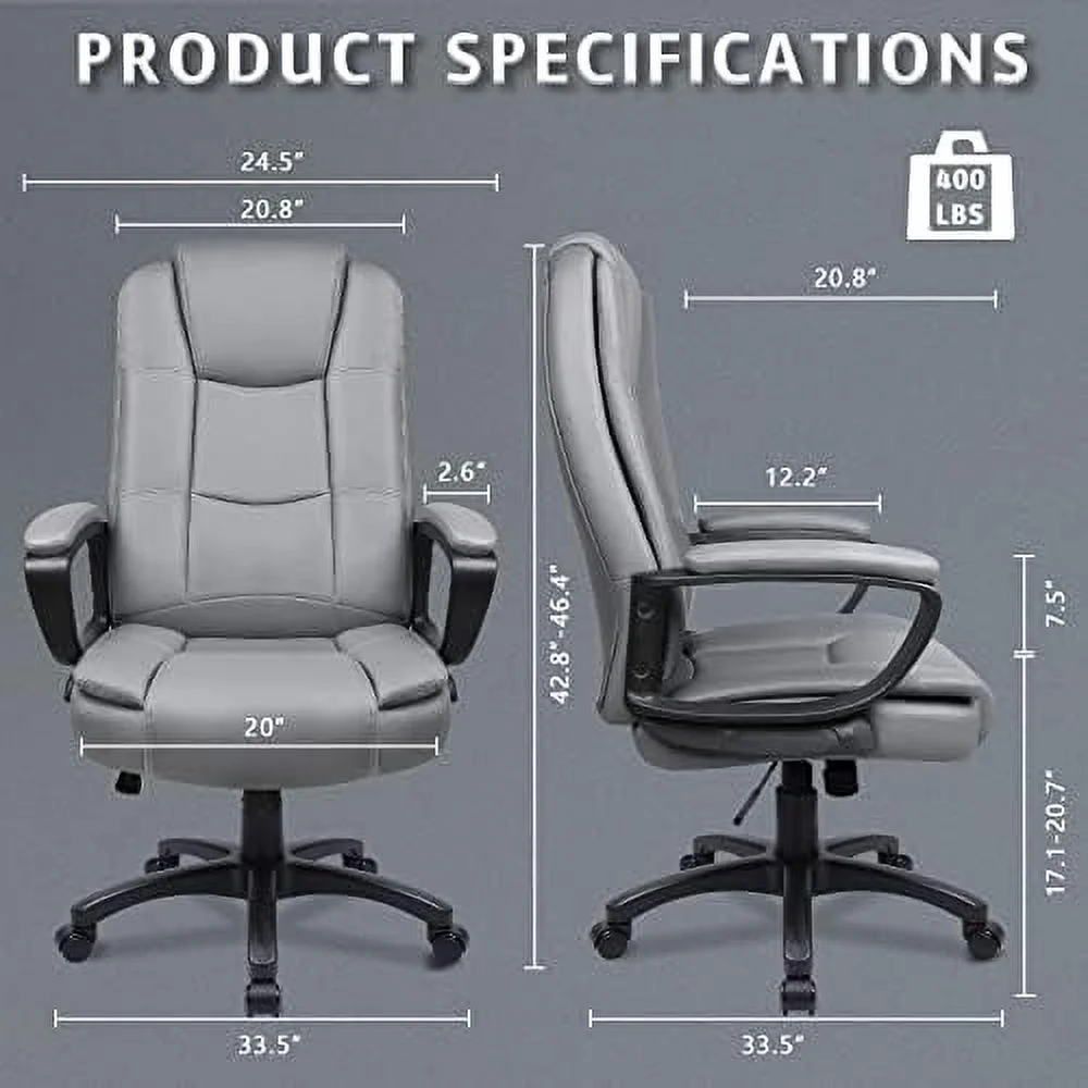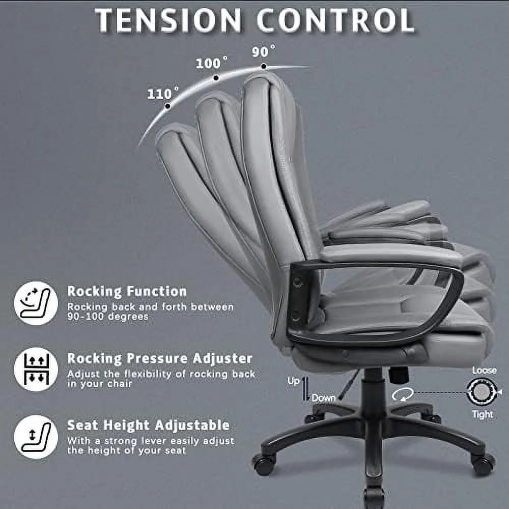 CCBIUOMBO Office Desk Chair Big and Tall Managerial Executive Chair High Back Computer Chair Ergonomic Adjustable Height PU Leather Chairs with Cushions Armrest for Long Time Sitting (