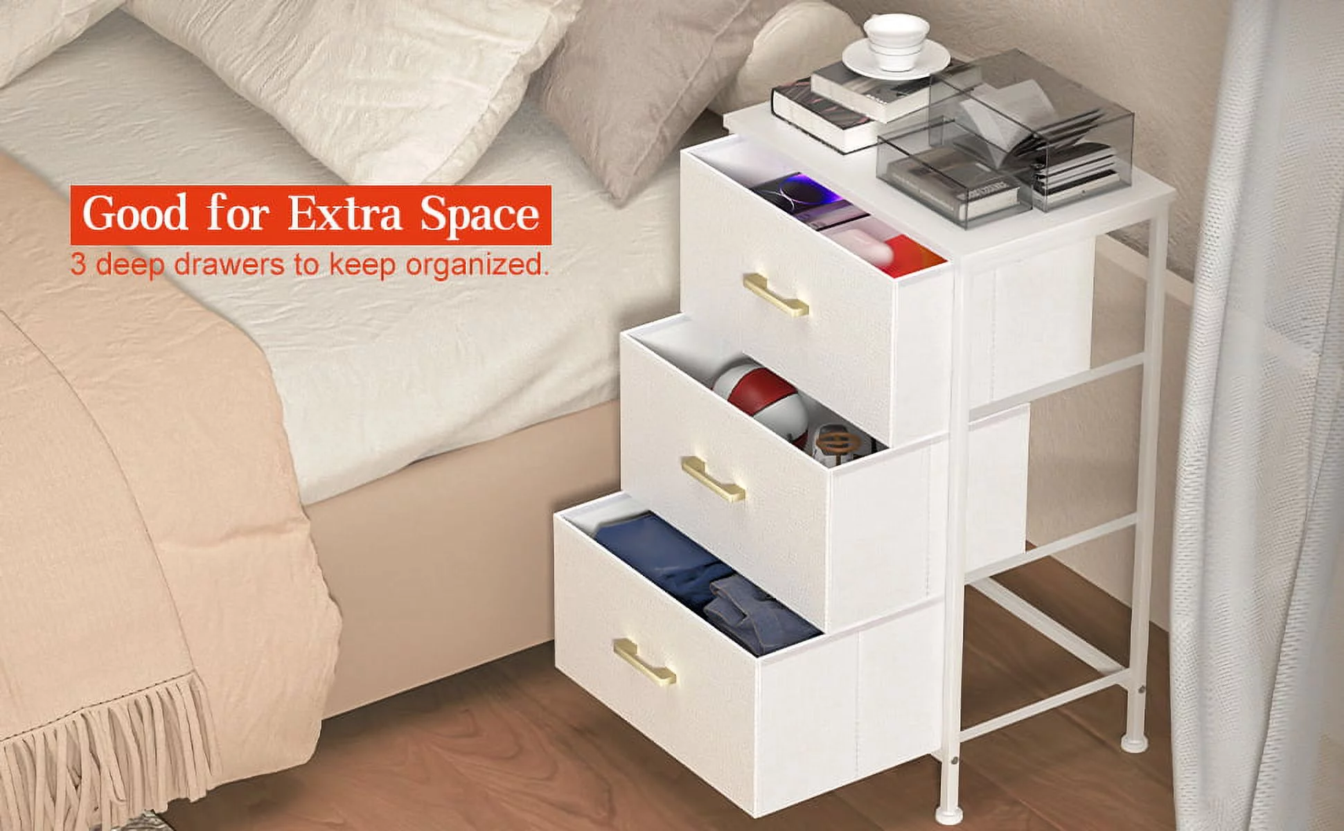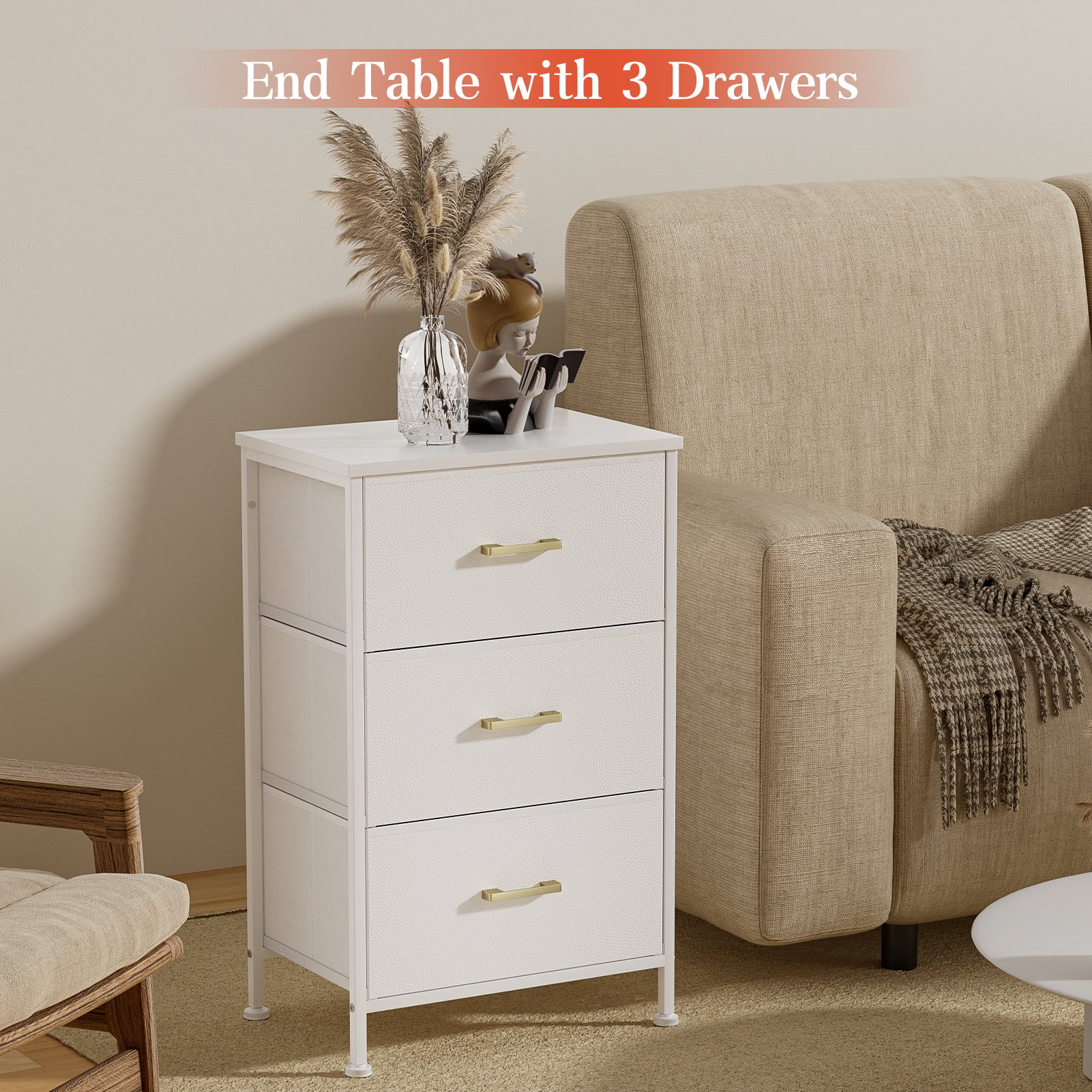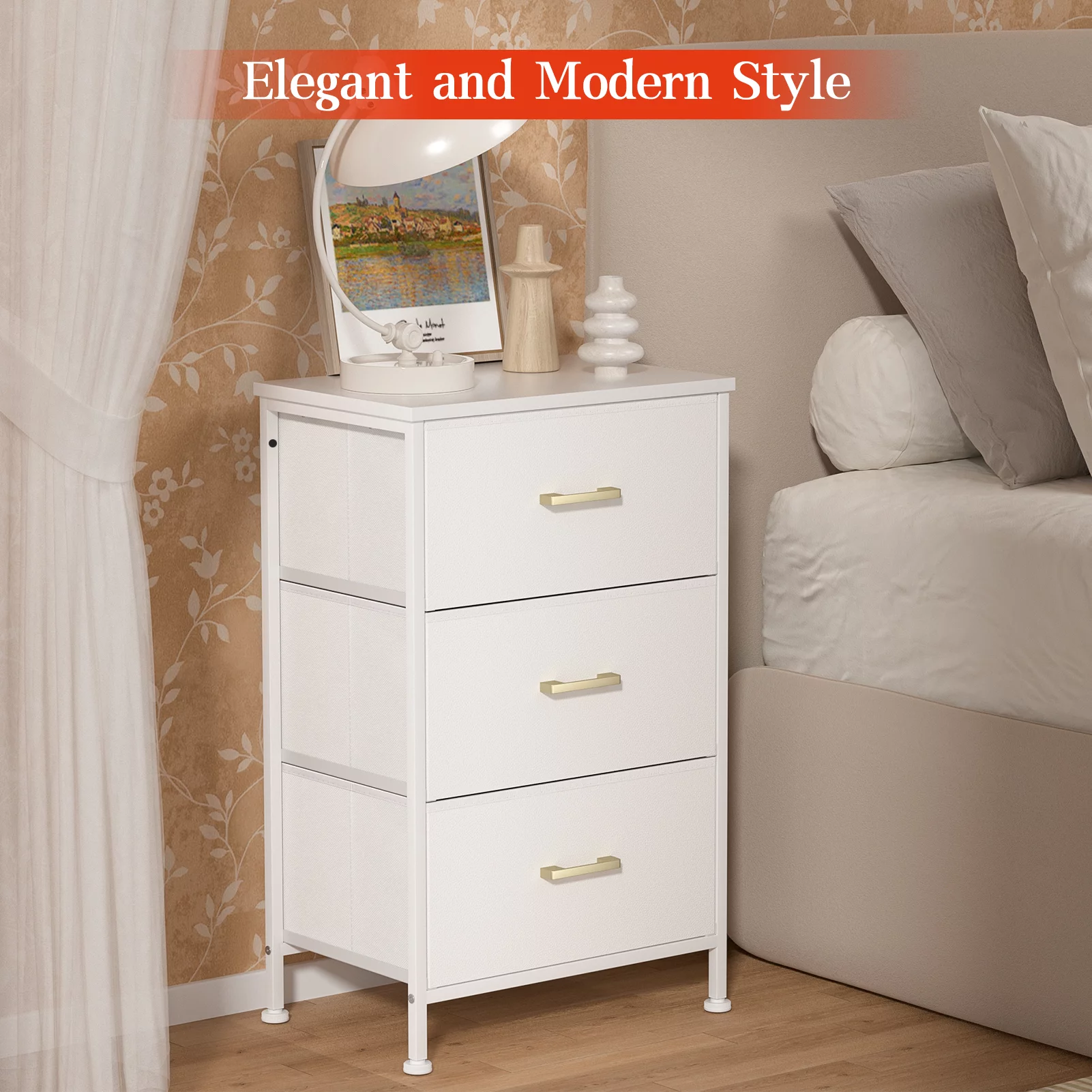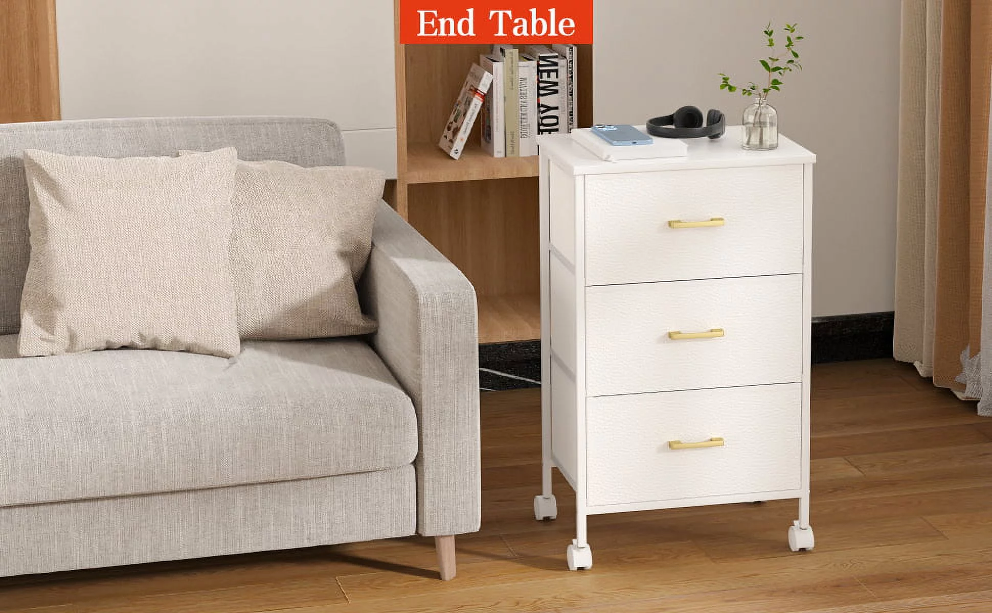 Duerer 6 Drawer White Double Dresser, Wood Horizontal Cabinet Dresser Chest of Drawers for Bedroom, Living Room