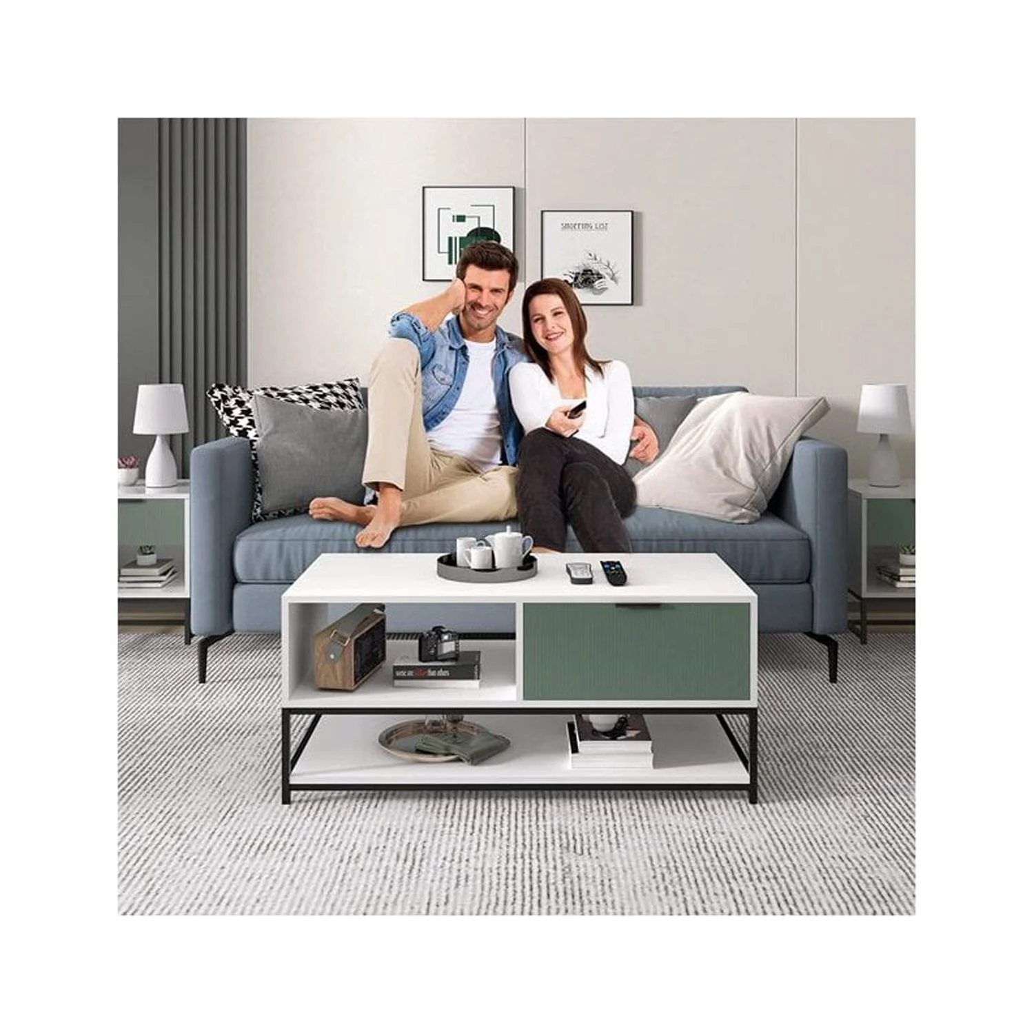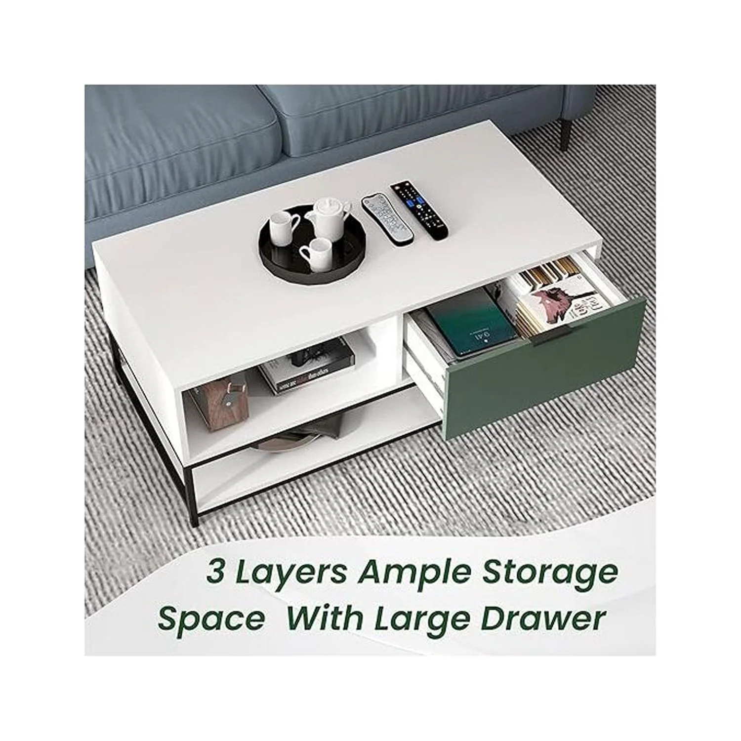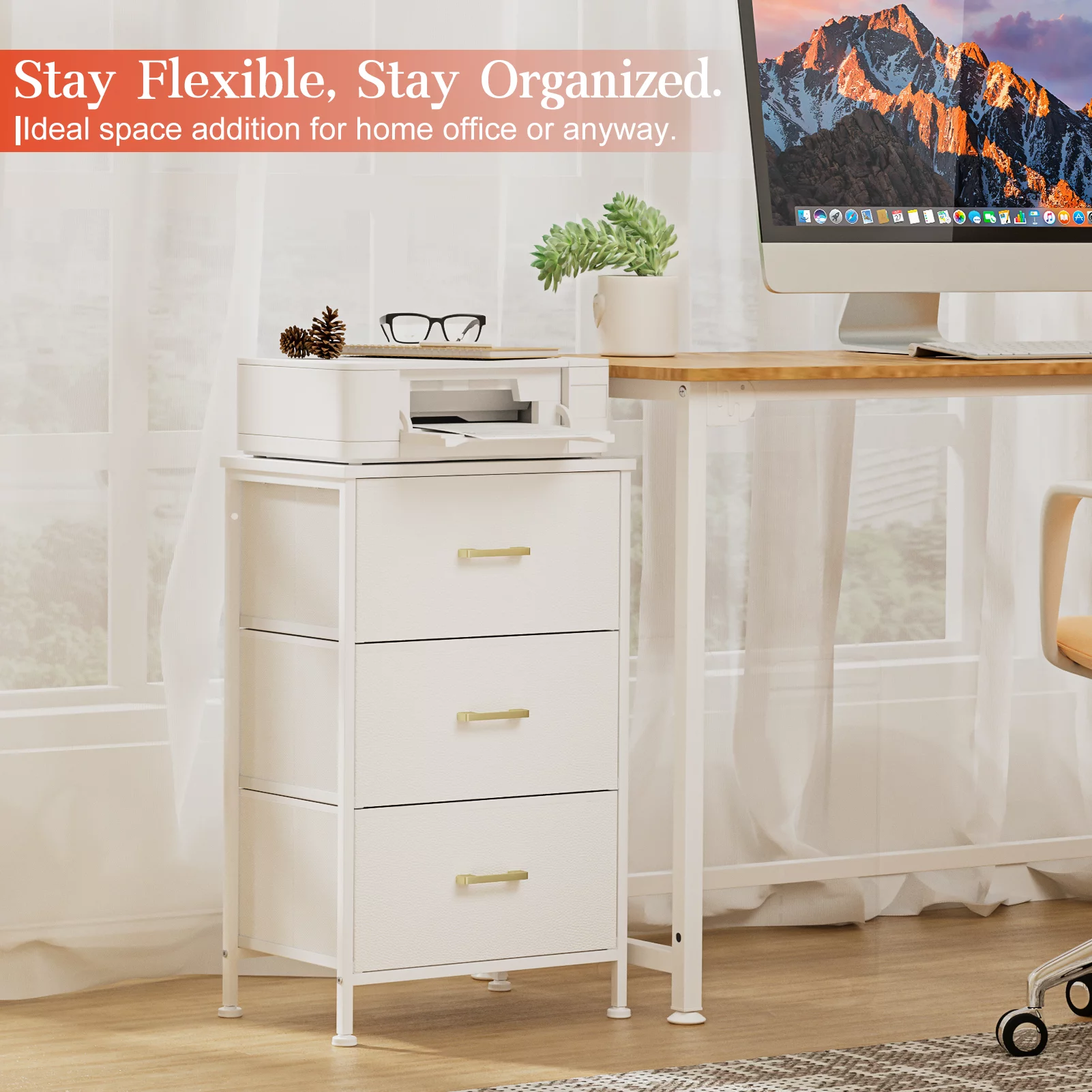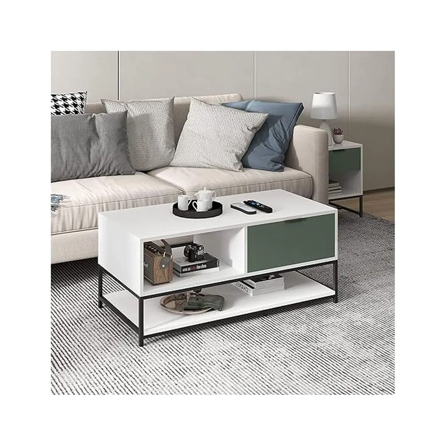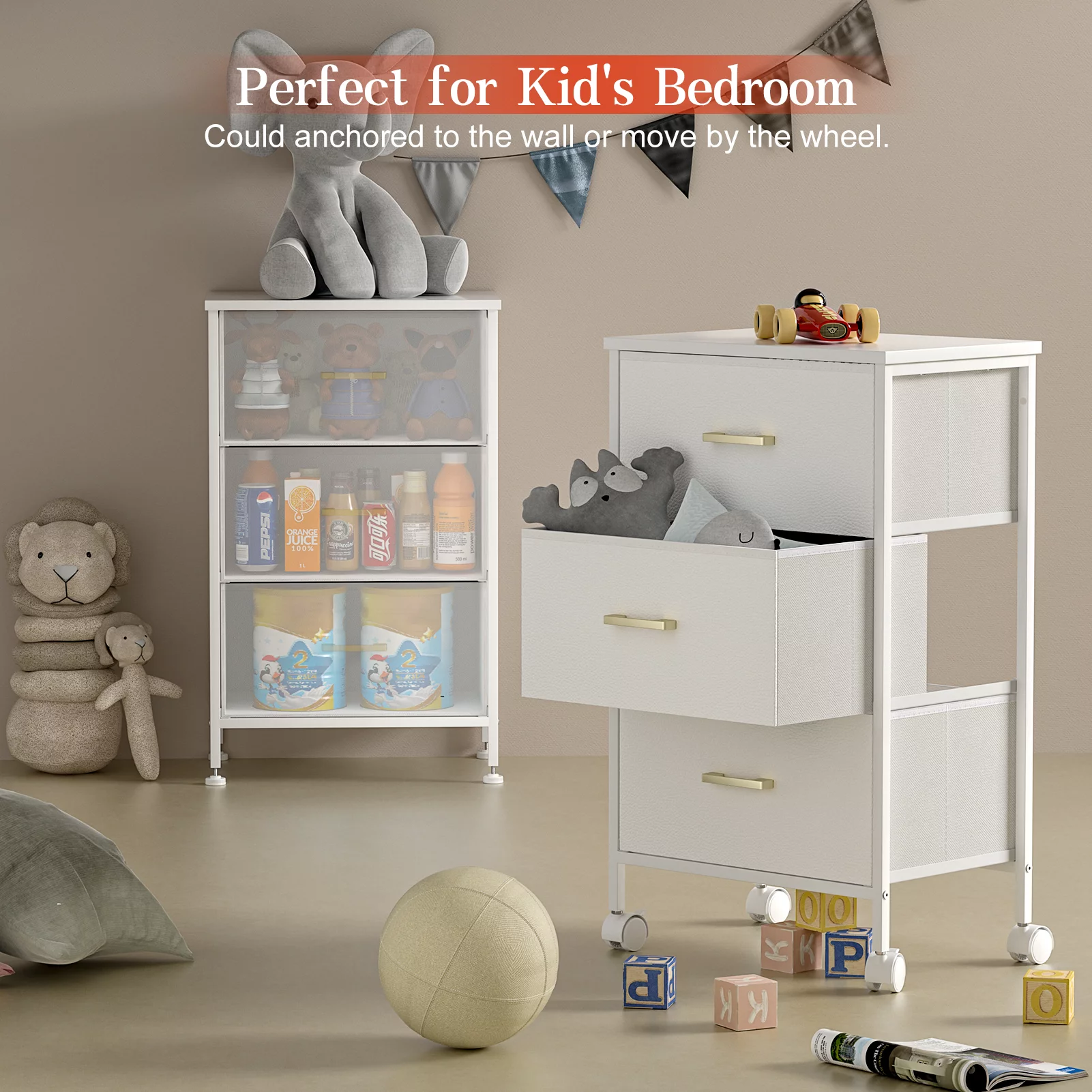 Duerer 6 Drawer White Double Dresser, Wood Horizontal Cabinet Dresser Chest of Drawers for Bedroom, Living Room