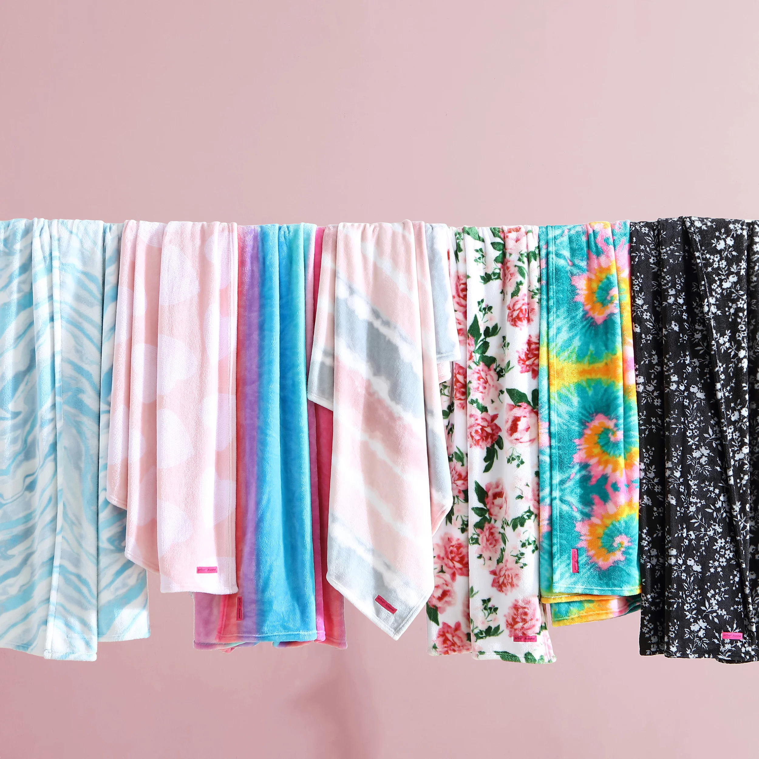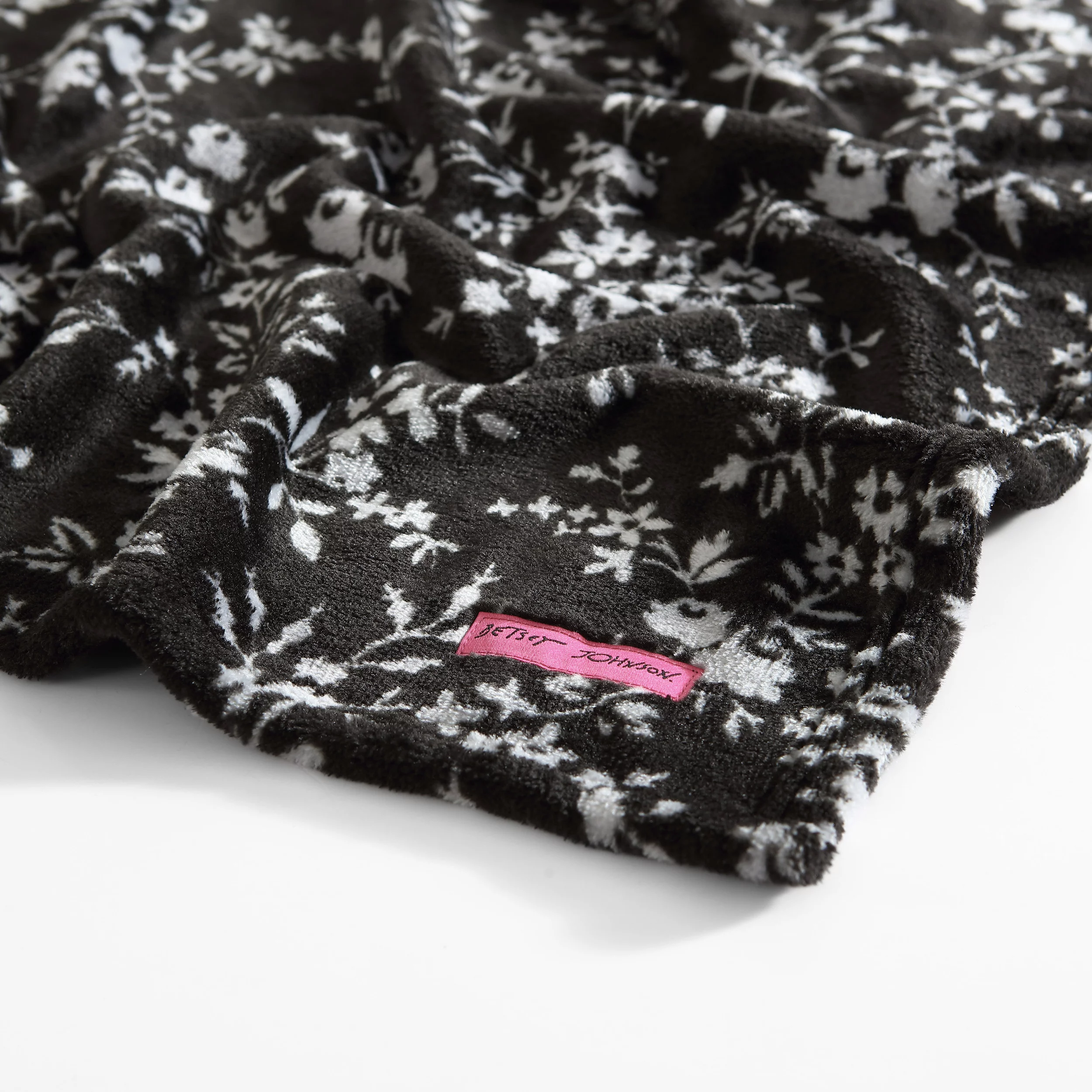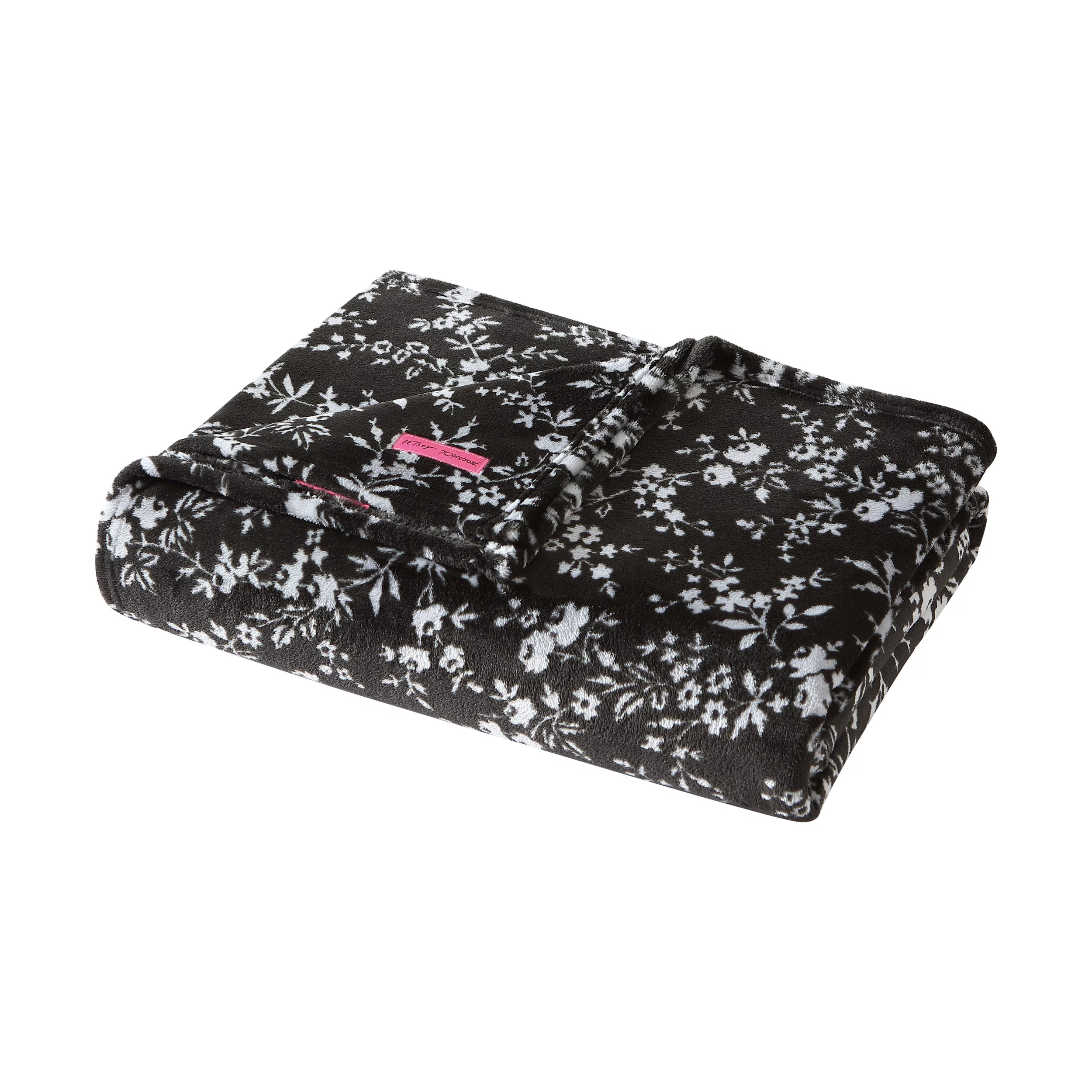 Betsey Johnson Pretty Floral Black Ultra Soft Plush Twin Blanket