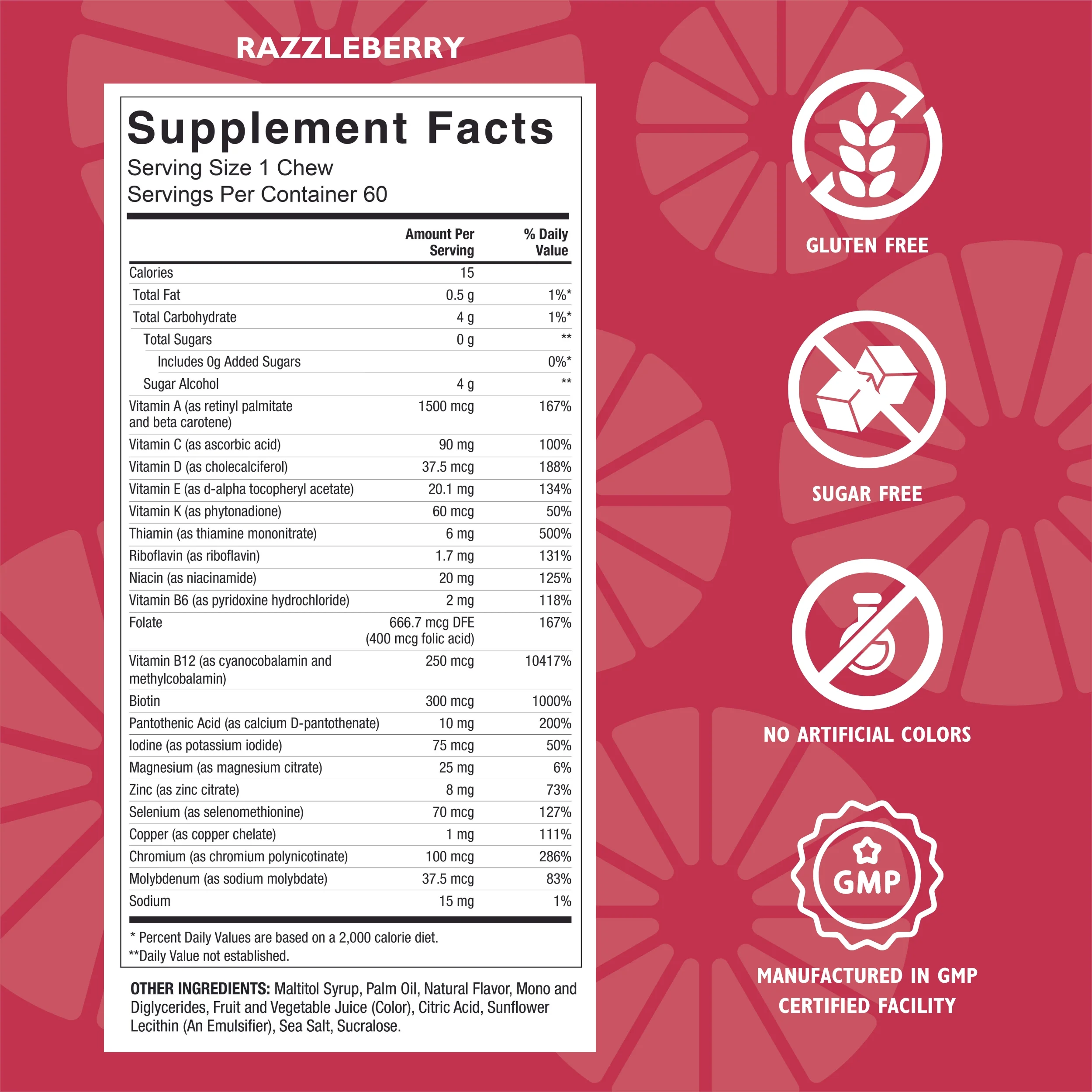 Celebrate Vitamins Bariatric Multivitamin Soft Chews, Razzleberry/Strawberry/Orange, 180 count