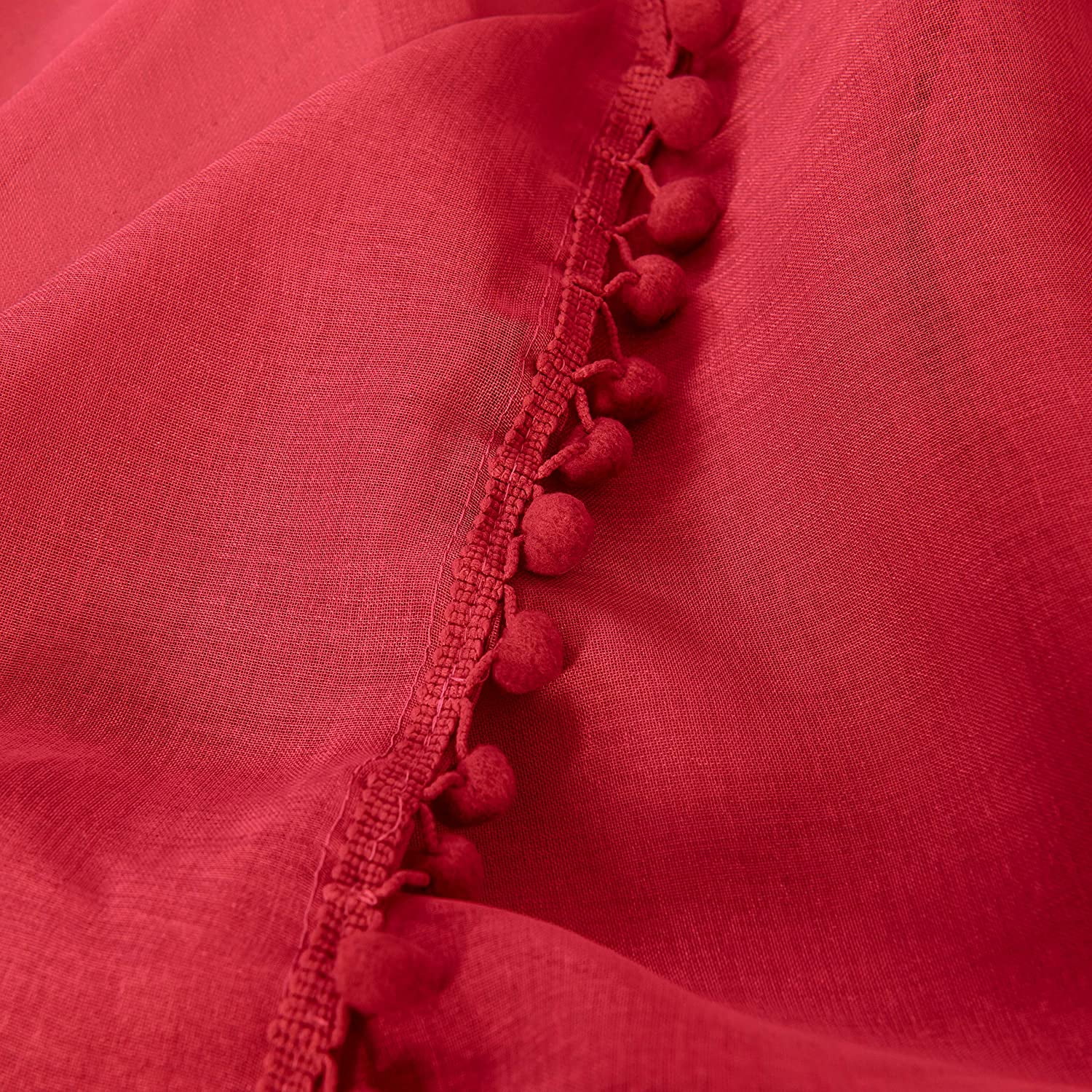 Elegant Comfort Semi-Sheer Curtains with Pom Pom Tassels - 2 Piece Set - 2 inch Rod Pocket - Solid Sheer Curtain Drapes for Living Room, Bedroom, 60 X 84, Red