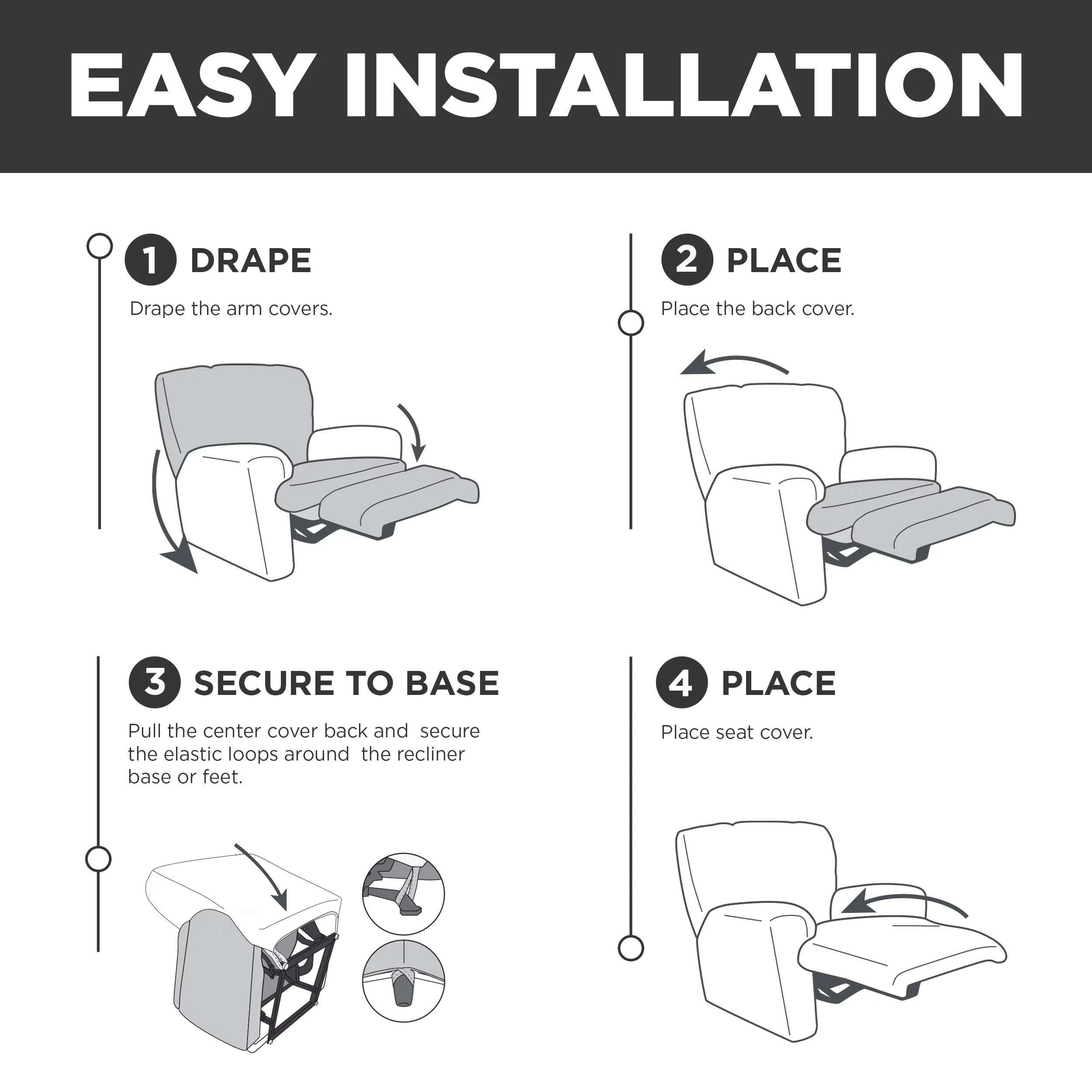 Zenna Home Simply Fit 4-Piece Steps Stretch Recliner Slipcover, Spruce