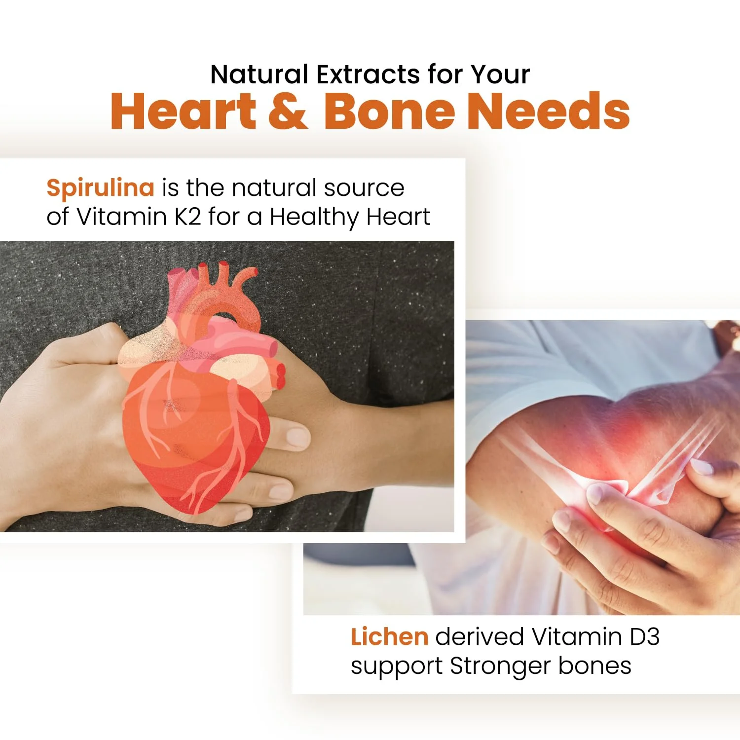 Himalayan Organics Vitamin D3 600 IU + K2 as MK7 Supplement | Supports Stronger Immunity & Bone & Heart Health | Healthy Heart For Men And Women - 120 Veg Tablets