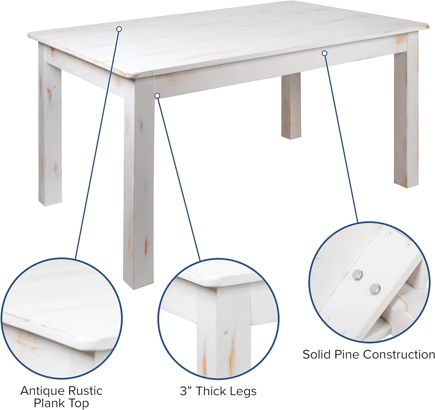 Jessamine 60" X 38" Rectangular Antique Rustic White Solid Pine Farm Dining Table
