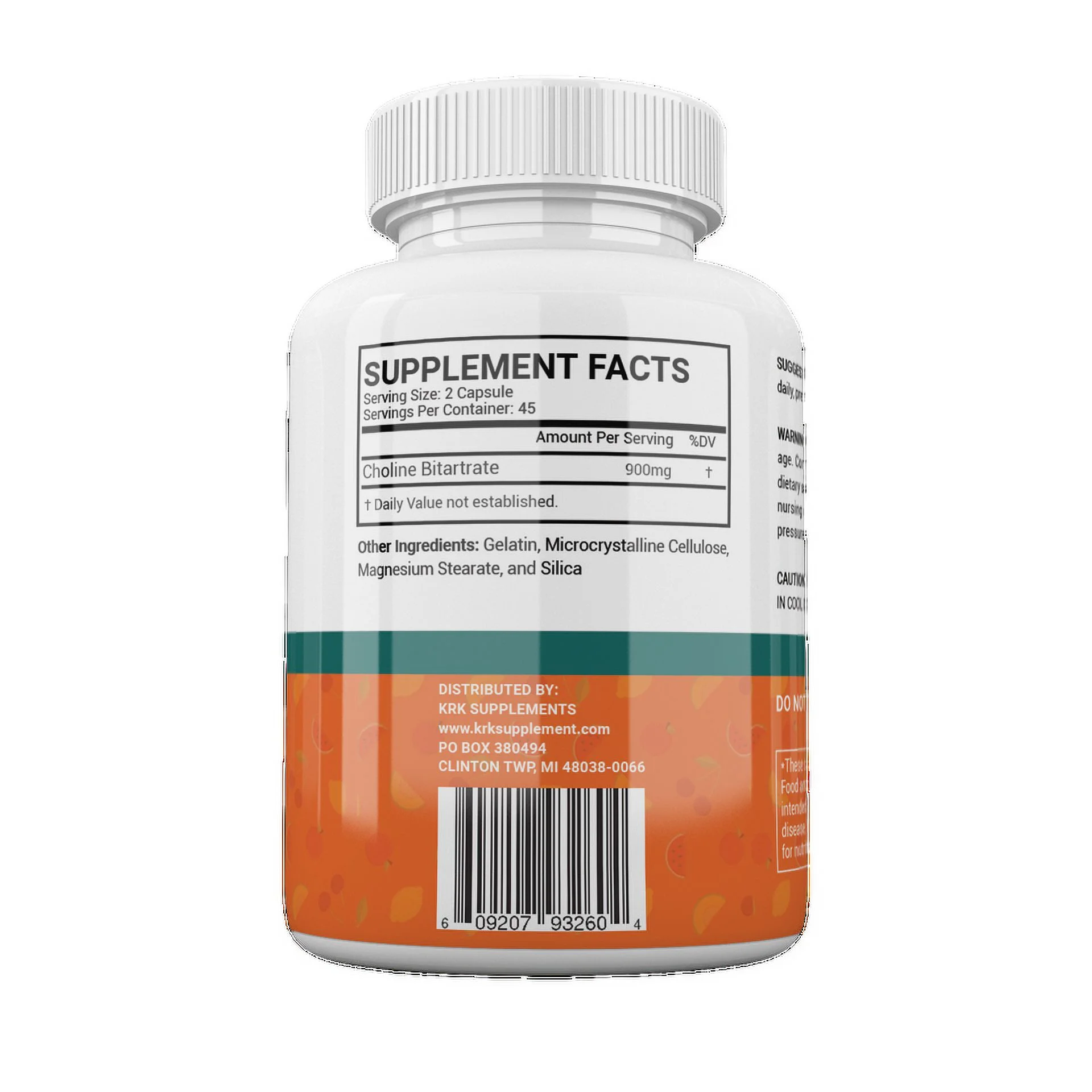 Choline Bitartrate 900mg per serving Brain Memory Booster Nootropic Fatty Liver 90 Capsules