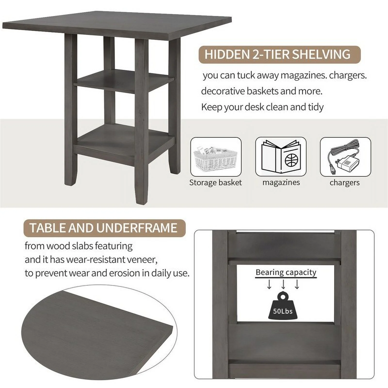 Dining table set of 4 square tables set of 4, rustic kitchen table with 4 upholstered chairs Espresso