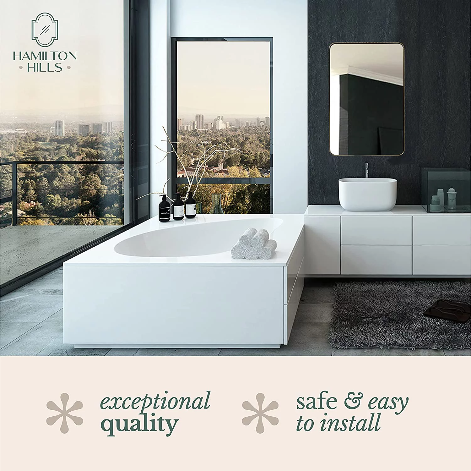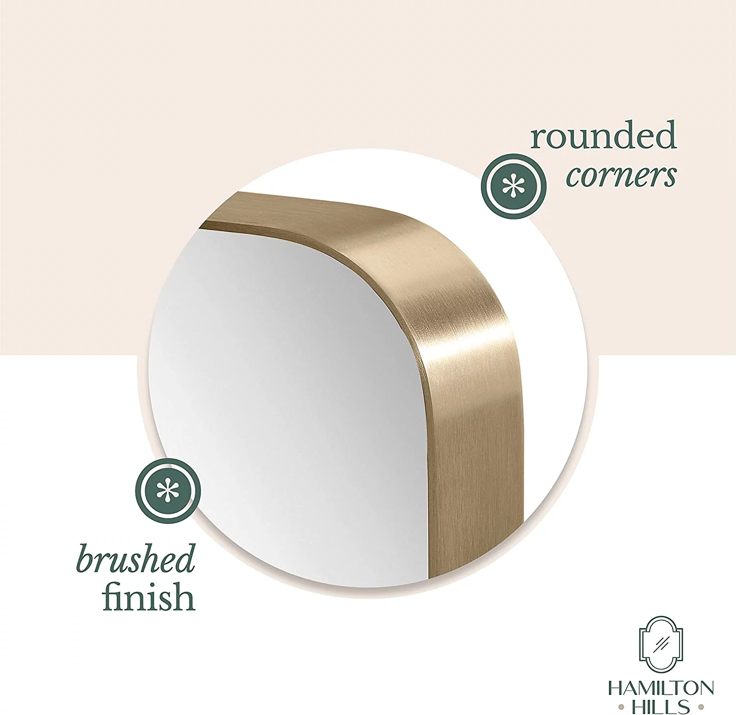 Hamilton Hills Contemporary Brushed Metal Wall Mirror | Glass Panel Gold Framed Rounded Corner Deep Set Design | Mirrored Rectangle Hangs Horizontal or Vertical (24" x 36")