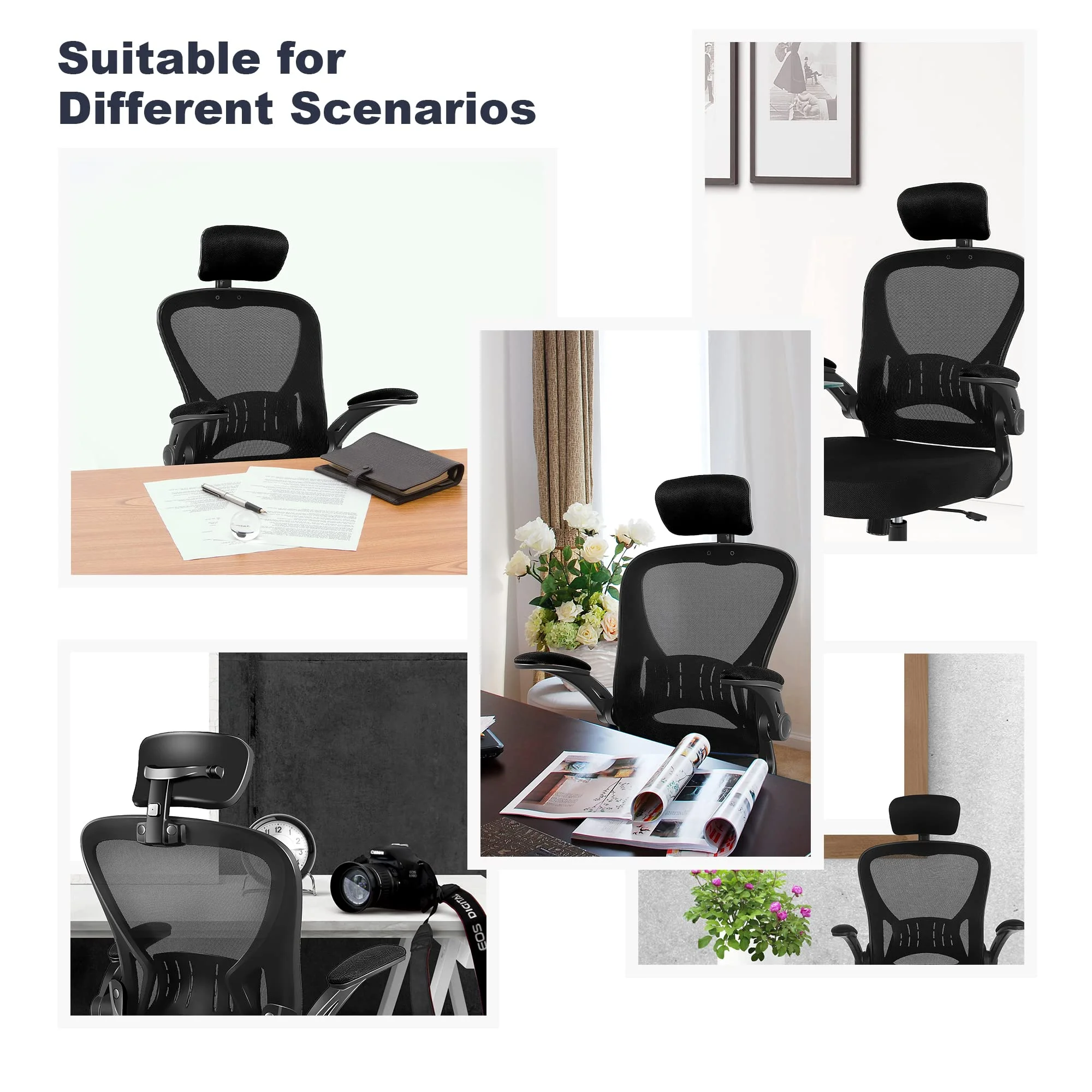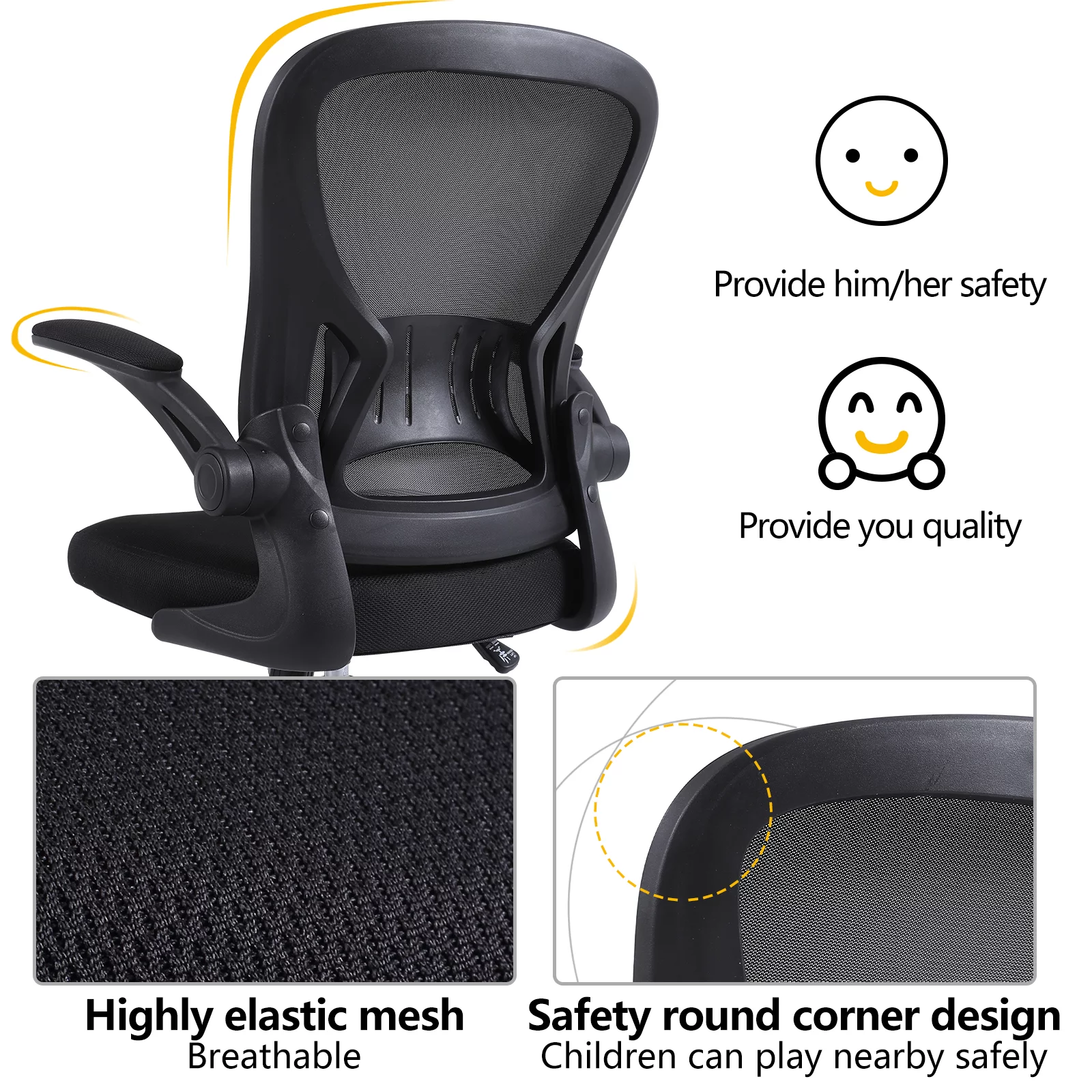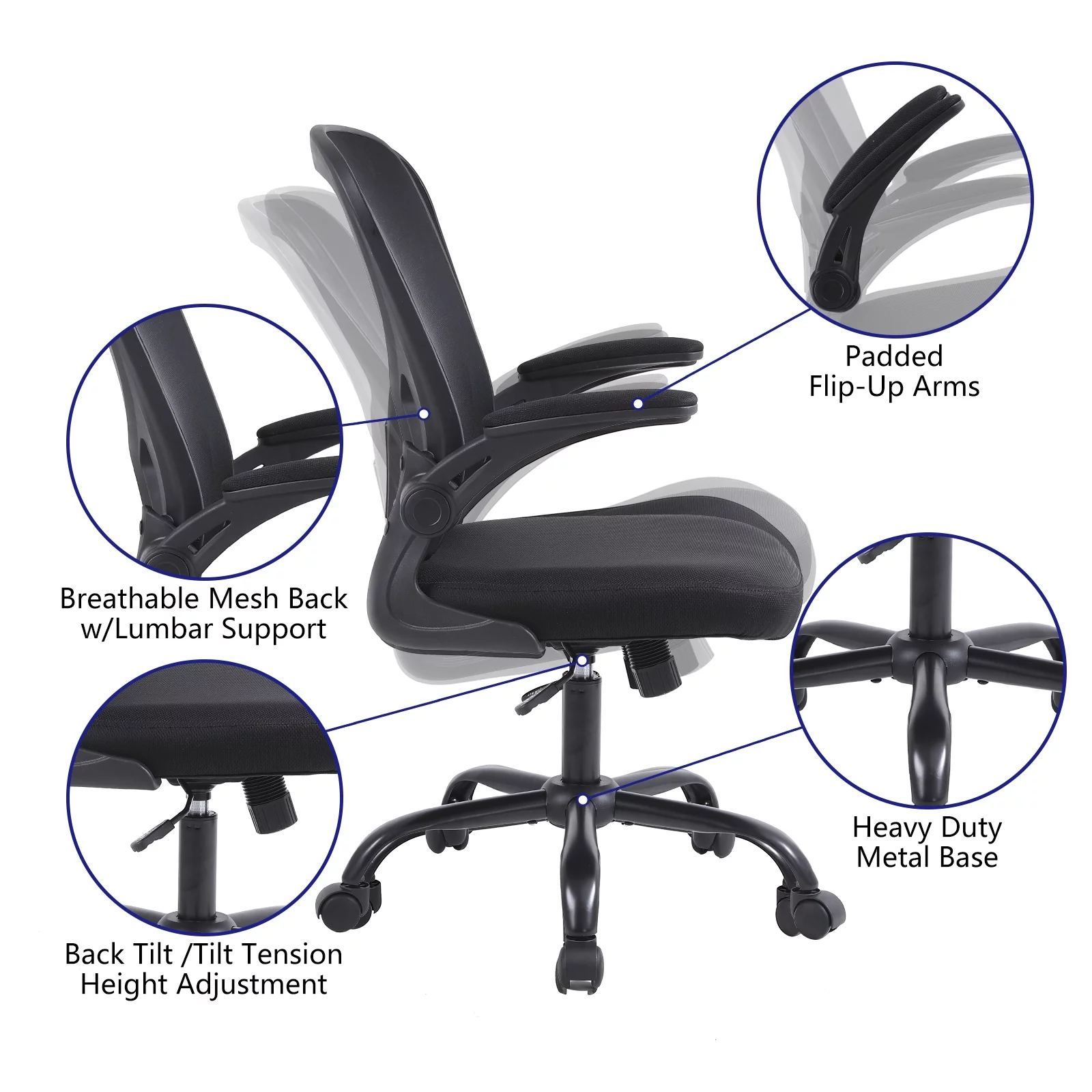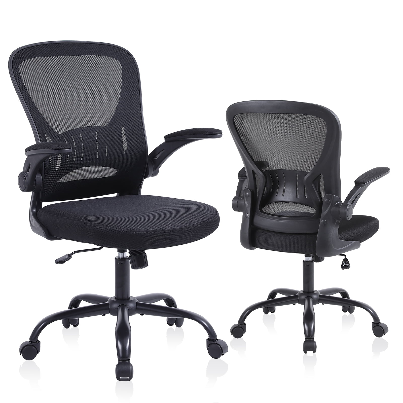 Flysky Ergonomic Office Chair, Home Office Desk Chair, Mesh Swivel Task Chair with Lumbar Support and Adjustable Flip-up Arms, Black