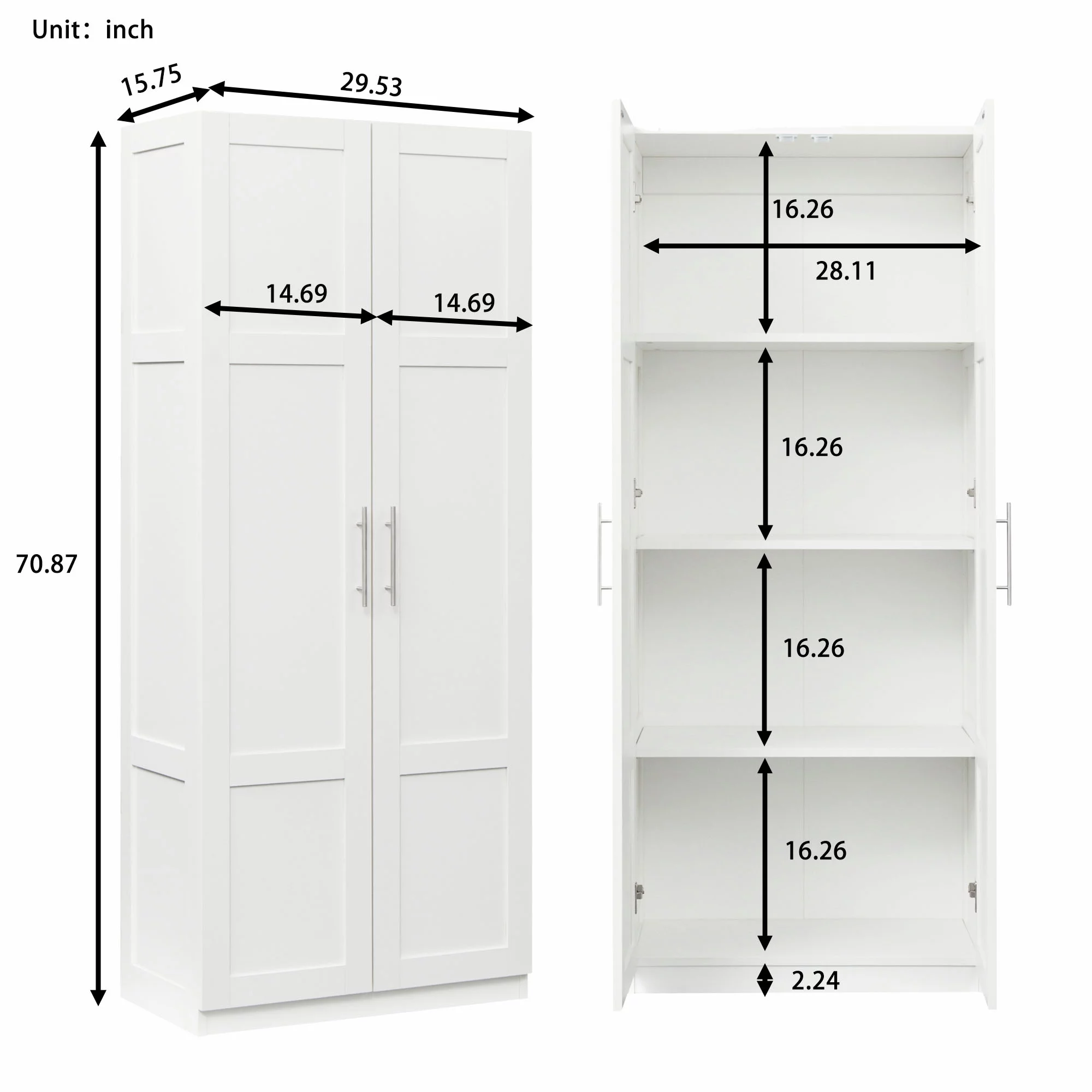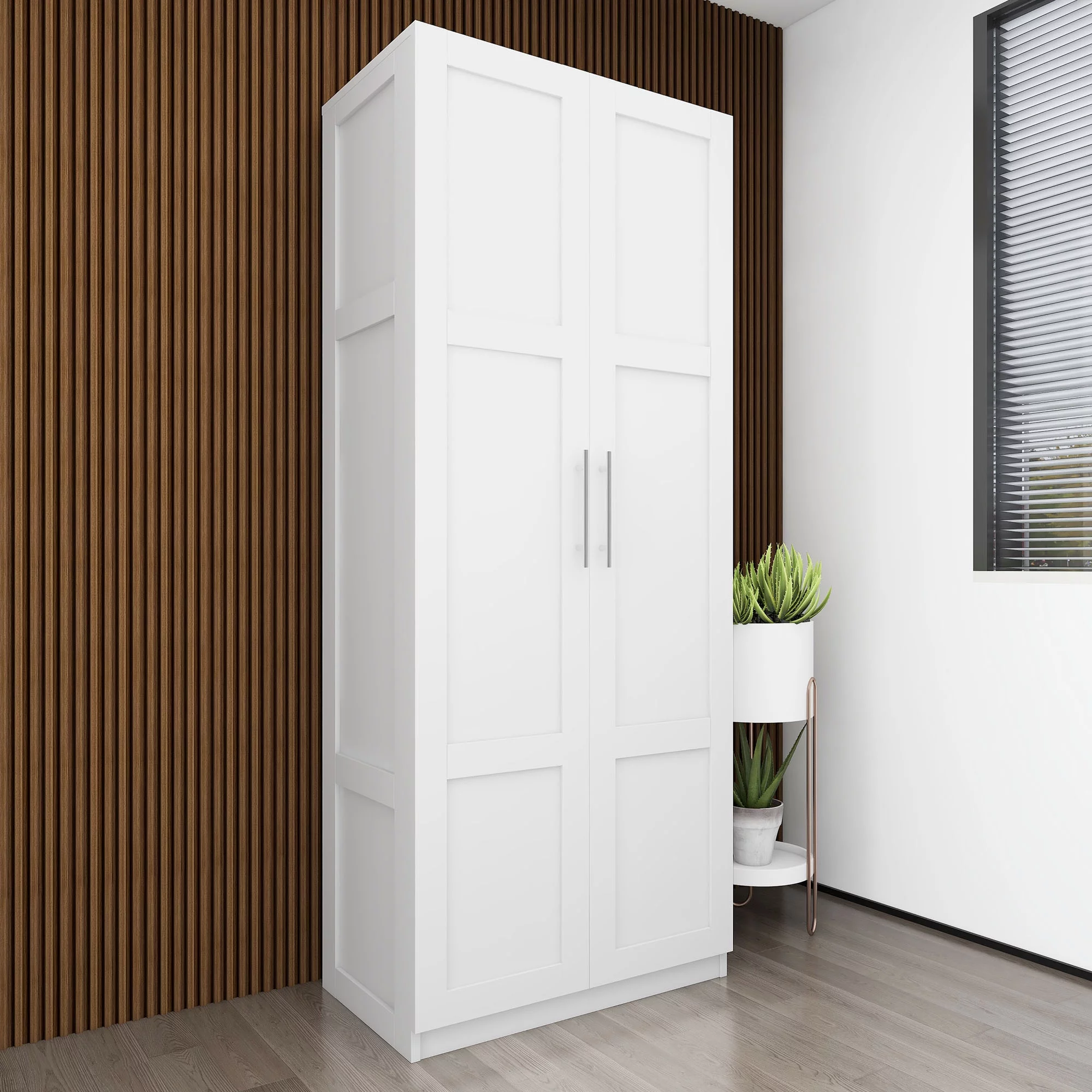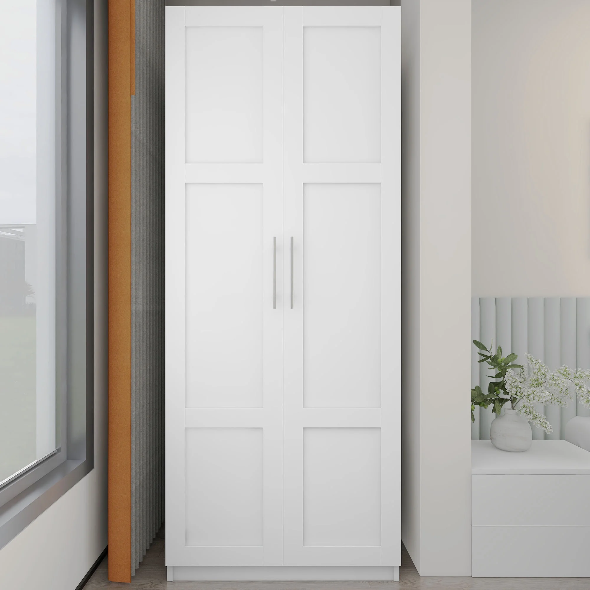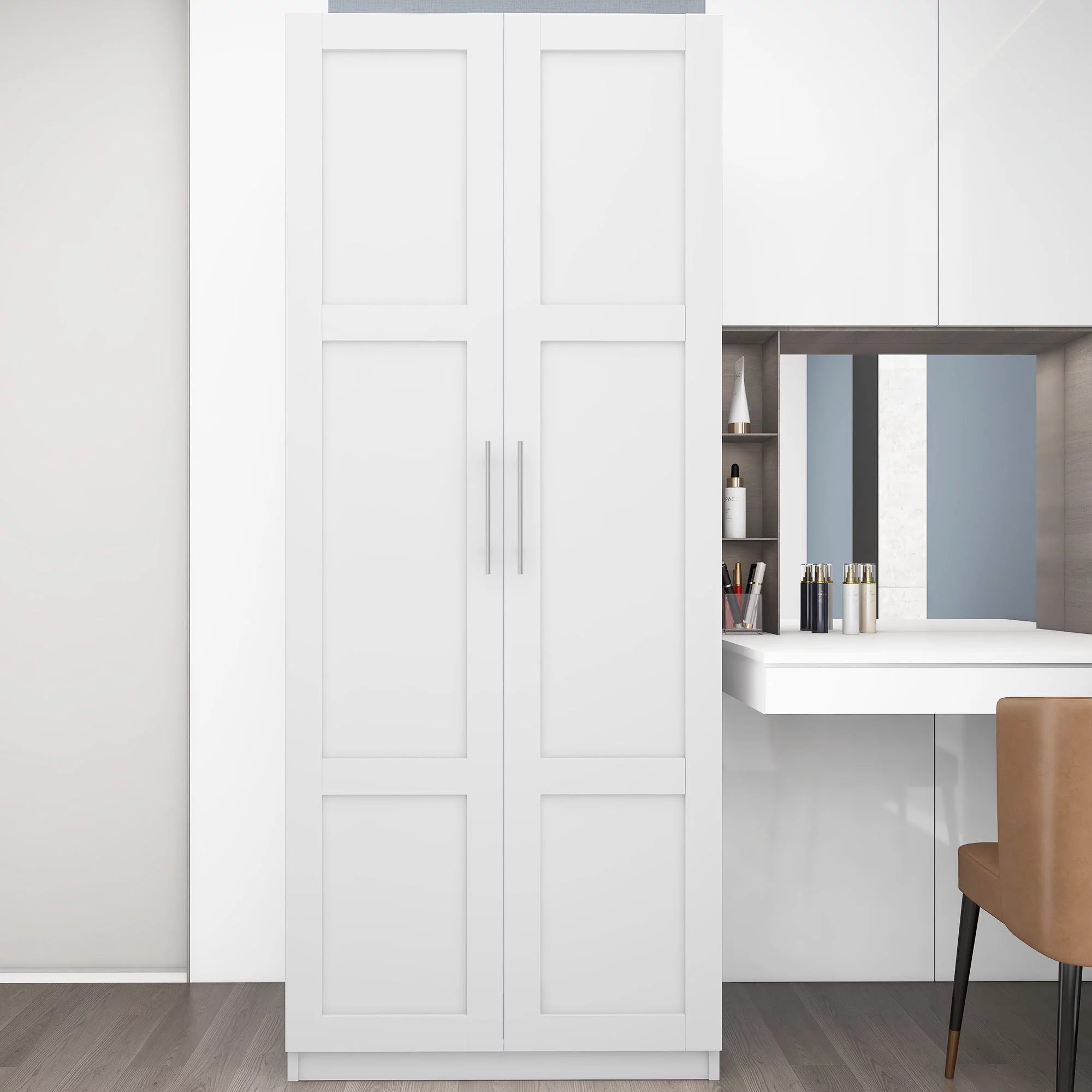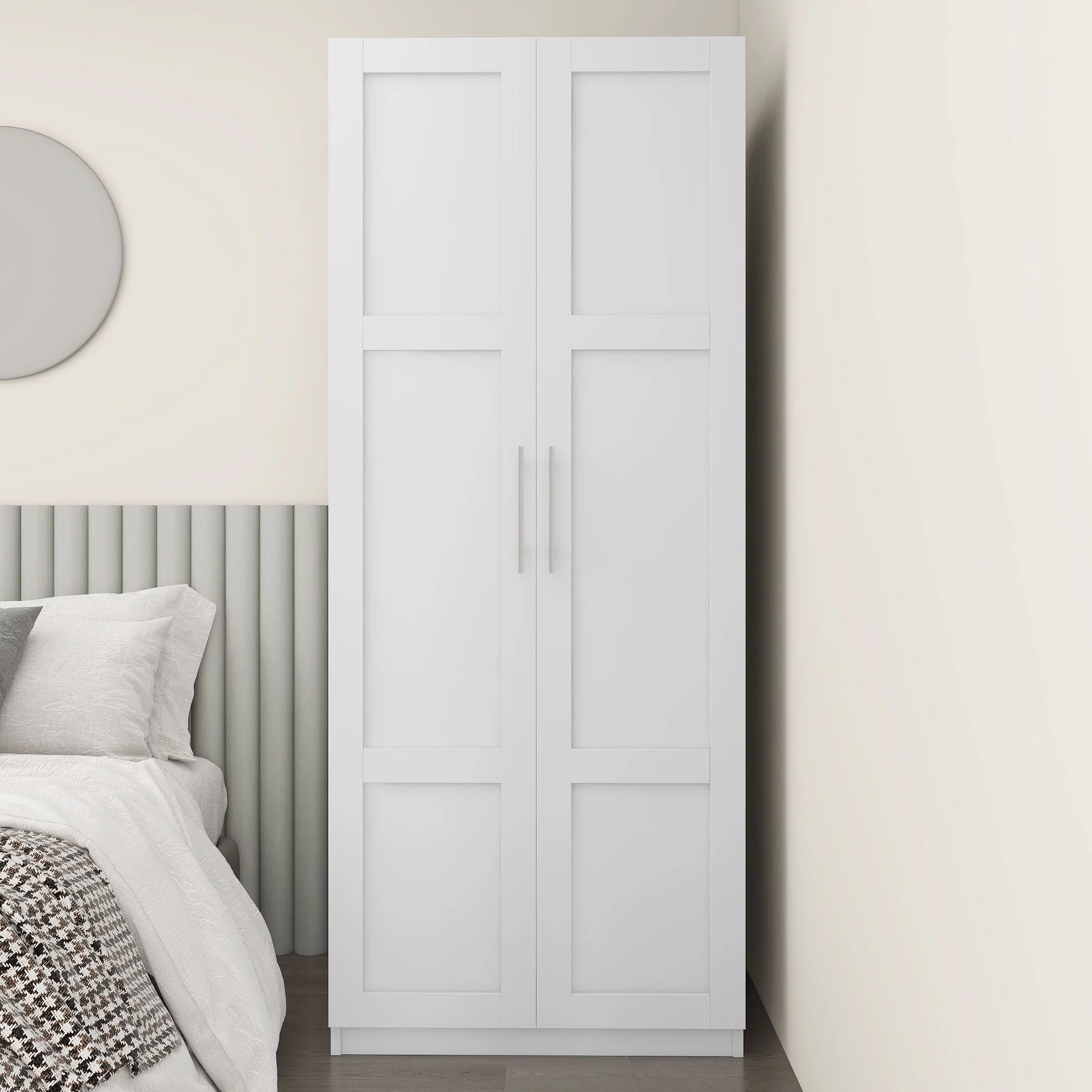 HIUU White Armoire Wardrobe 31 inches,Modern Tall Storage Cabinet for Living Room,Wood Pantry Storage Cabinet with Doors