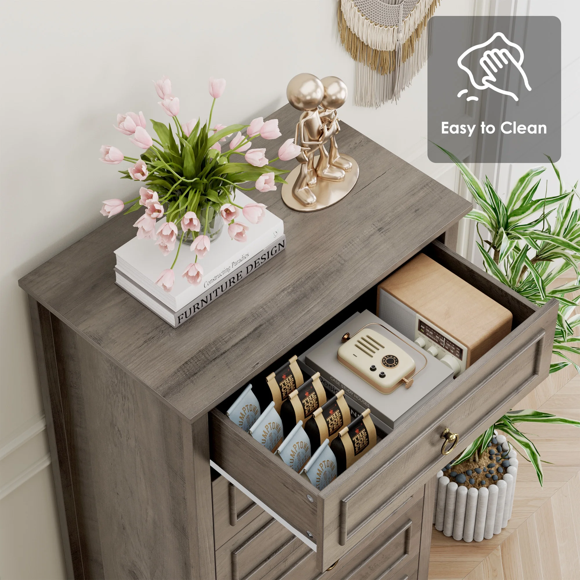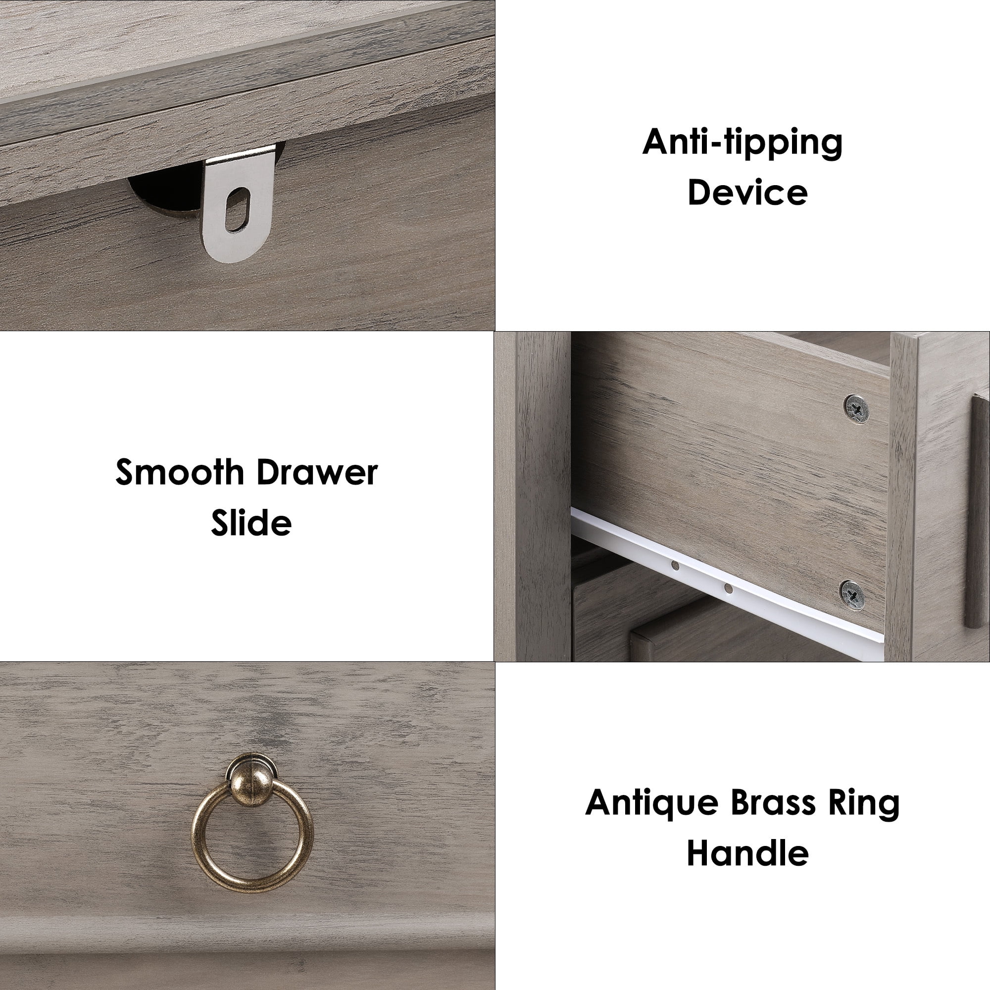 Homfa 6 Drawer Tall Dresser, 52"H Chest of Drawers, Wooden Storage Cabinet for Bedroom, Wash Gray