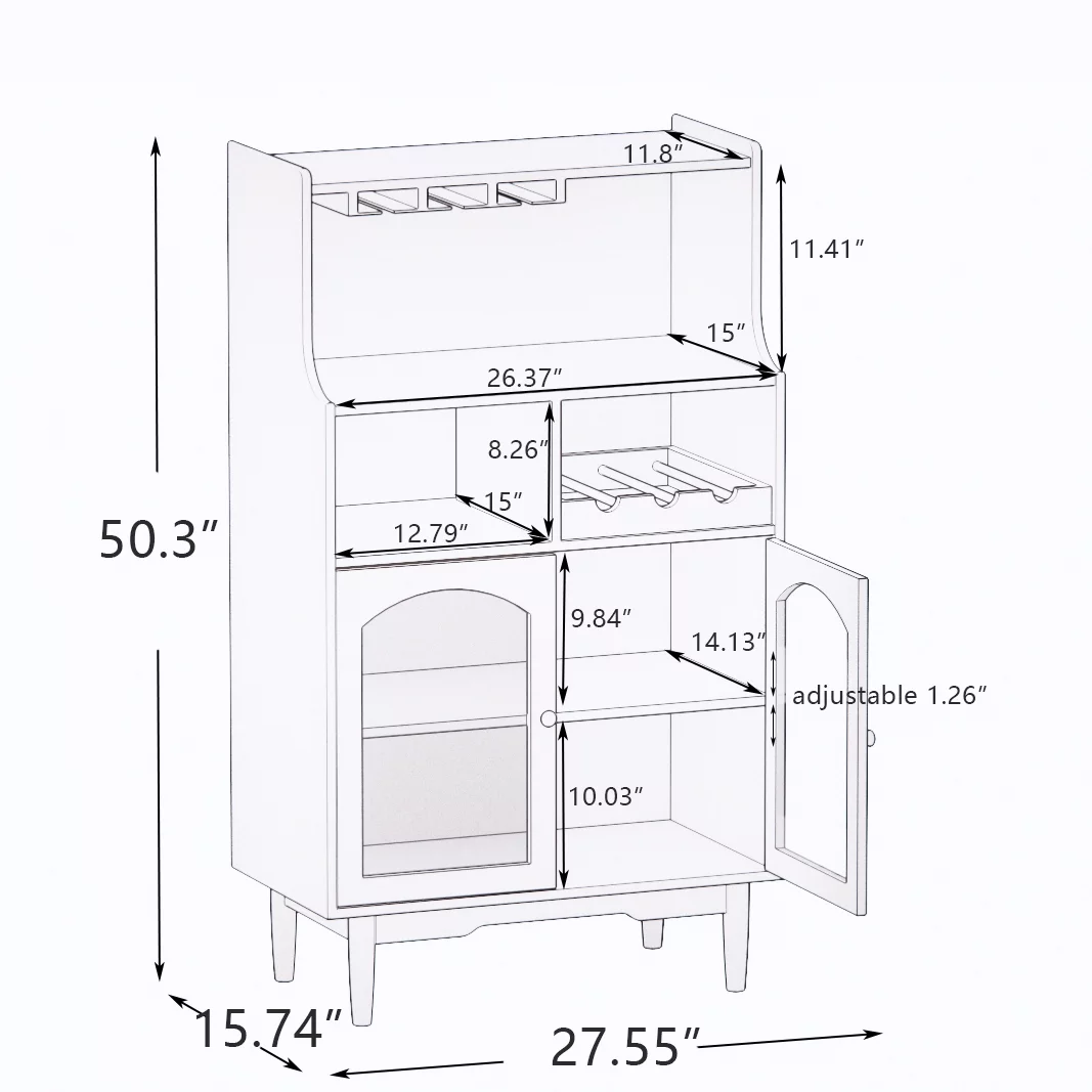 Dcenta Living Room Grey color cabinet with removable rack and glass rack, one cabinet with glass doors