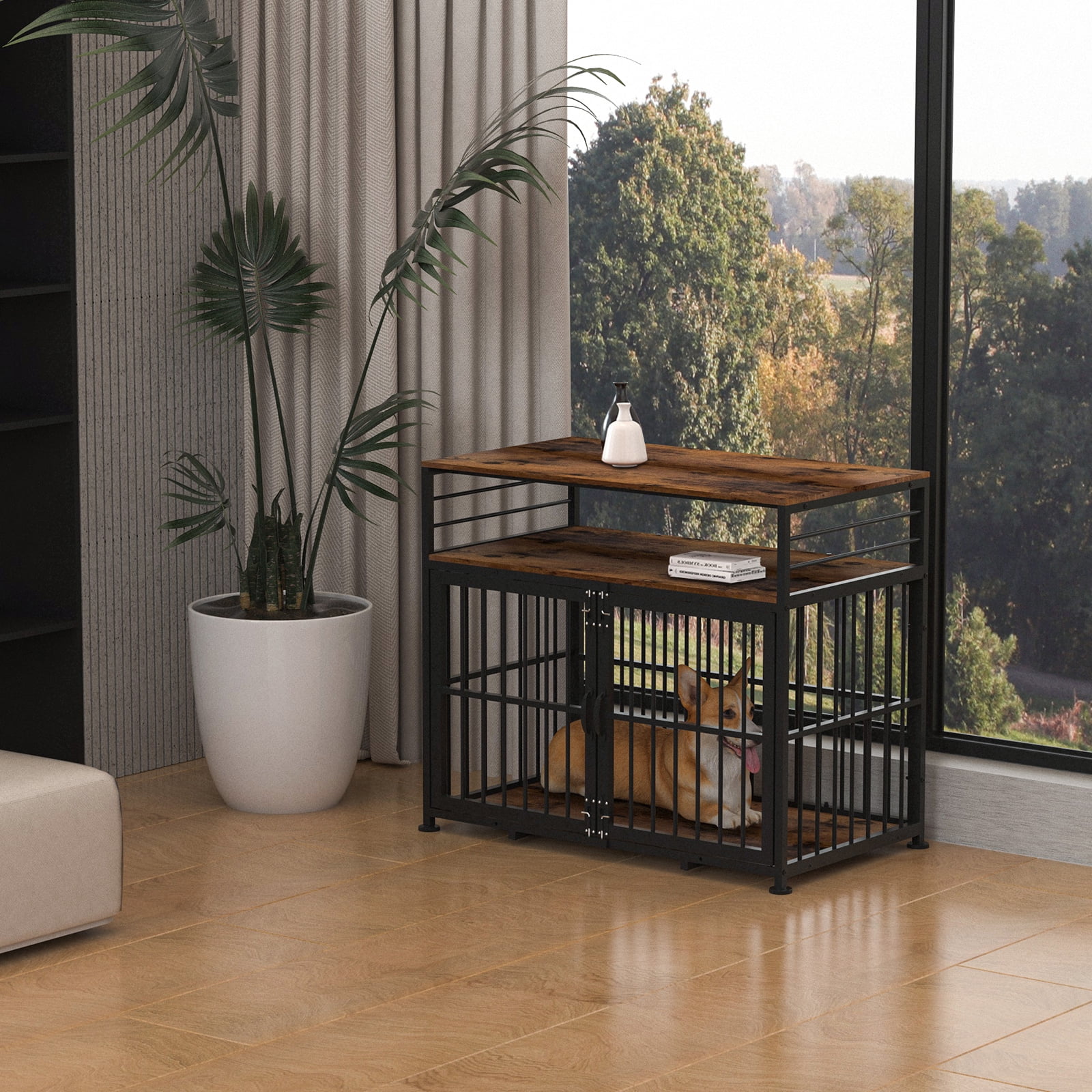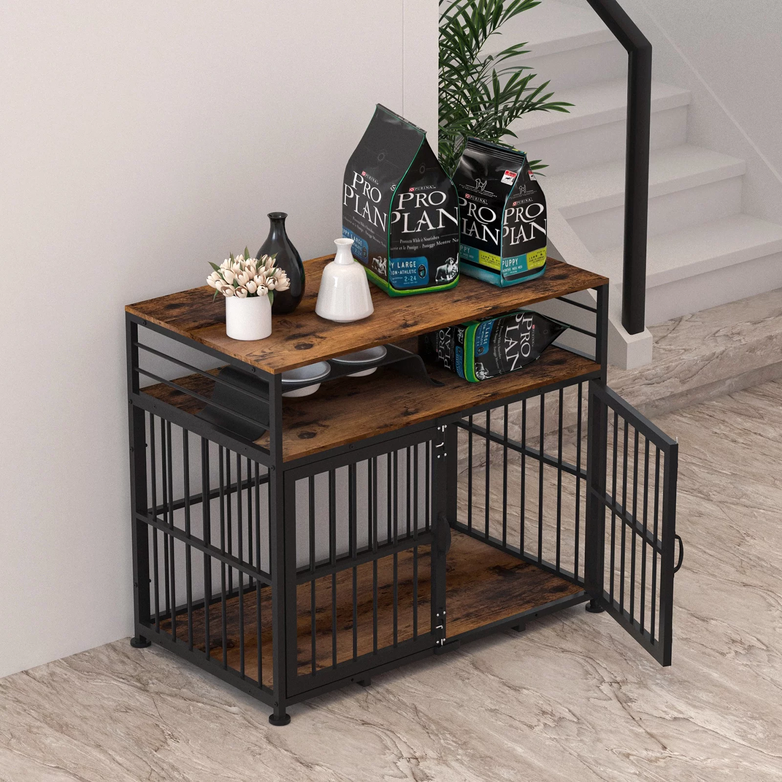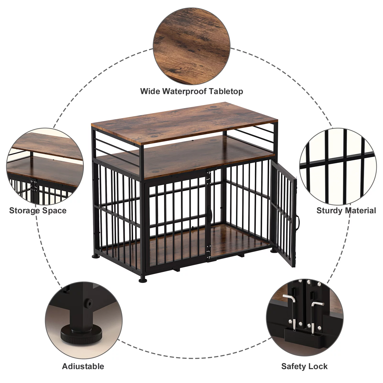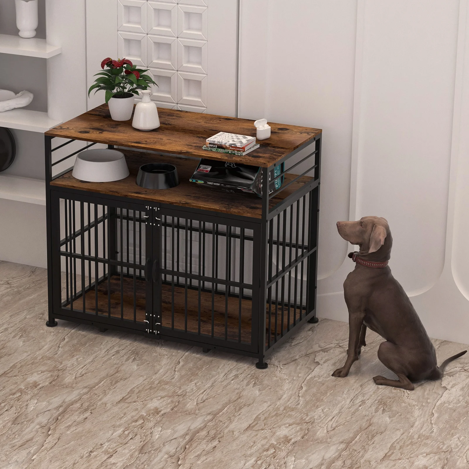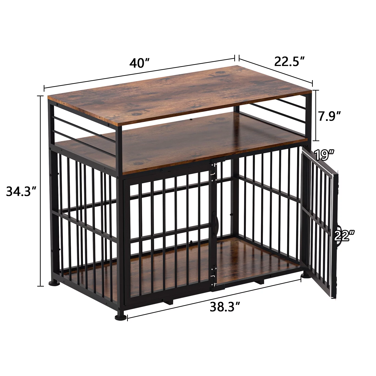 NBTiger Dog Crate Furniture with Storage Shelf, Wooden Puppy Kennel for Small Medium Large Dogs, 40" Decorative Pet Cage House End Table Indoor, Brown