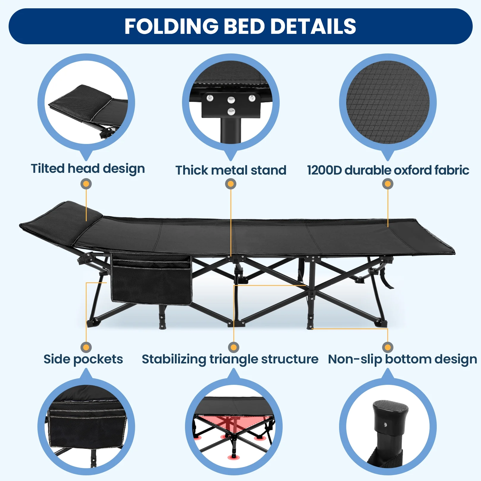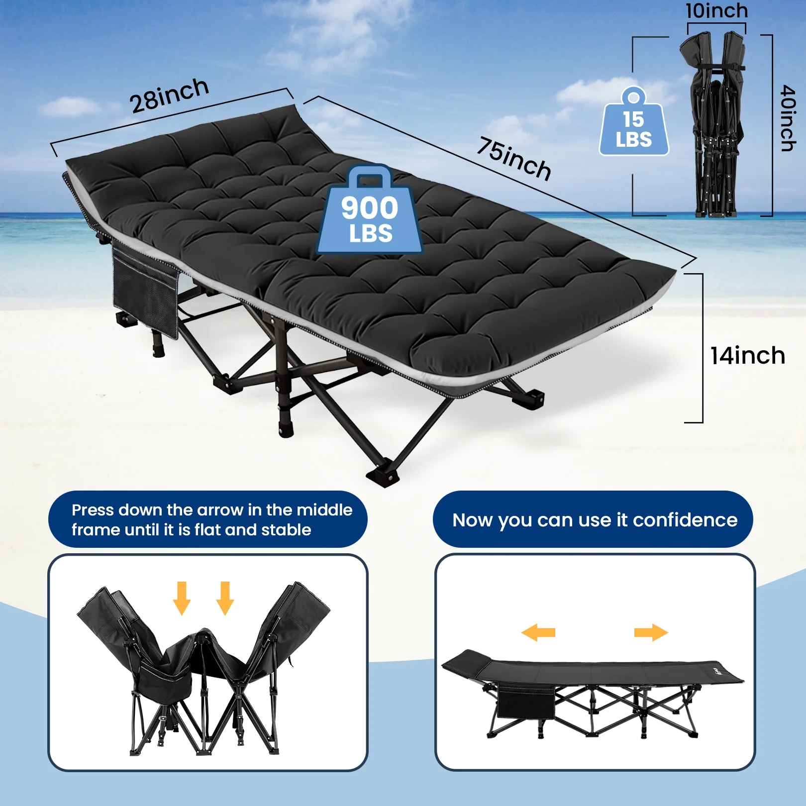 Adnoom Portable Folding Bed for Adults, 900LBS Folding Bed Cot with Removable Thick Mattress, Carry Bag, Heavy Duty Sleeping Cots Camping Bed for Outdoor, Office & Home