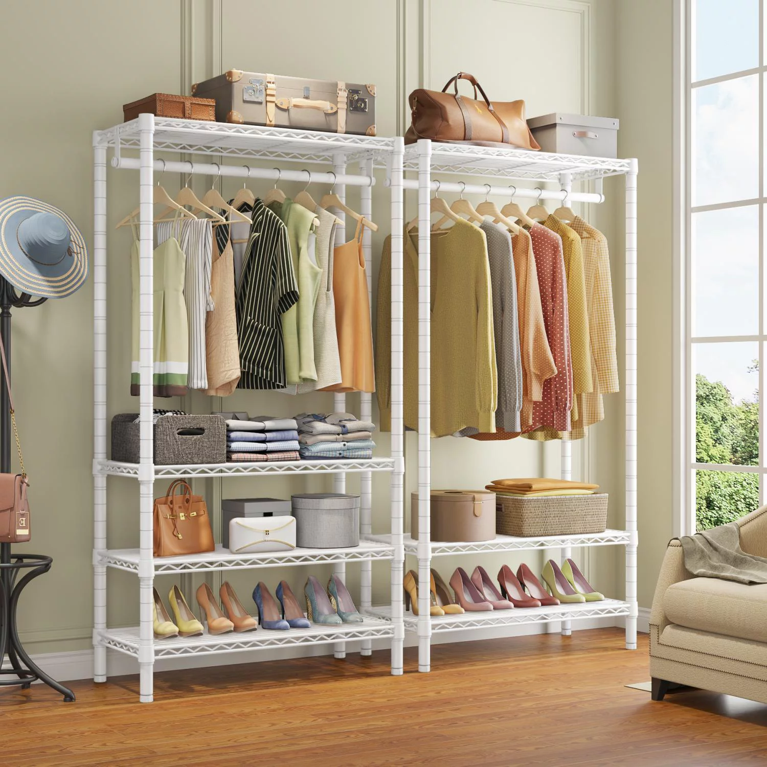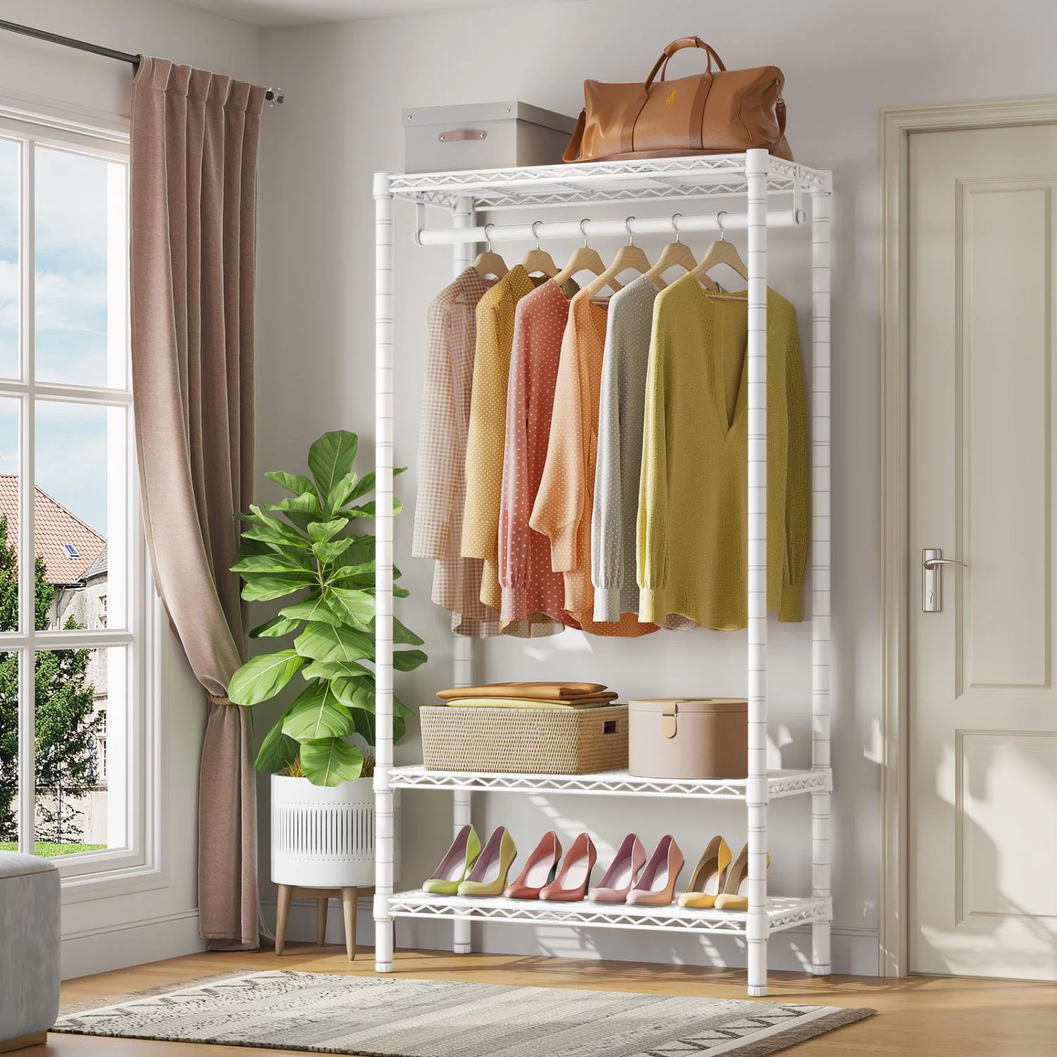 VIPEK V1S Heavy Duty Garment Rack 3 Tier Clothes Rack for Hanging Clothes Portable Closet with Adjustable Wire Shelving Clothing Rack for Small Spaces Freestanding Wardrobe, Max Load 400LBS, White