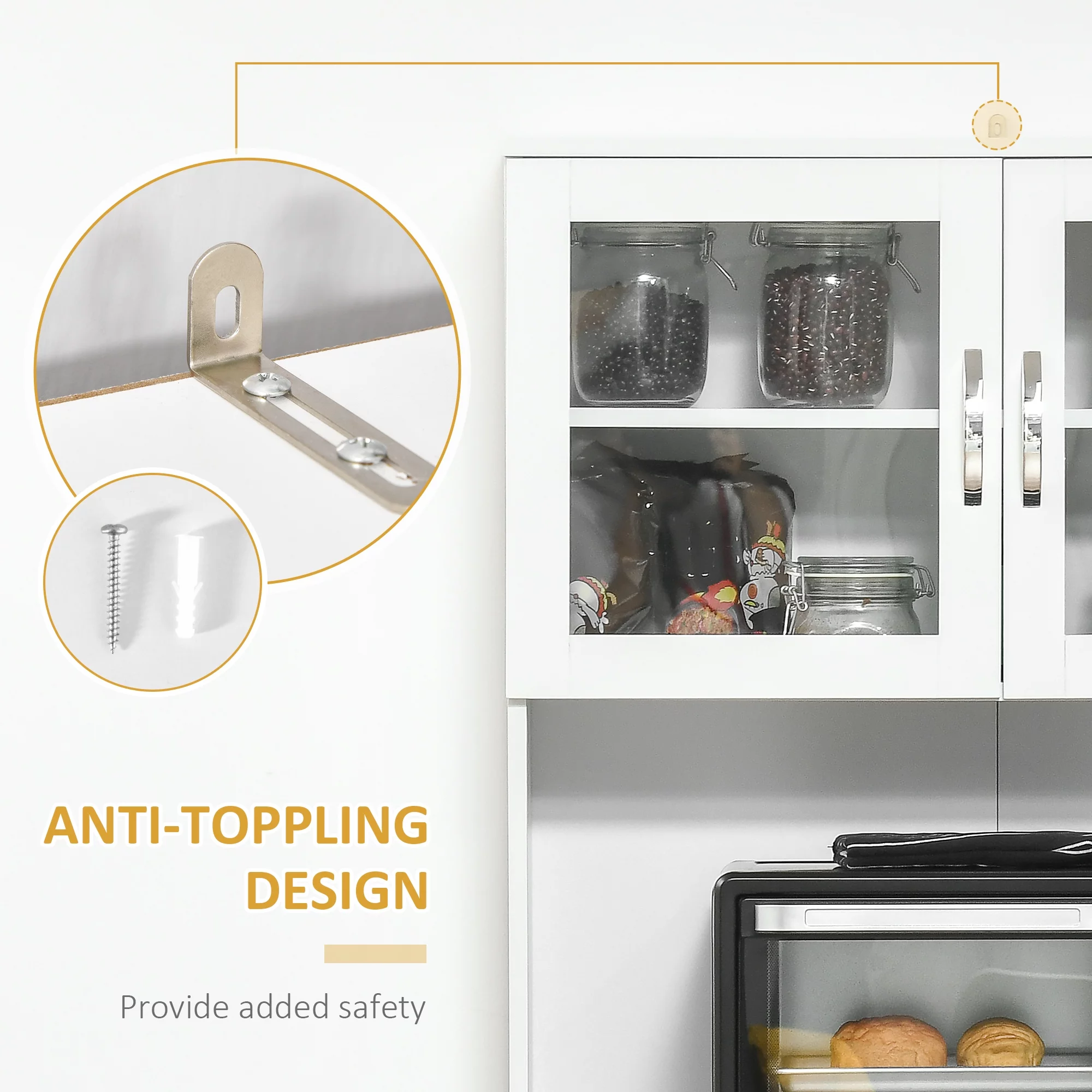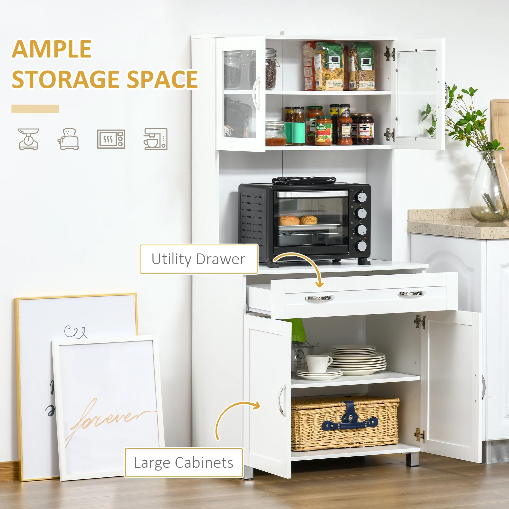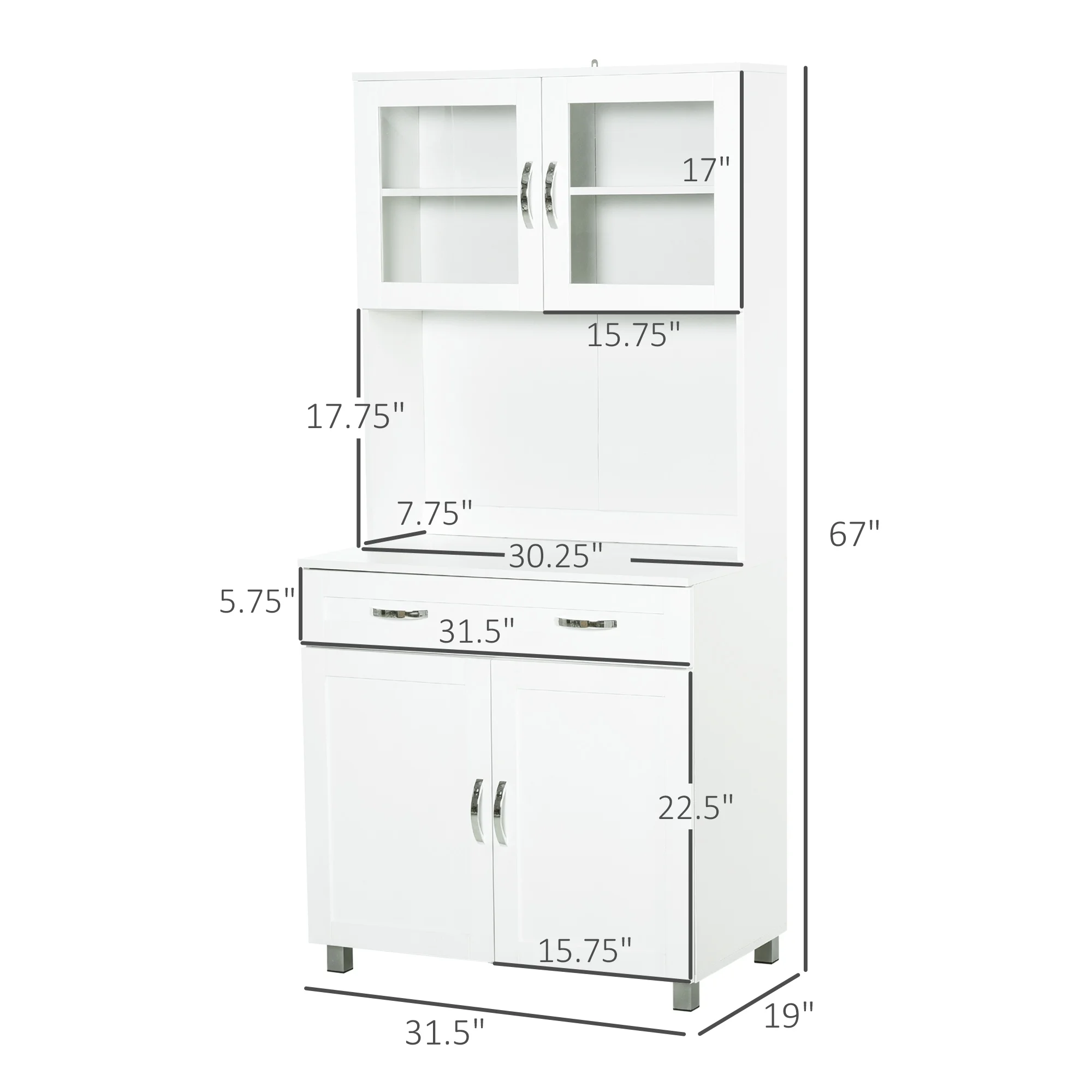 HOMCOM 67" Buffet with Hutch, Modern Kitchen Pantry, Freestanding Storage Cabinet with Framed Glass Doors, Shelves and Drawers, White