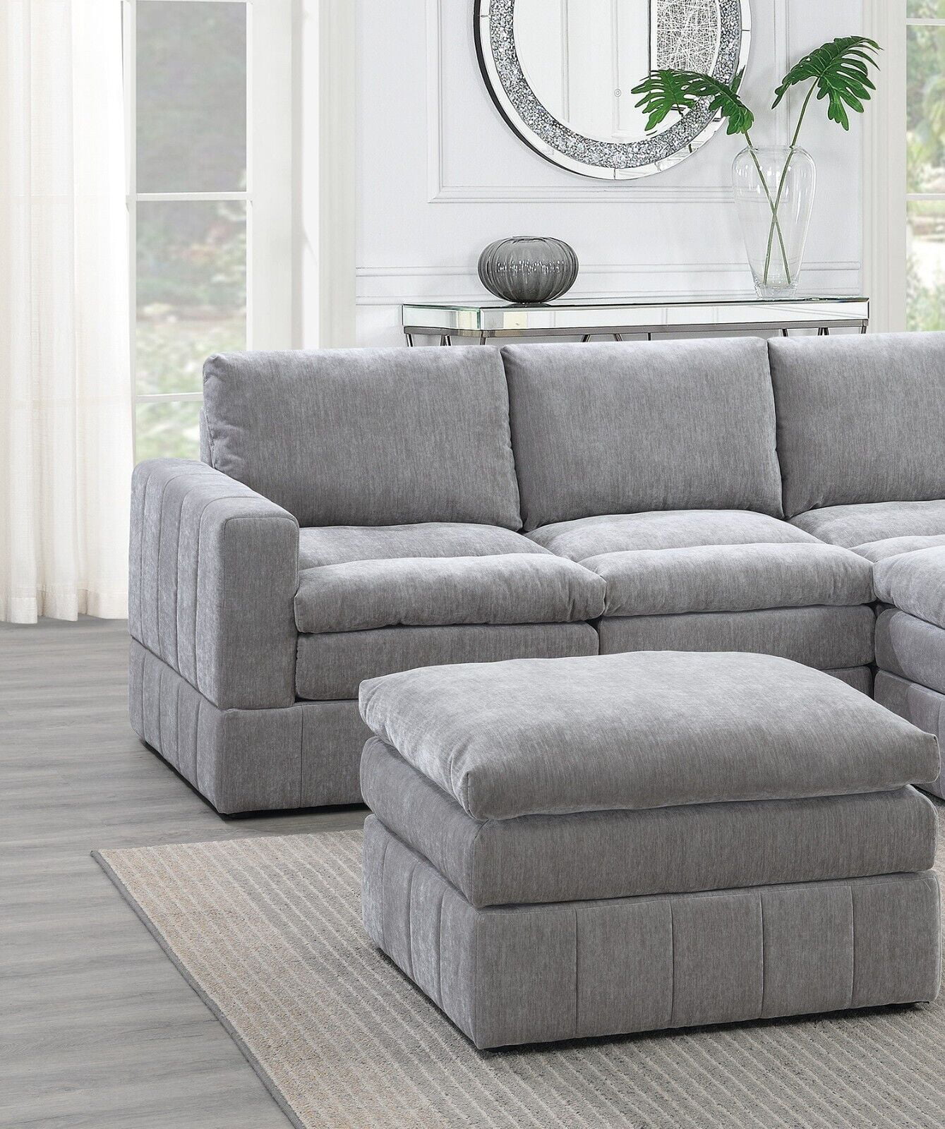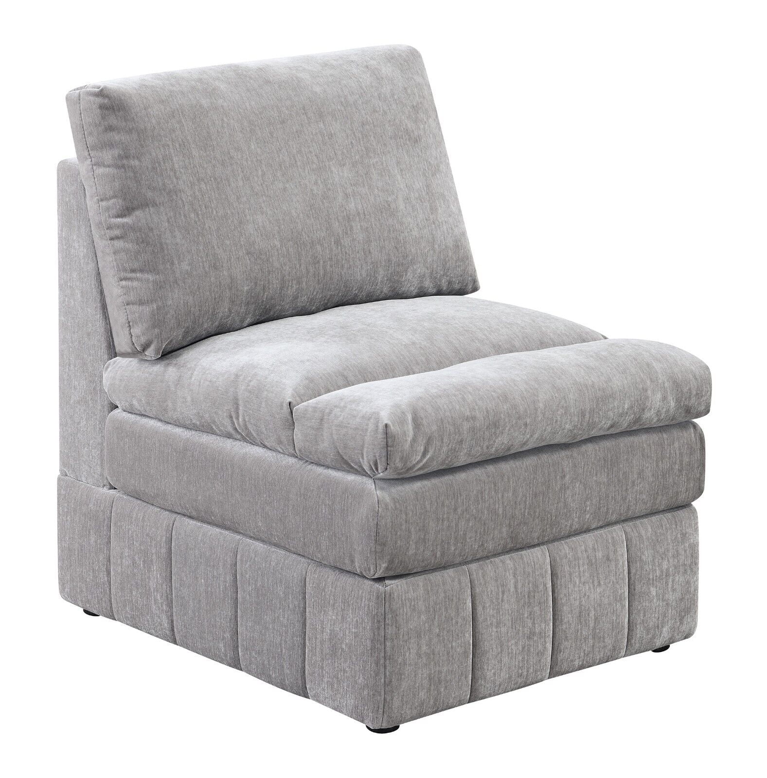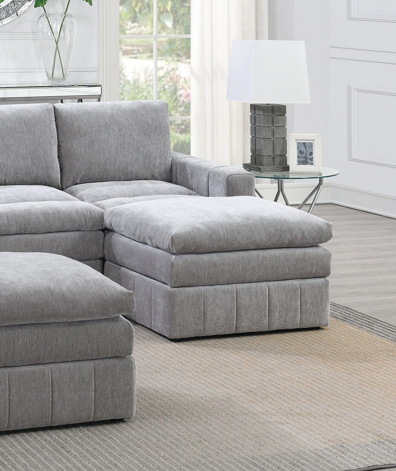 Granite Morgan Fabric Plush Cushion Couch 5pc Modular Sectional Set 2x Corner Wedge 1x Armless Chair 2x Ottomans Living Room