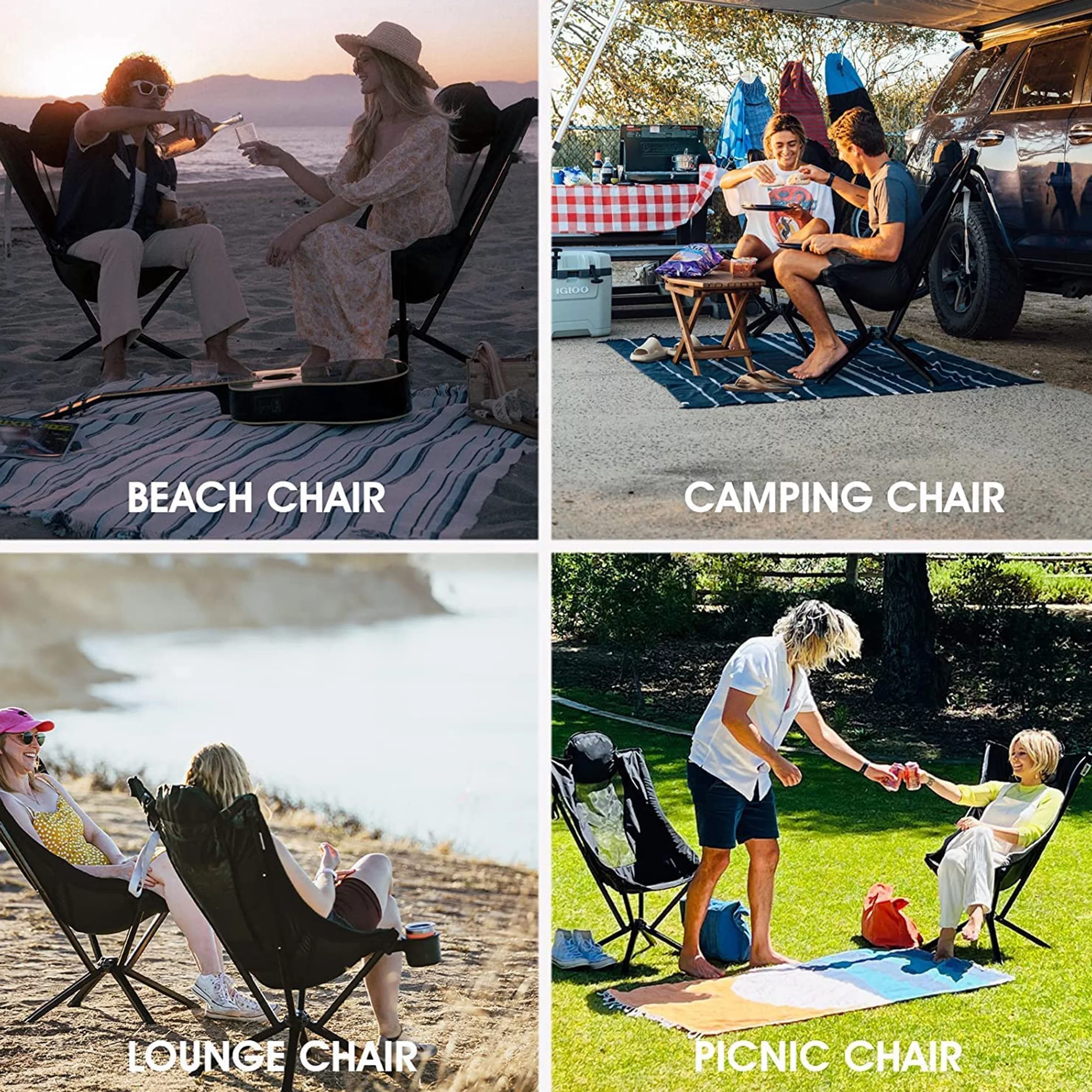 Amkoskr Camping Chair Beach Chairs Heavy Duty Folding Camping Chair Large-Size for Adult Black