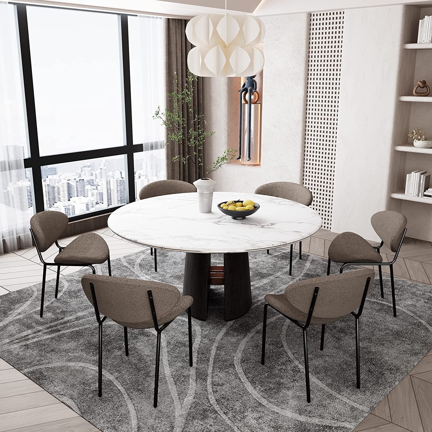 Set of 2 Modern Teddy Fabric Accent Chair Coffee - Set of 2