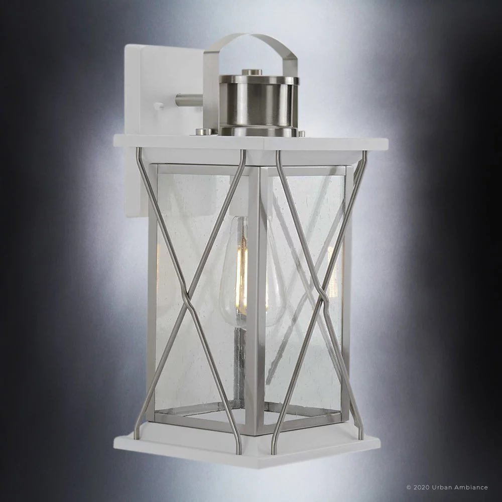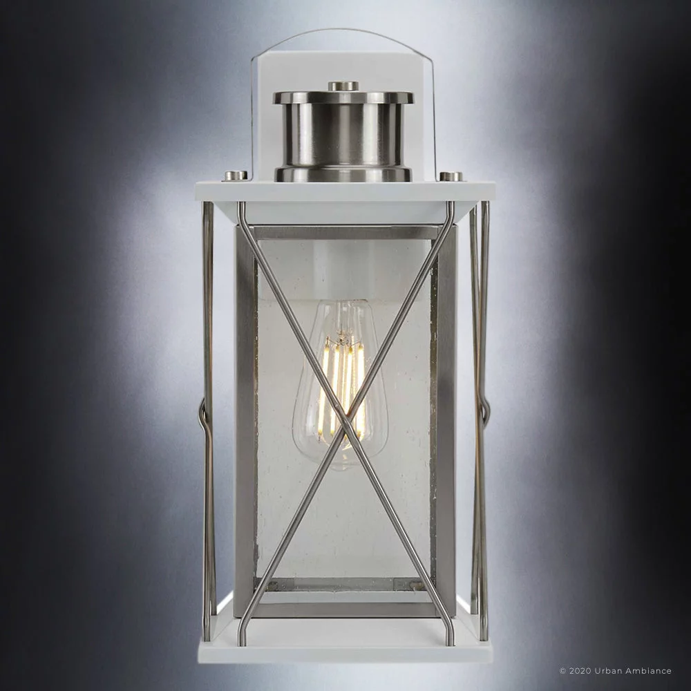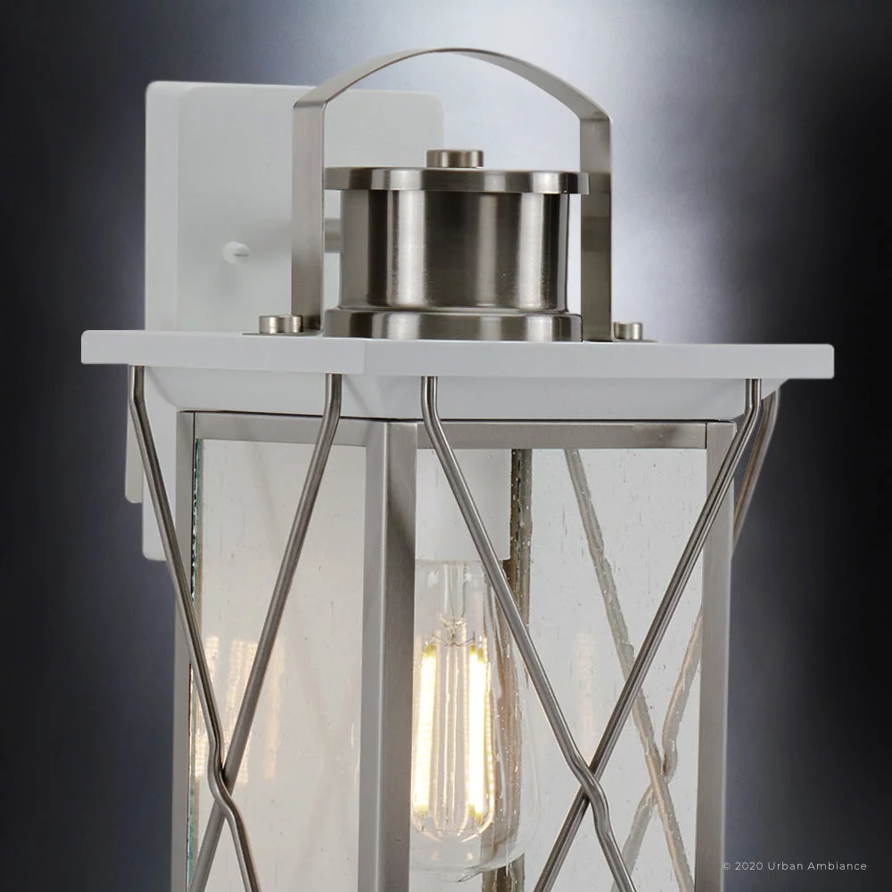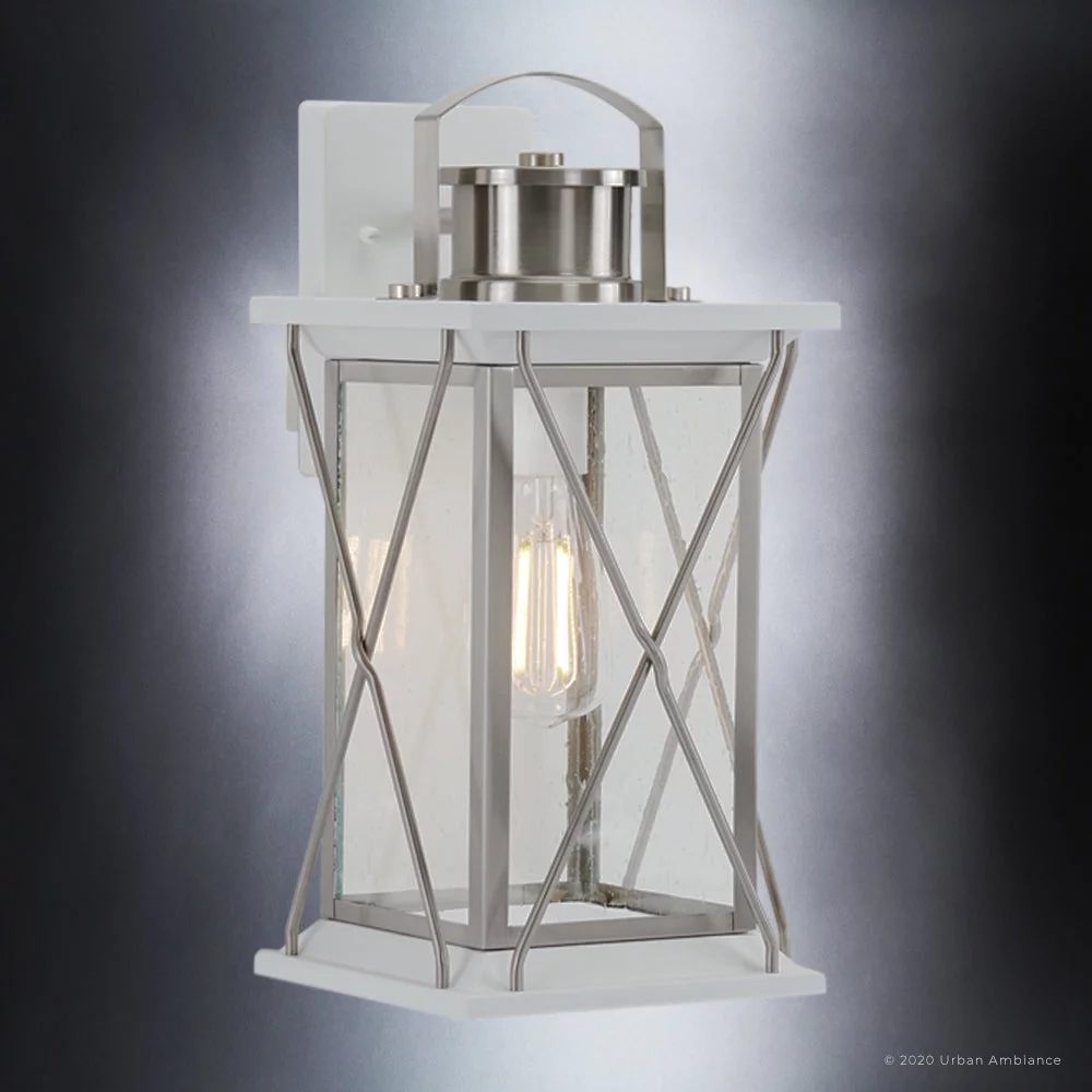 Luxury Colonial Outdoor Wall Sconce, 16''H x 7.125''W, with Tudor Style Elements, French Country Design, Stainless Steel Finish and Shatterproof Glass, UHP1223