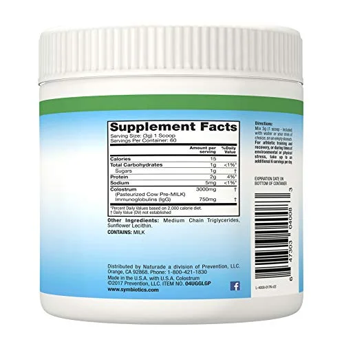 Symbiotics Colostrum Plus Powder Supplement for Immunity Support, 6.3 Ounces (180 g)