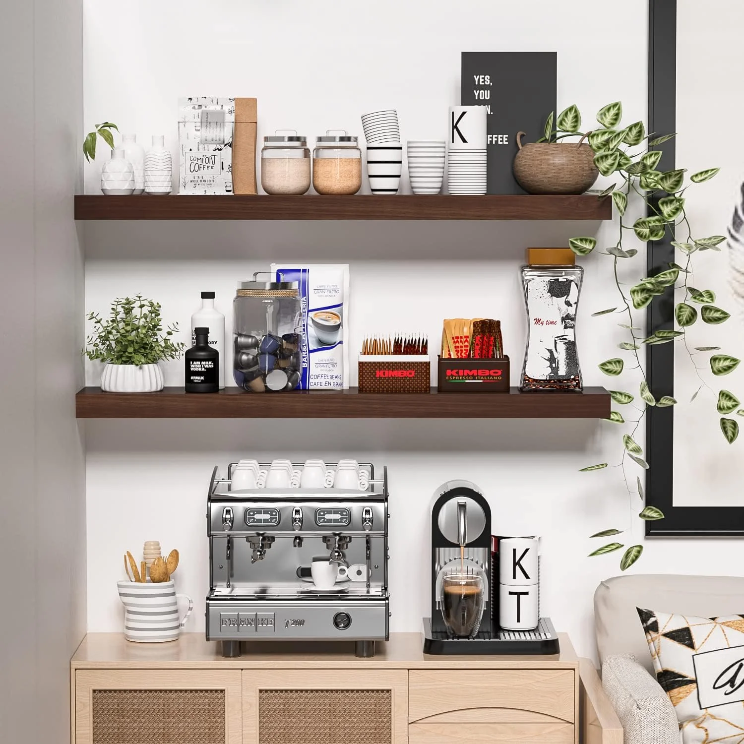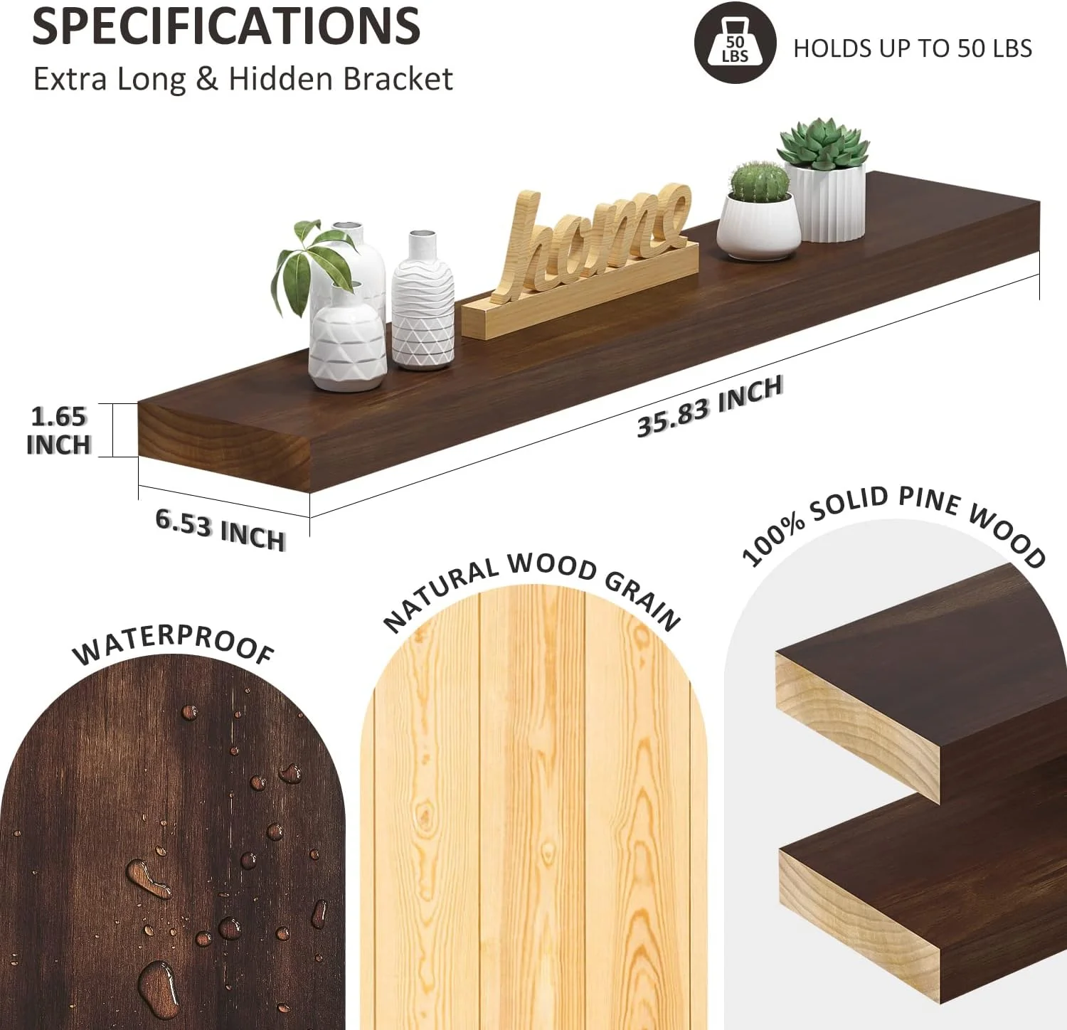 YGDU Floating Shelves Wood Shelves for Wall - 36 Inch Long Floating Shelf with Invisible Brackets, Natural Solid Wooden Floating Wall Shelves for Living Room Bedroom Bathroom Kitchen, Set of 2
