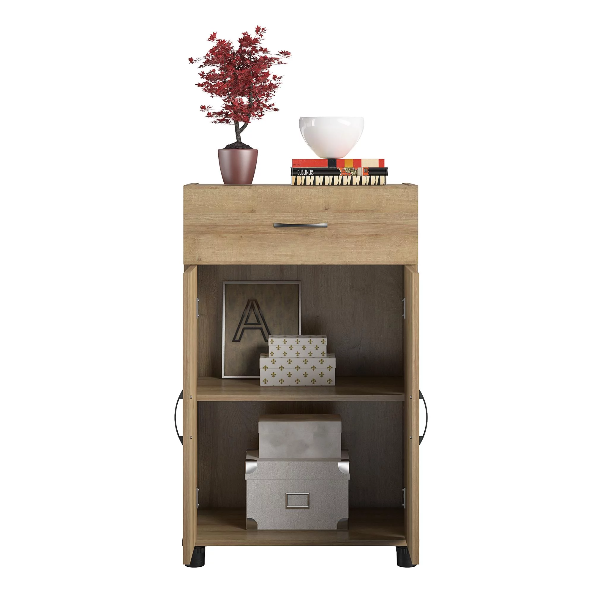 RealRooms Basin 24" 1 Drawer/2 Door Base Storage Cabinet with Adjustable Shelf, Natural