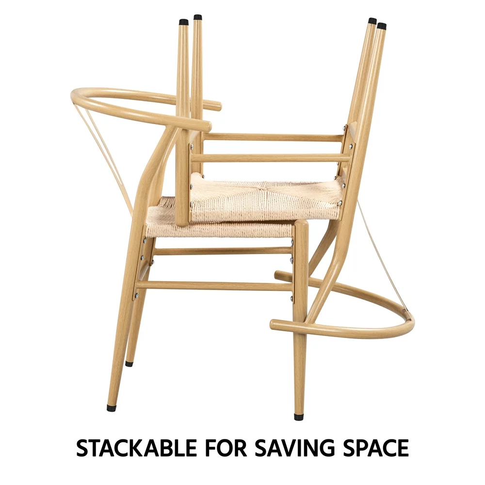 SMILE MART 4pcs Weave Modern Dining Chair with Metal Frame, Wood Color