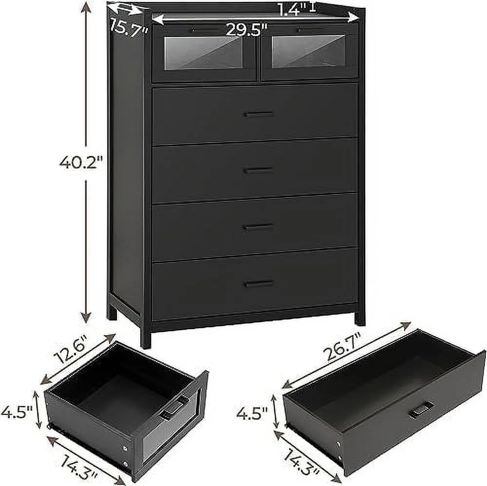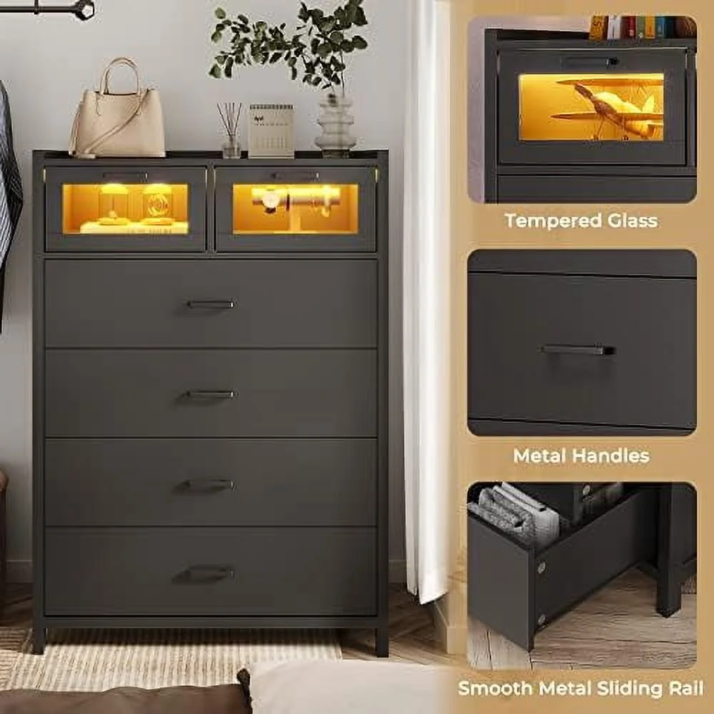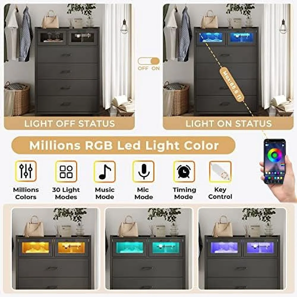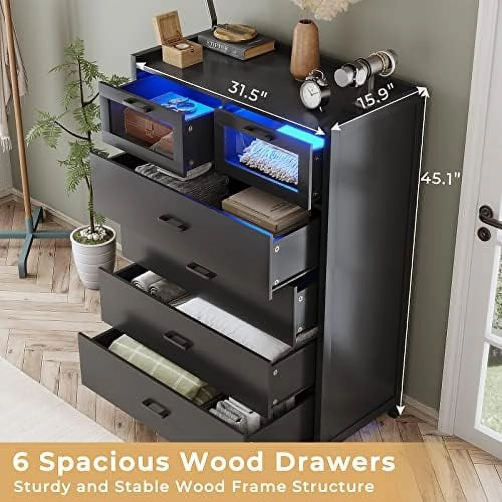 HJZBNONE Dresser for Bedroom 6 Drawer Dressers with LED Lights Dressers & Chests of Drawers Bedroom Closet Wooden Tall Dresser for Bedroom Hallway Entryway
