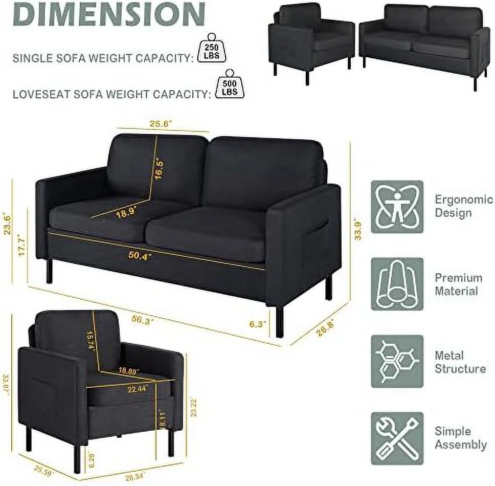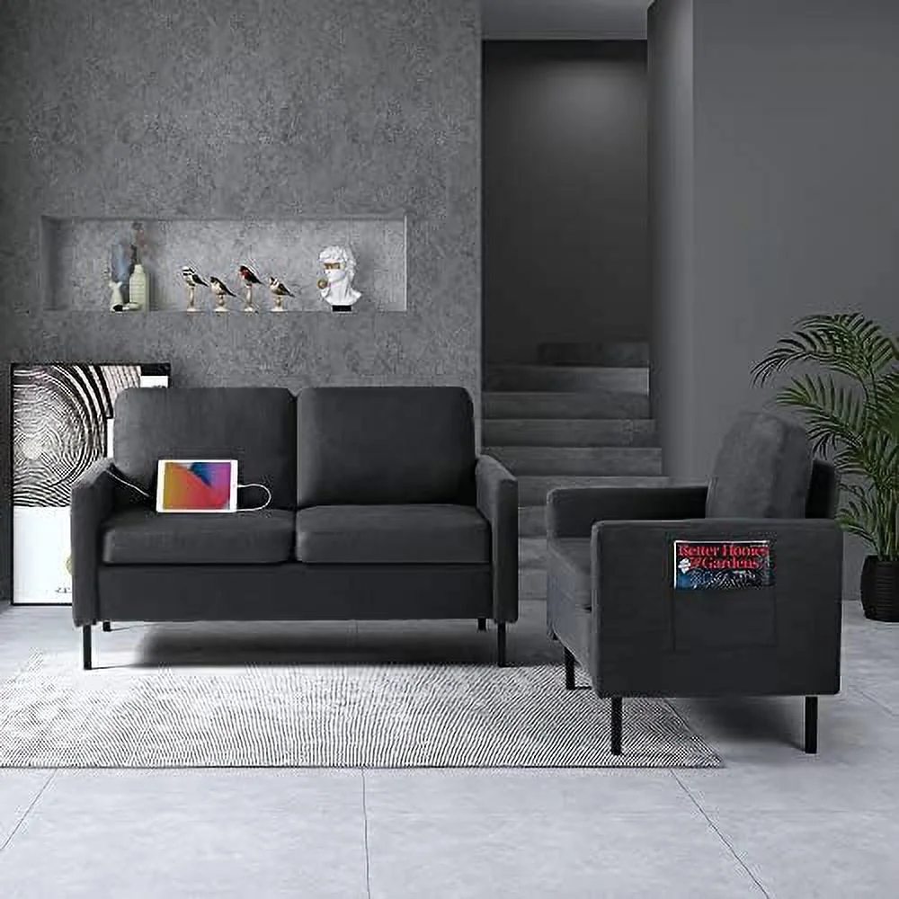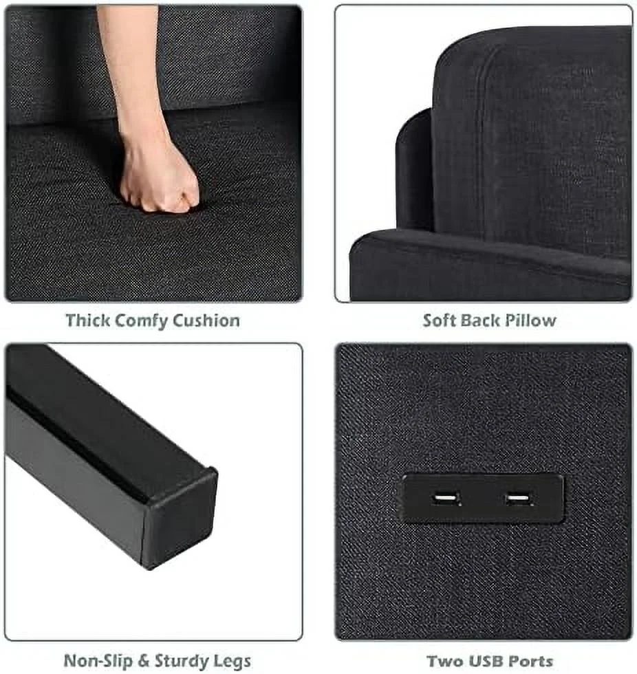 xrboomlife 72" W Sectional Sofa 3 Seat Couch Mid Century Modern Sofa with 2 USB for Living Room Apartment Bedroom Comfortable Small Couches for Small Spaces (Light Grey (3-Seater))