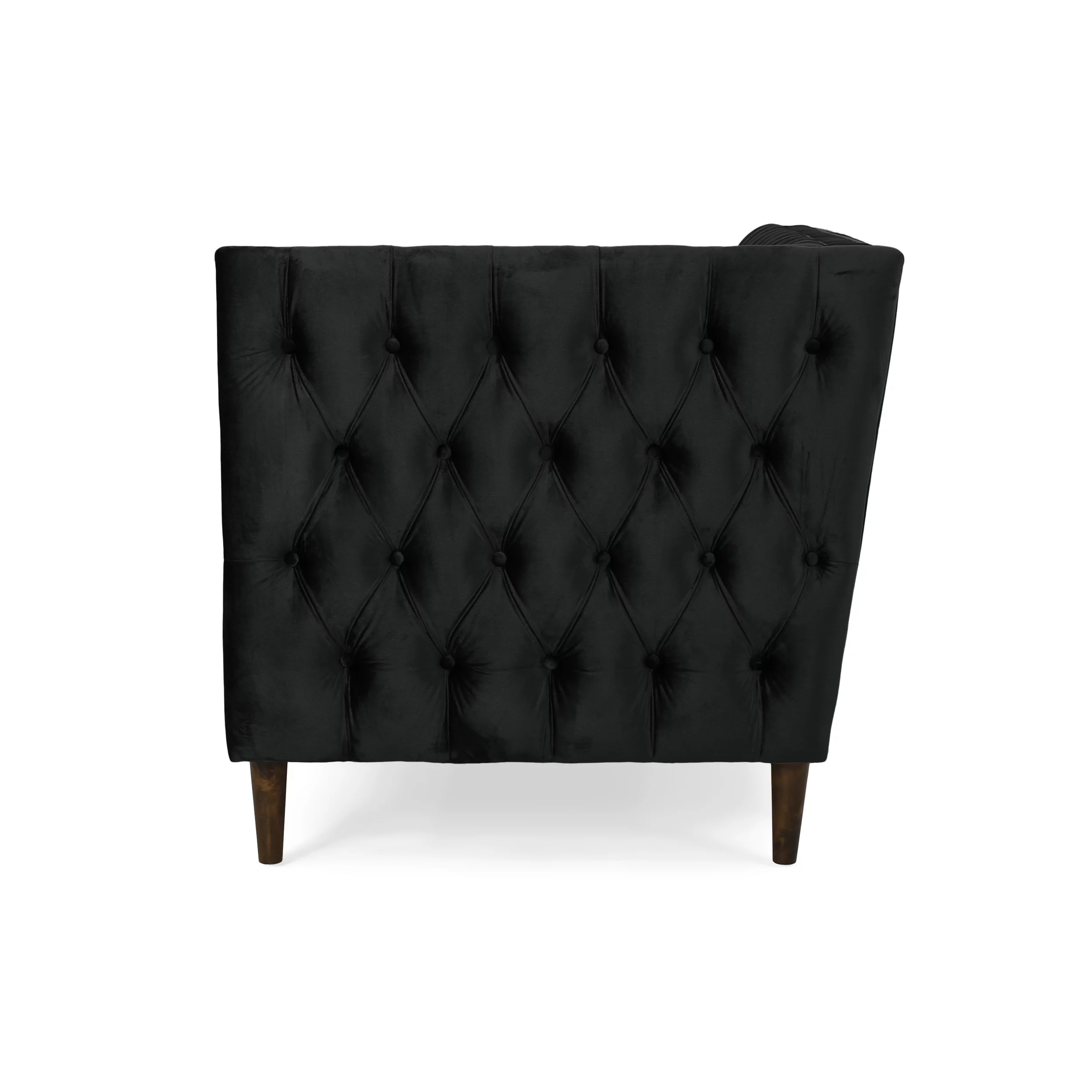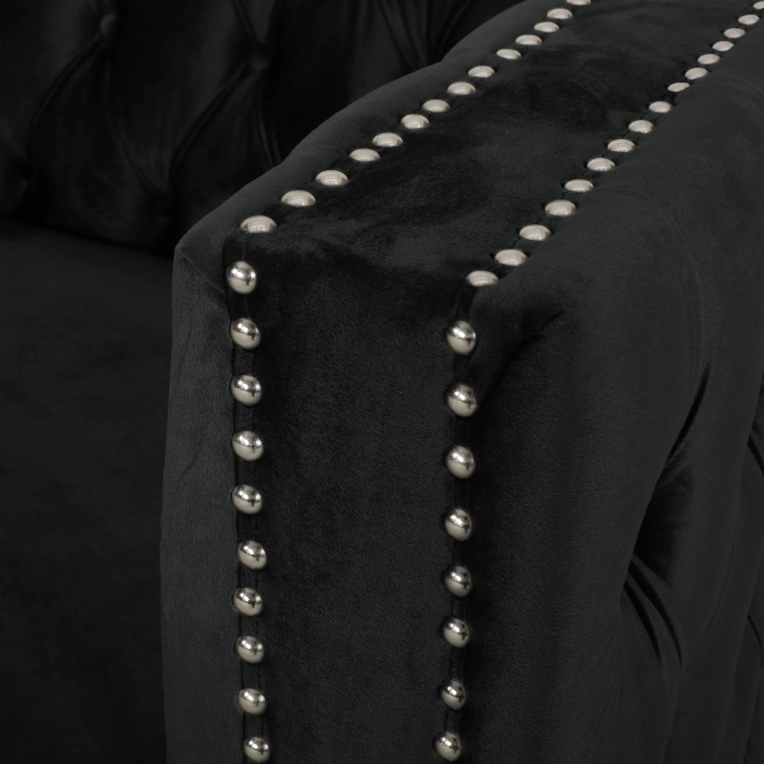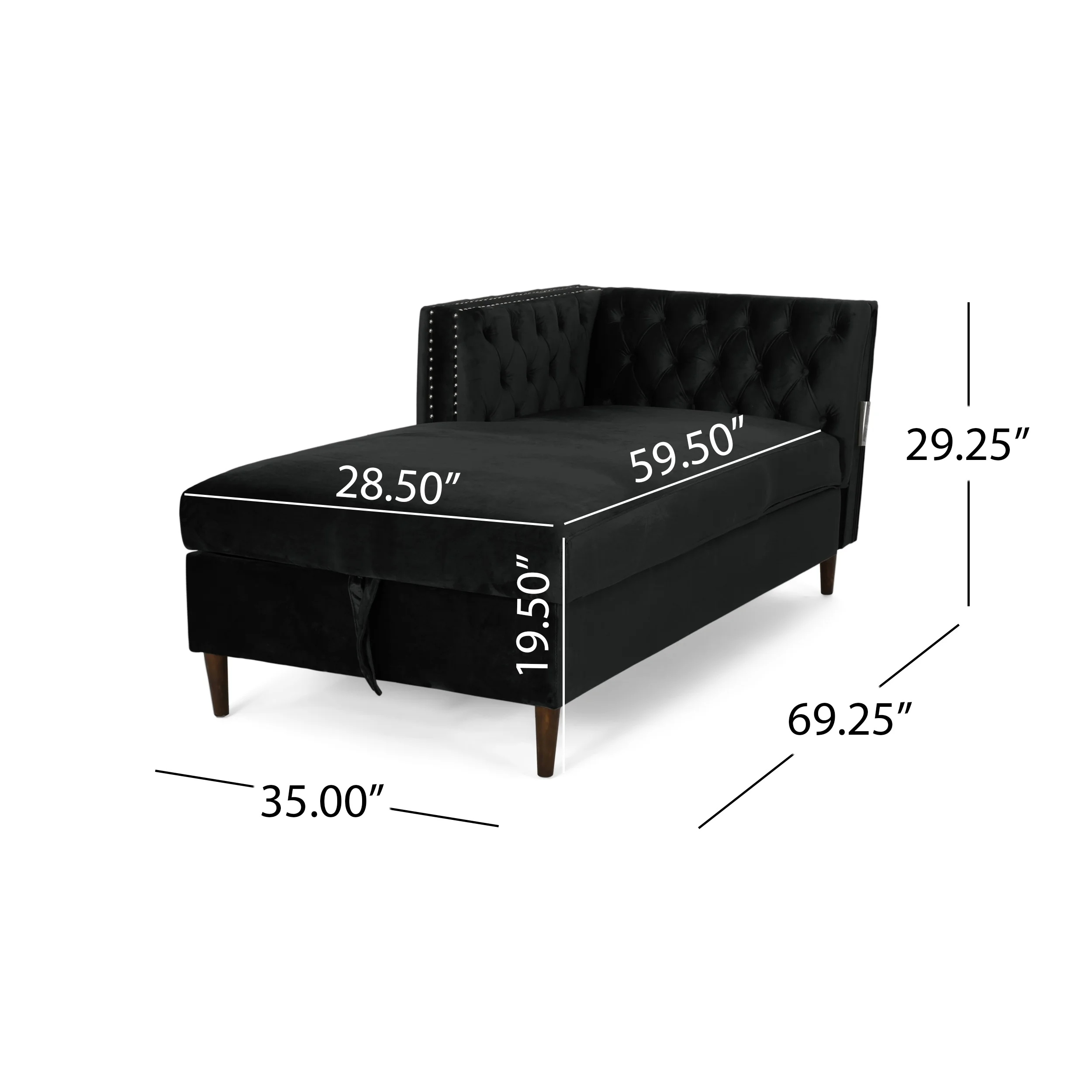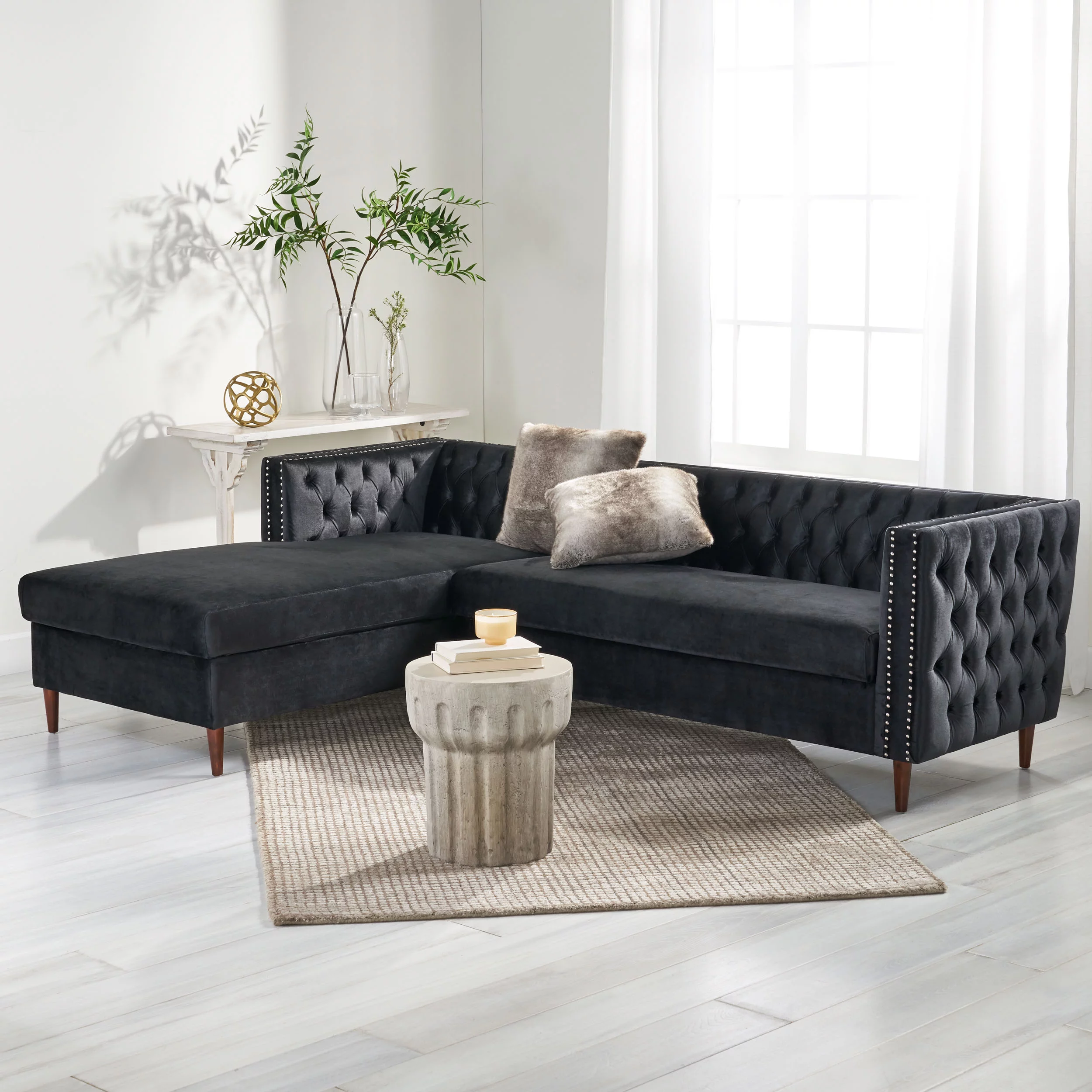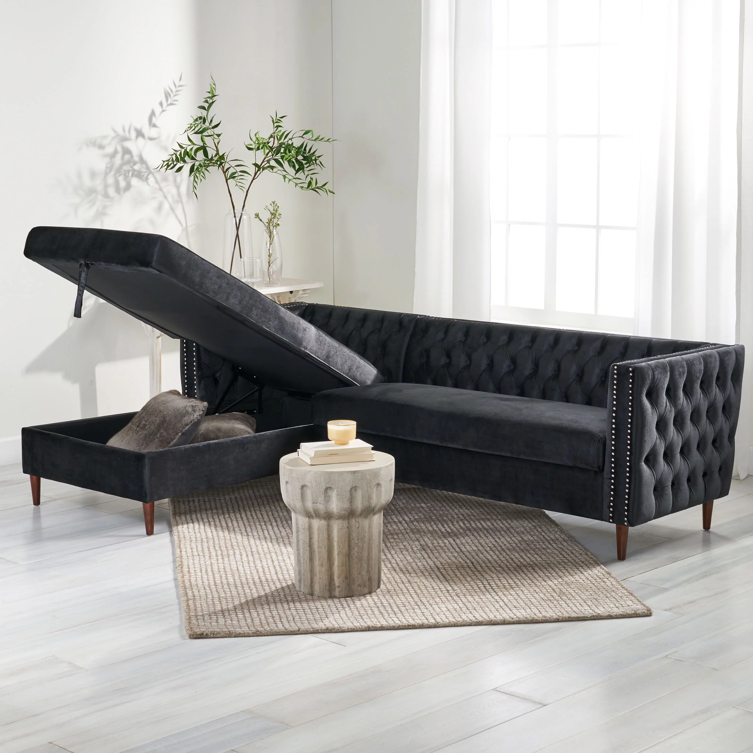 Jephthah Contemporary Tufted Velvet Sectional Sofa with Storage Chaise Lounge, Black