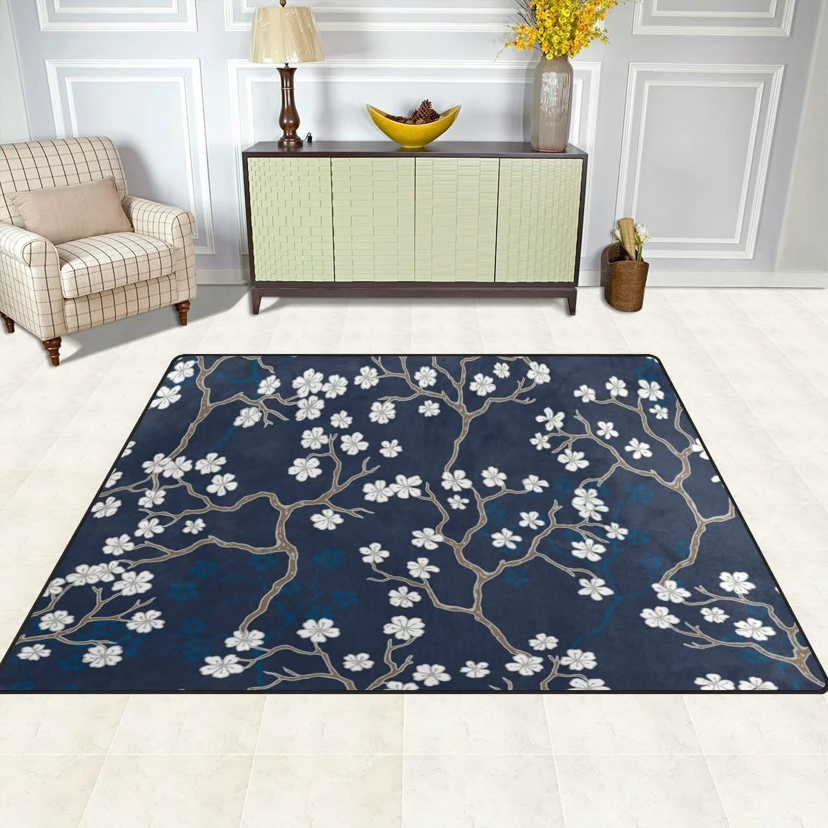 SKYSONIC 80 x 58 inches Lightweight Soft Area Rug Mat Indoor Floor Rugs Home Decoration for Kids Room Living Room Small Flower Trees
