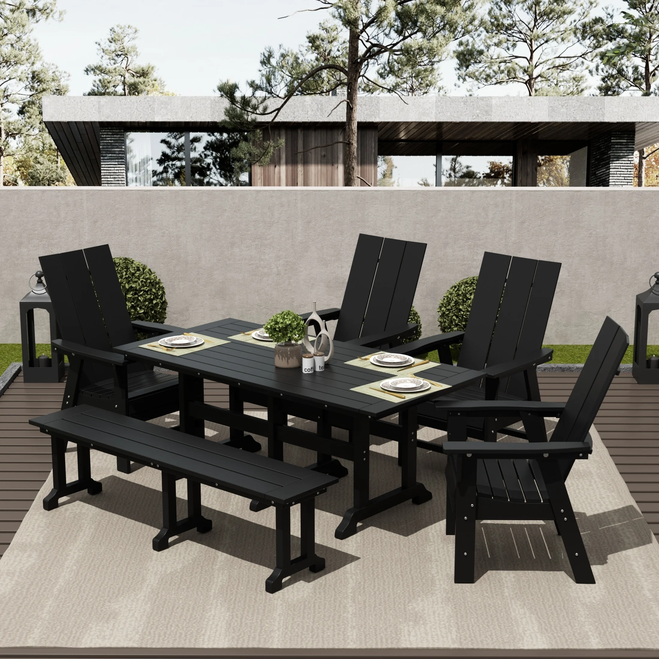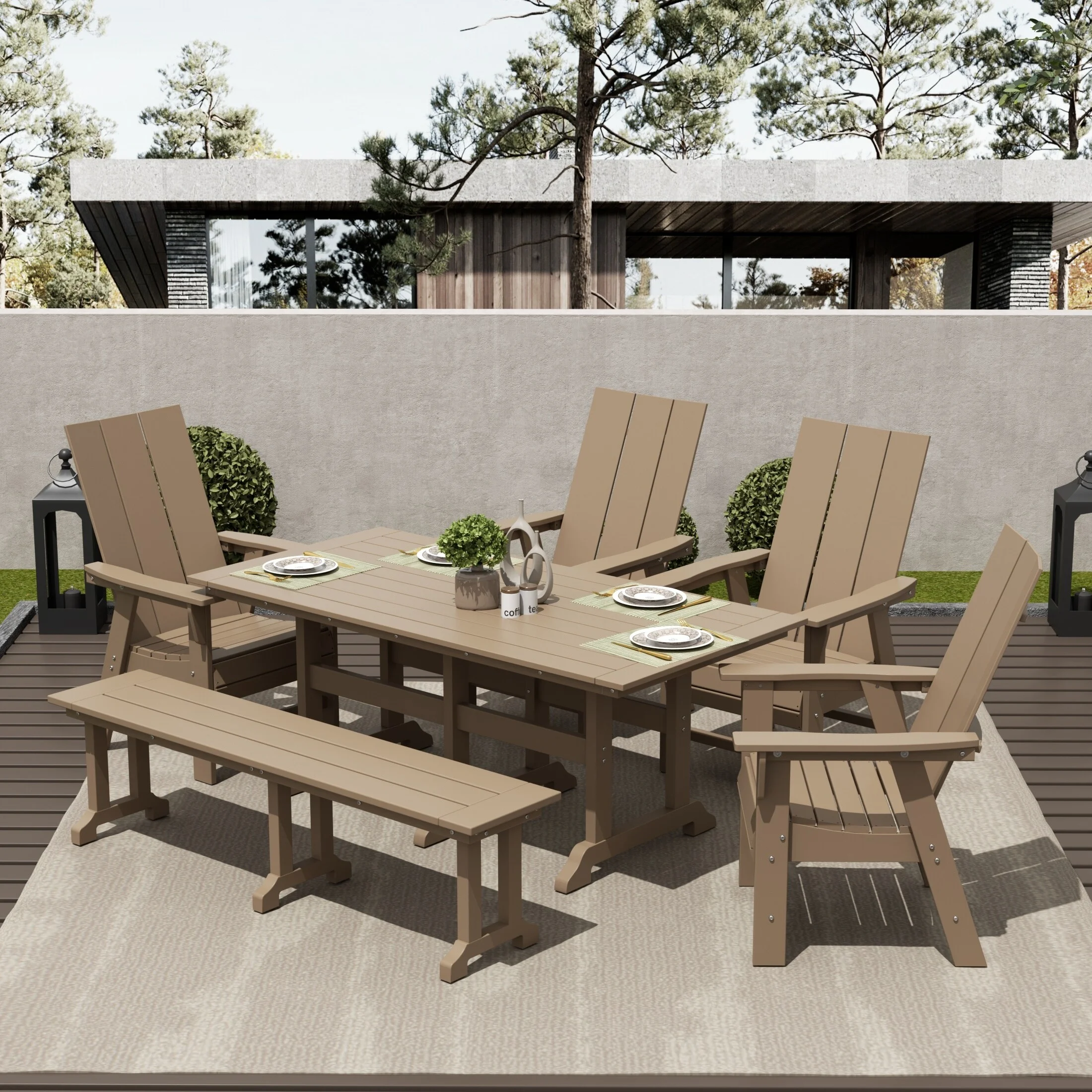 Polytrends Shoreside 6-Piece Rectangular Poly Eco-Friendly All Weather Outdoor Dining Set with Bench Teak