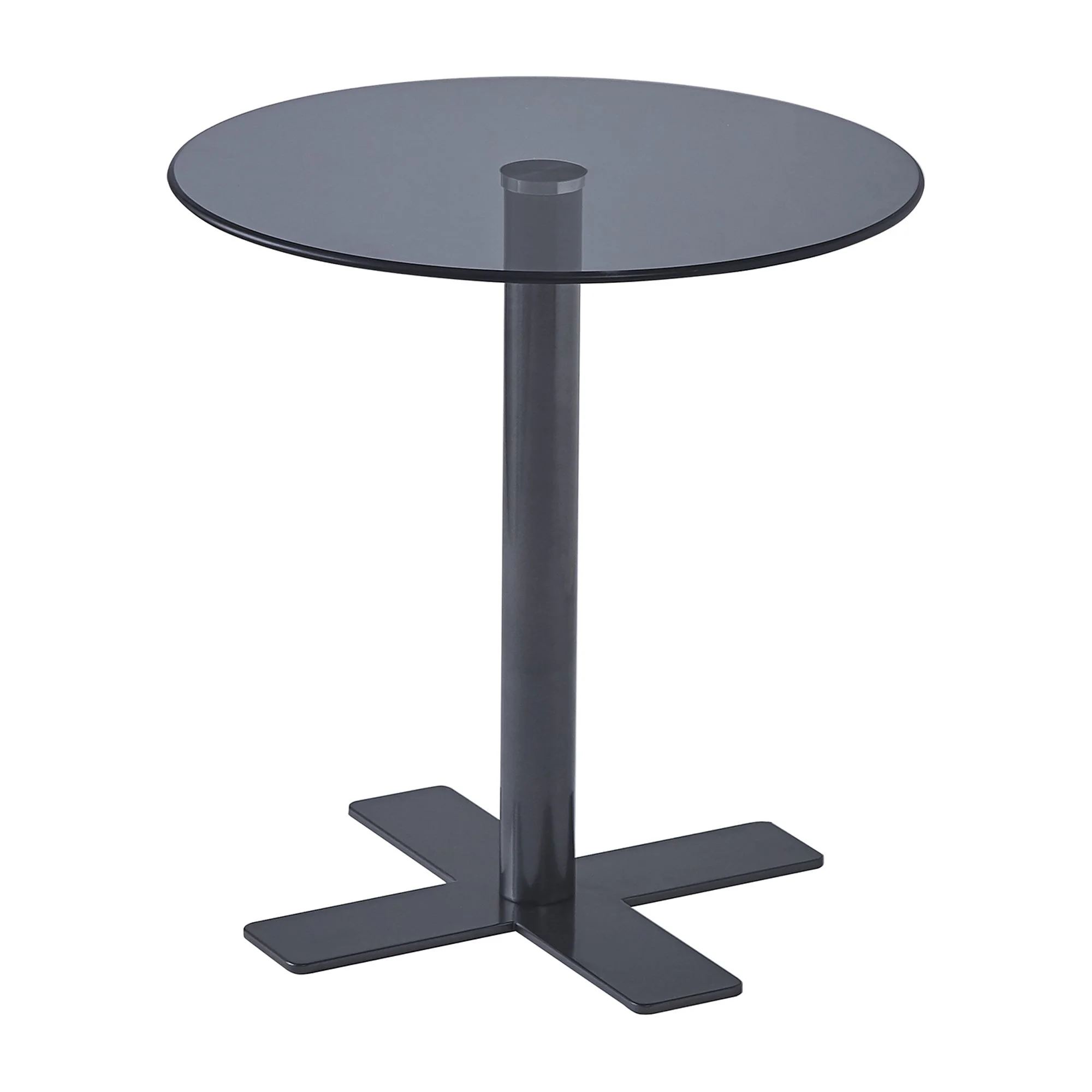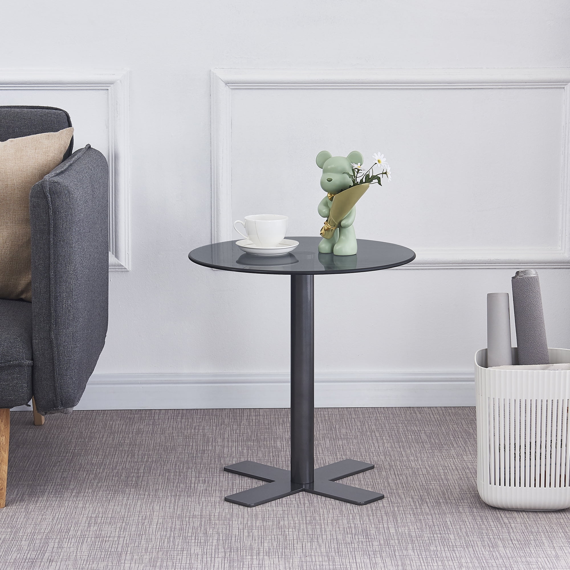 S&M Modern Glass Side Table - Round Black Glass End table with Black Leg Nightstand for Stylish Living Spaces Small Coffee Table 18.9"X18.9"X19.7"H