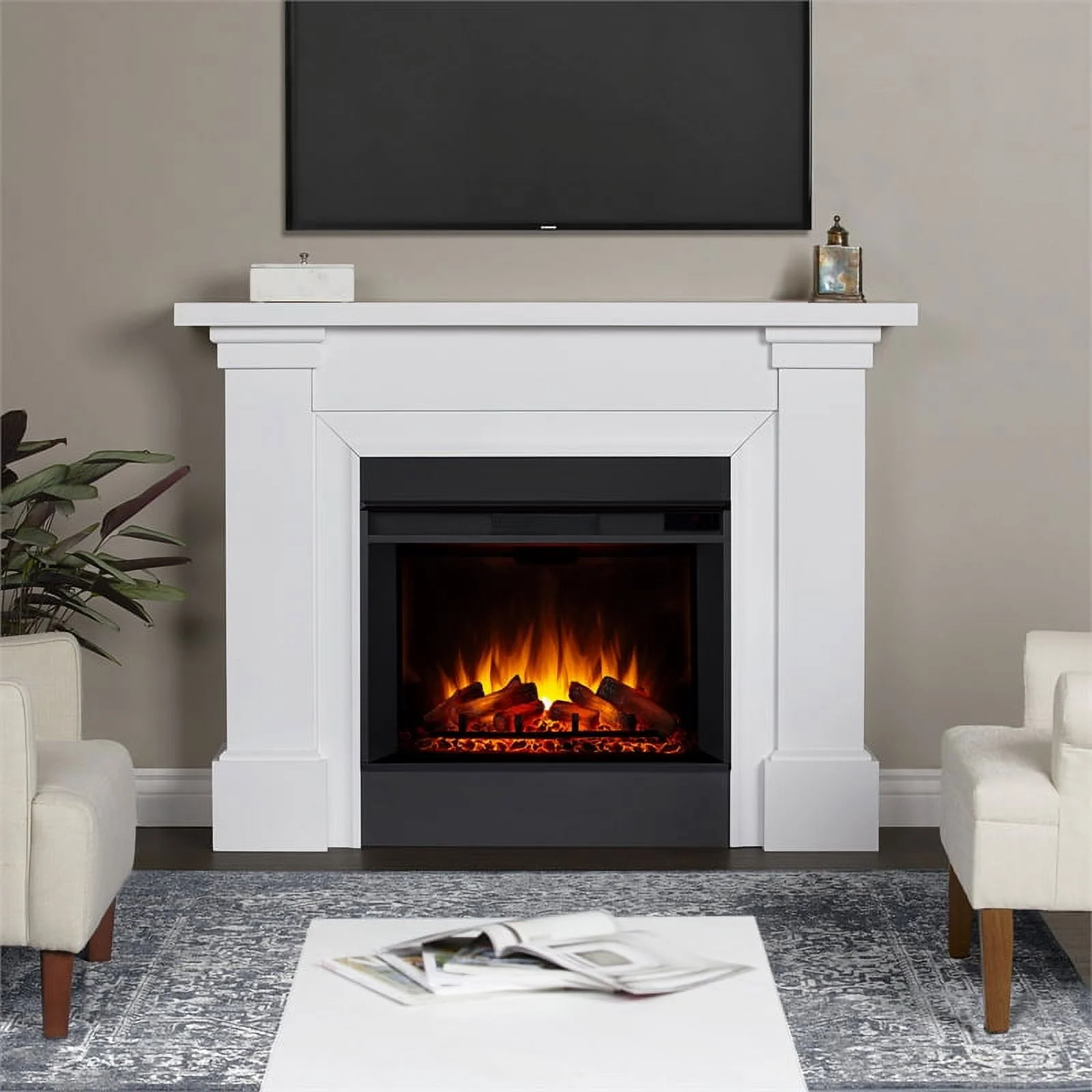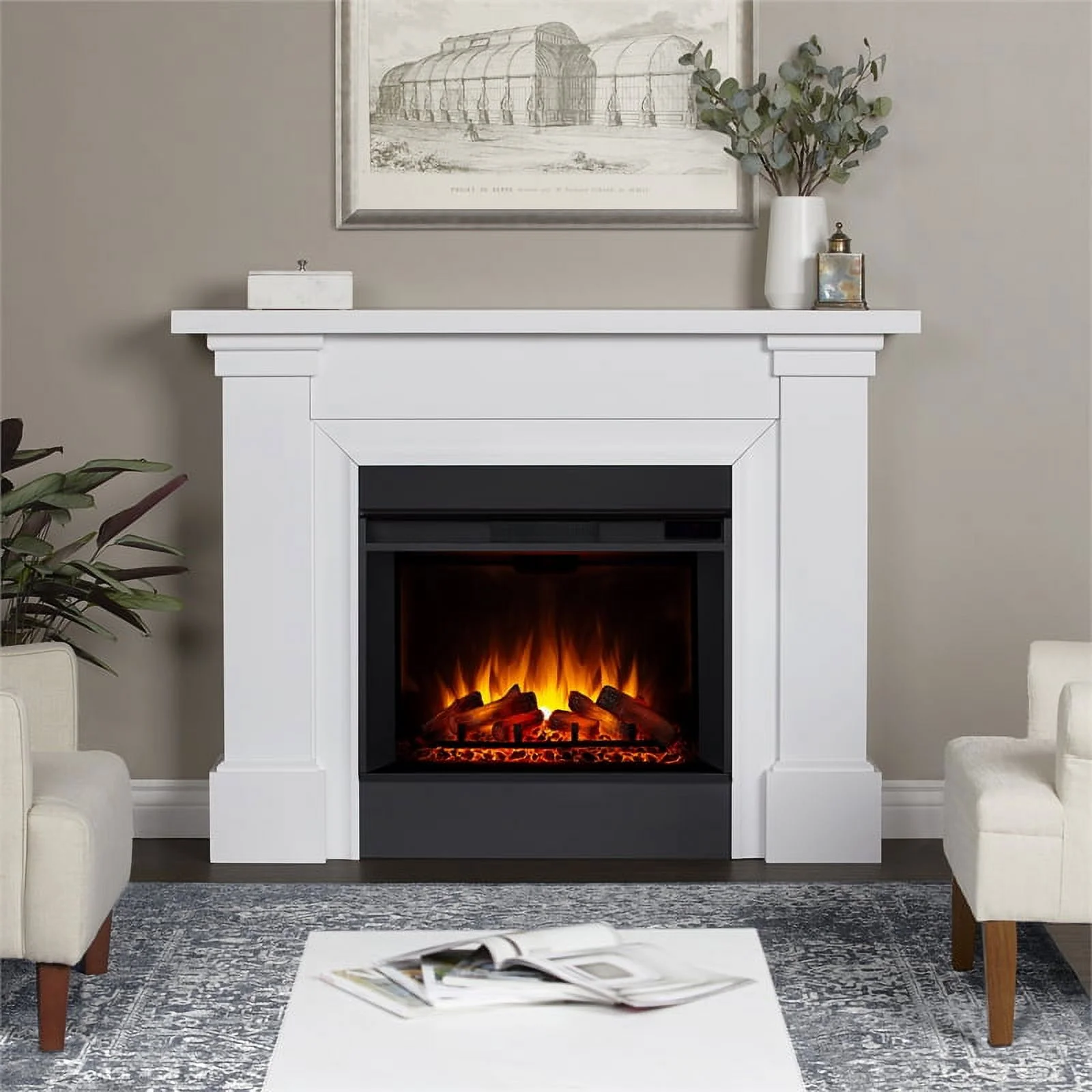 Real Flame Manus 64" Modern Wood Grand Electric Fireplace in White