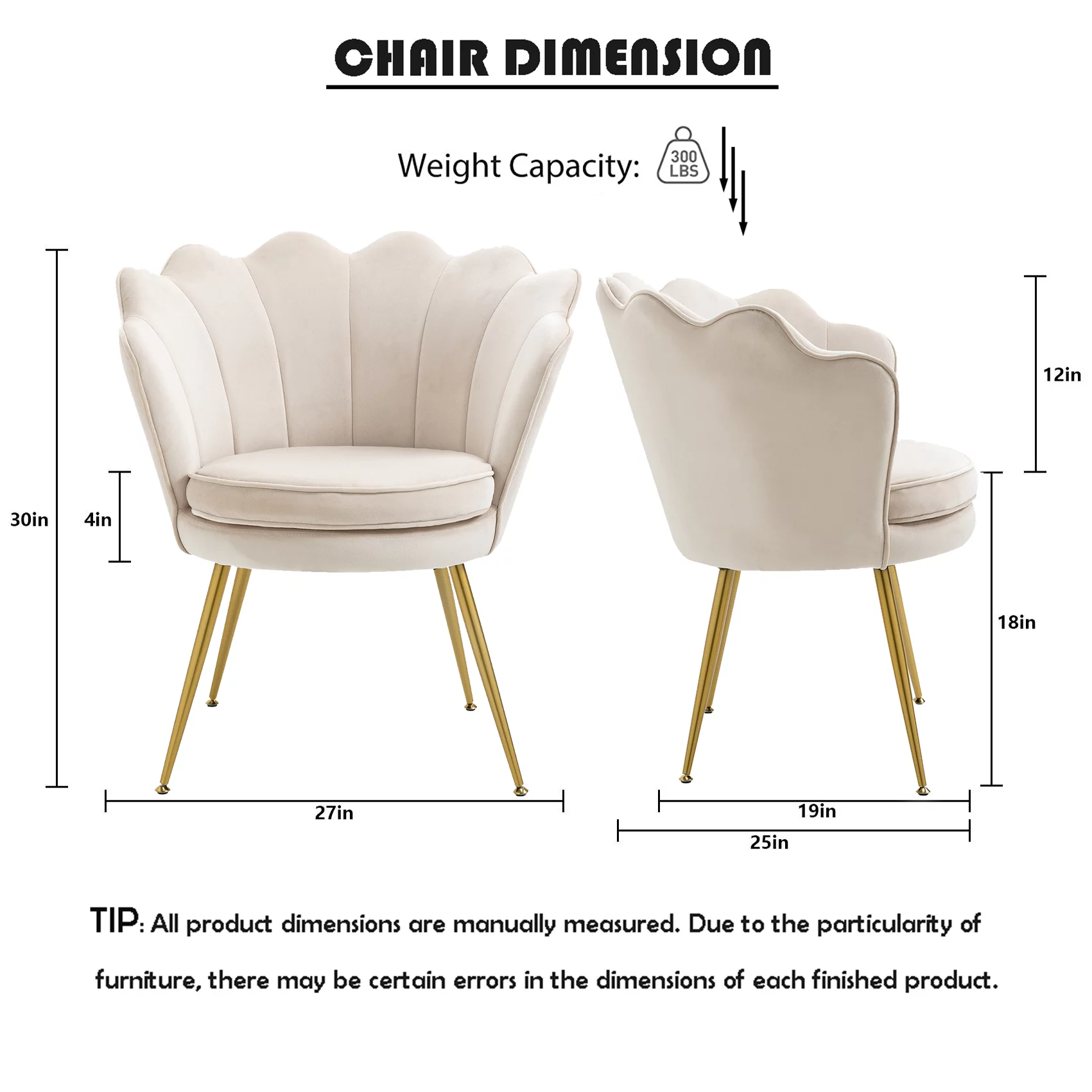 Mid Century Modern Vanity Velvet Chair for Living Room, Fabric Upholstered Arm Chair Guest Chair with Golden Metal Legs, Set of 2, Small, White
