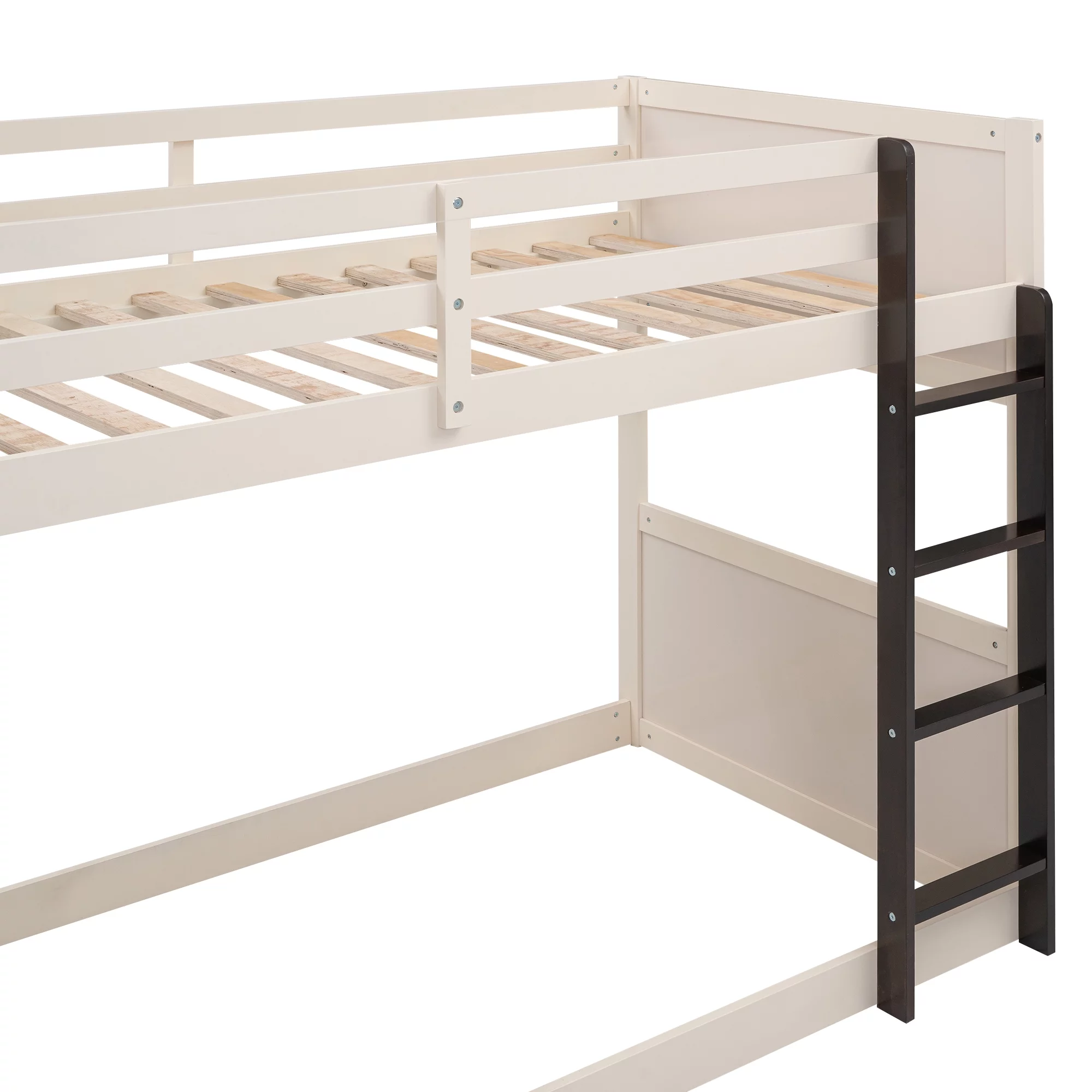 Bellemave Wood Twin over Twin Bunk Bed with Storage Shelves,The Boat-Like Shape is Perfect for Children's Rooms,Cream+Espresso