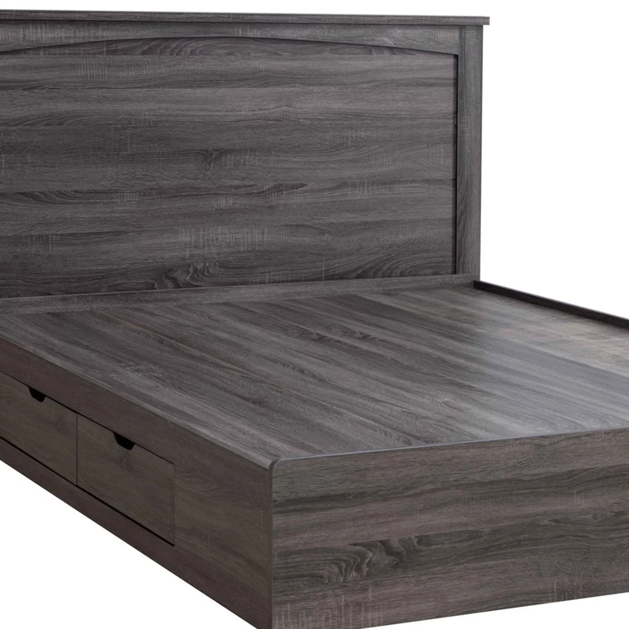 Modern Wood Platform Queen Bed with 2 Hidden Storage Drawers, Oak Brown- Saltoro Sherpi
