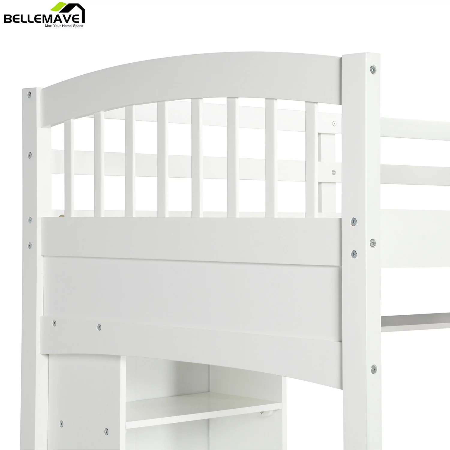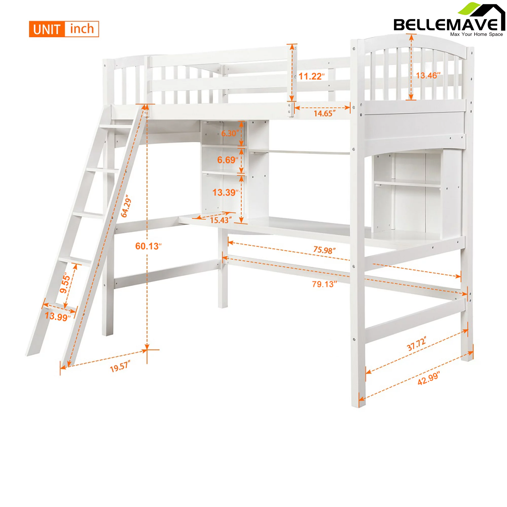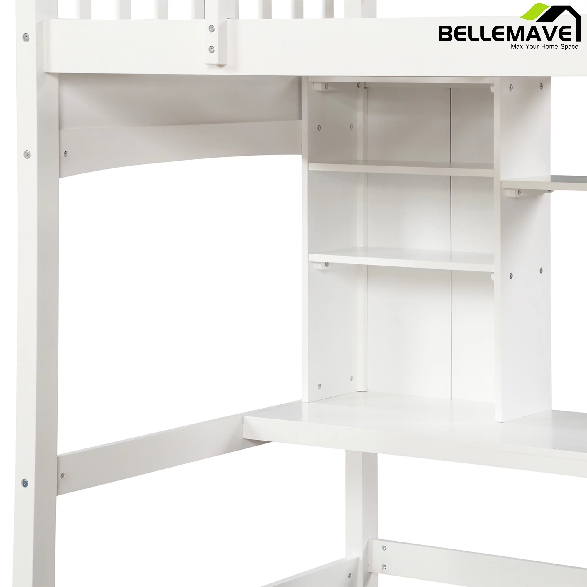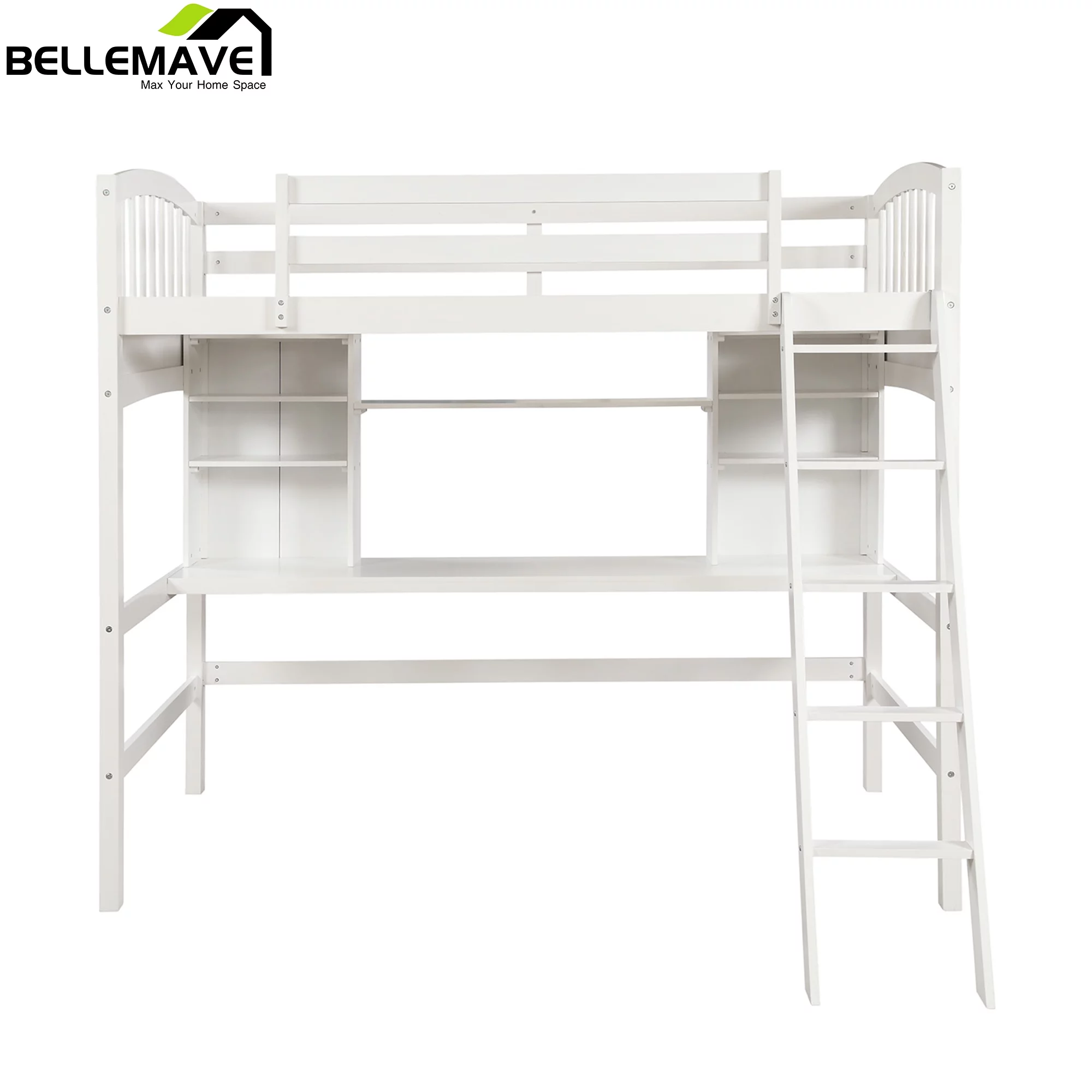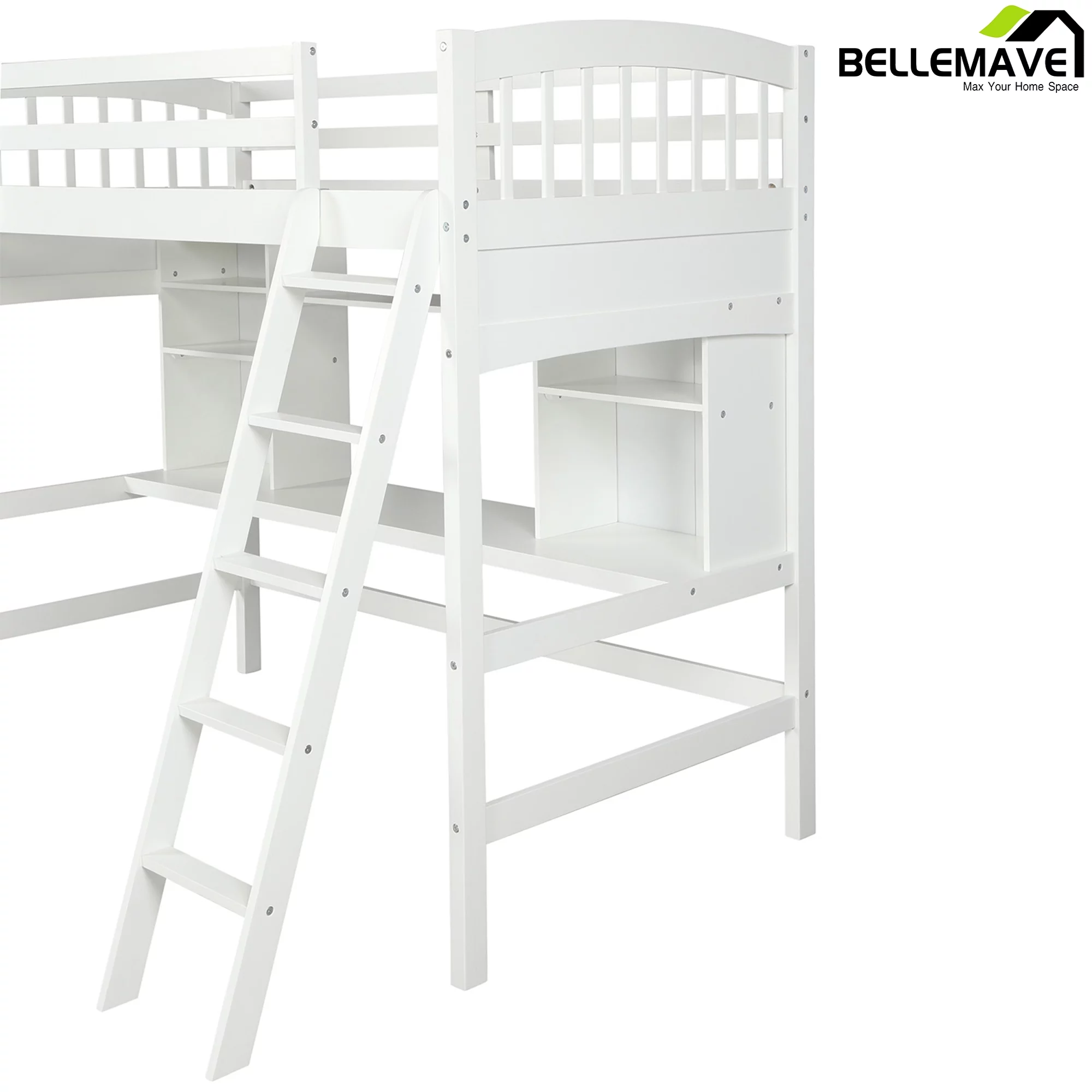 Bellemave Twin Size High Loft Bed with Storage Shelves, Desk and Ladder for Kids Bedroom,Solid Wood Bed frame with Safety Guardrails for Teens,Space Saving Design(White)
