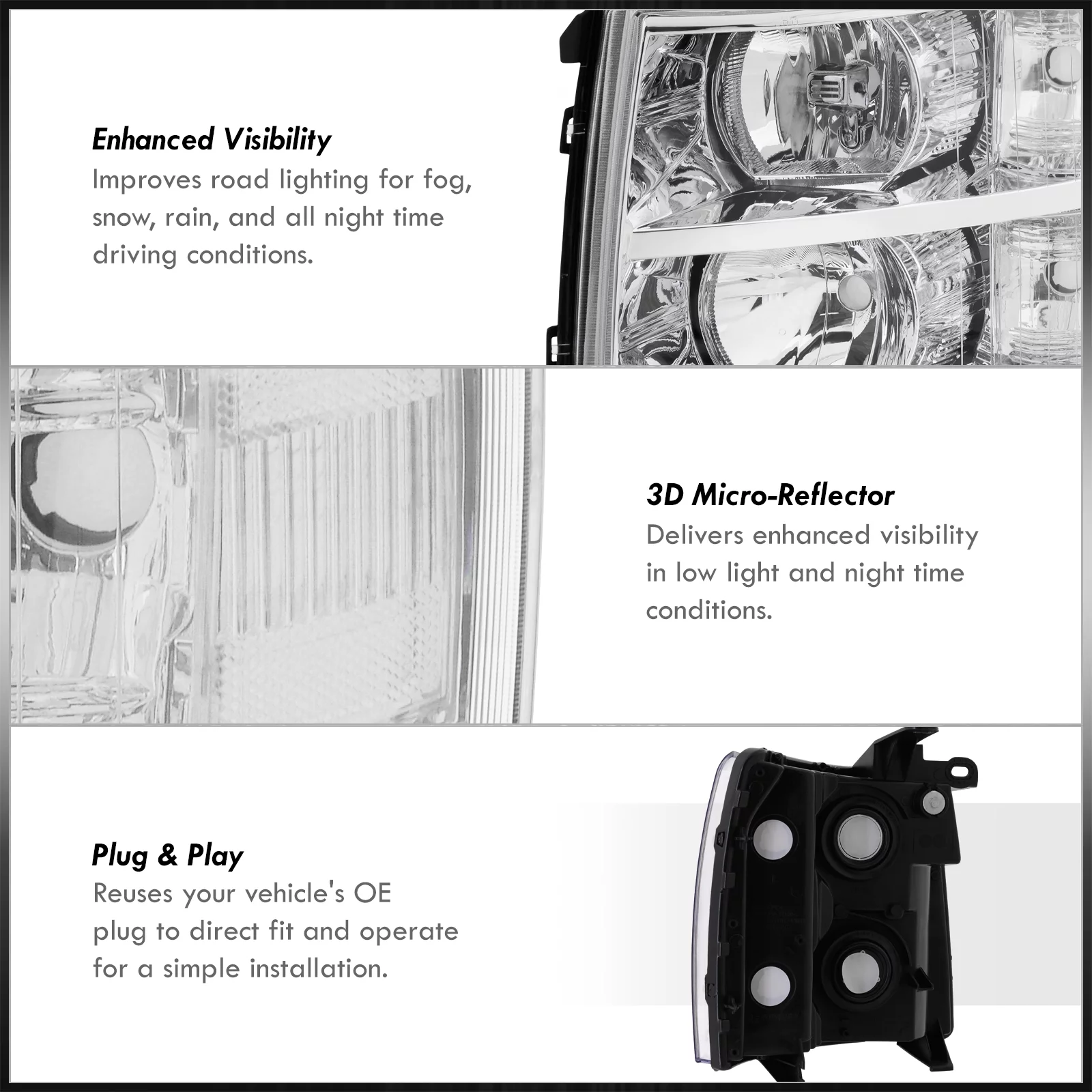 AJP Distributors Chrome Housing Clear Lens Headlights Driving Signal Bumper Lamps Compatible/Replacement For Chevrolet Chevy Silverado 2007 2008 2009 2010 2011 2012 2013 2014 07 08 09 10 11 12 13 14
