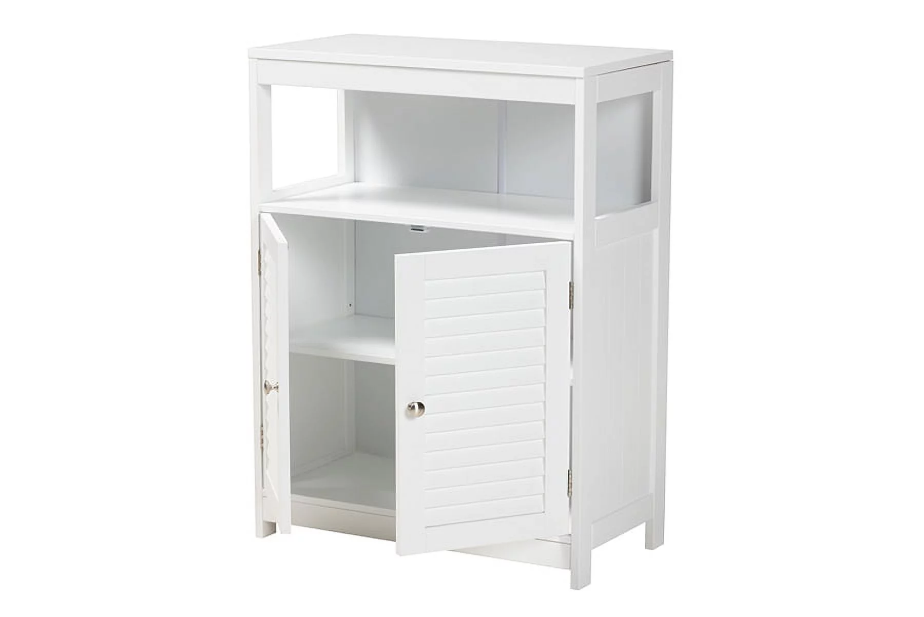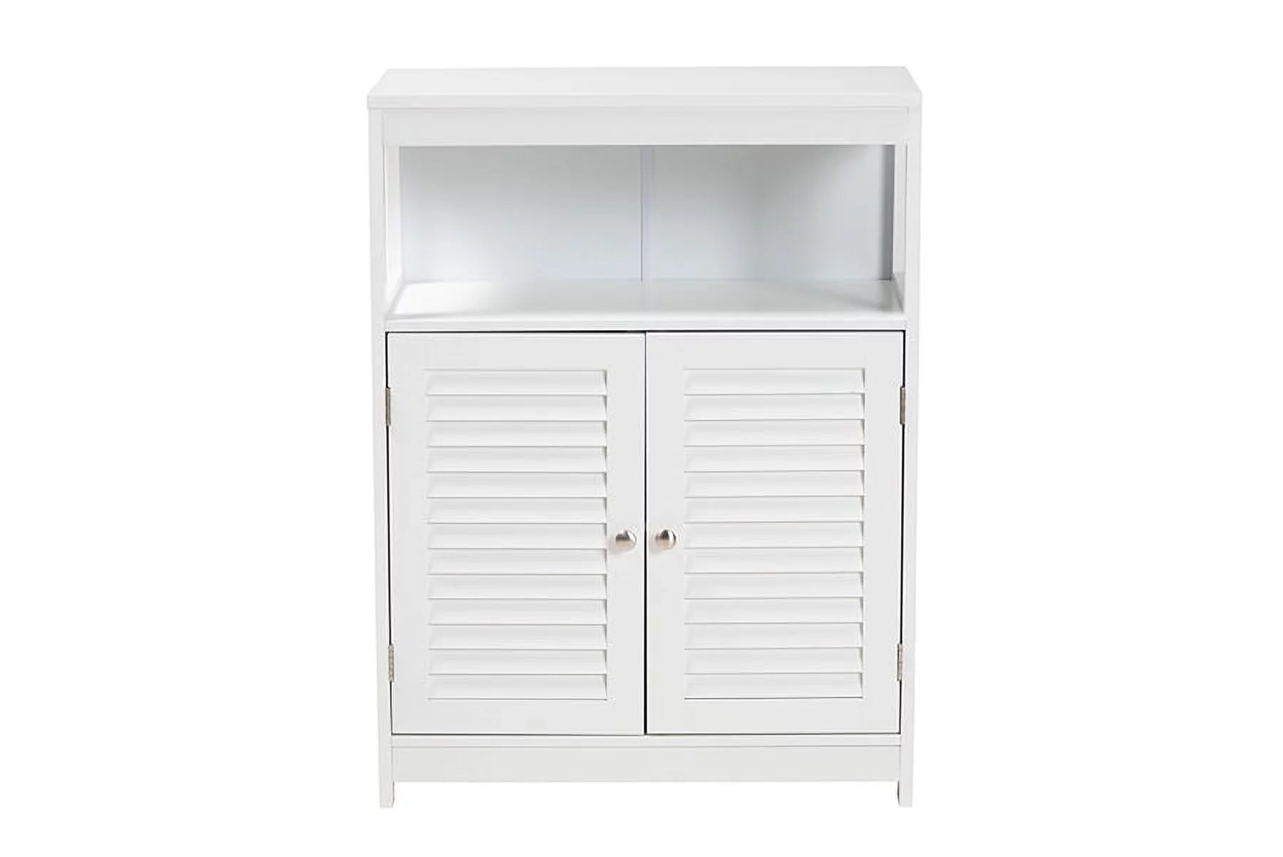 Baxton Studio Rivera Modern and Contemporary White Finished Wood and Silver Metal 2-Door Bathroom Storage Cabinet