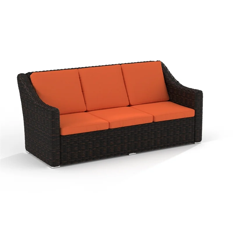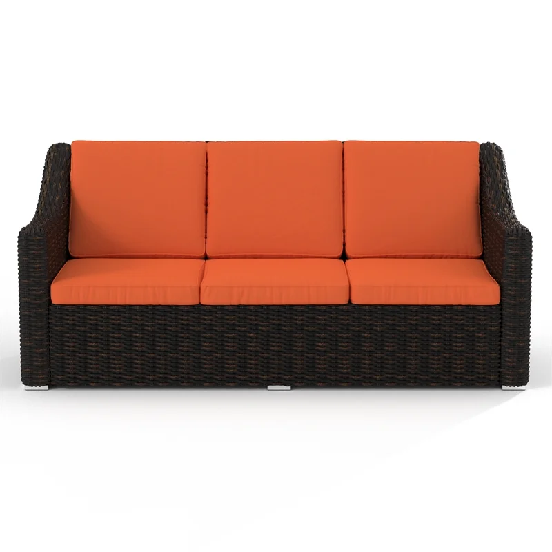 Saint Birch Contemporary Cast Iron Outdoor Wicker Sofa in Orange