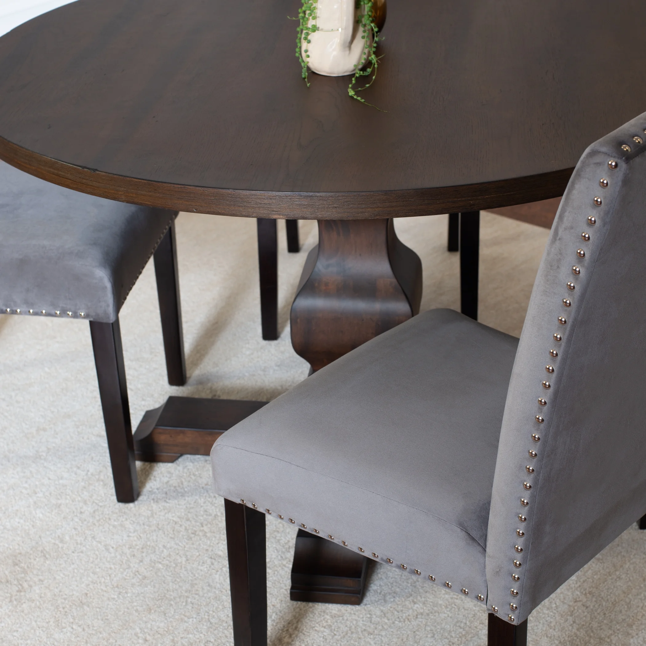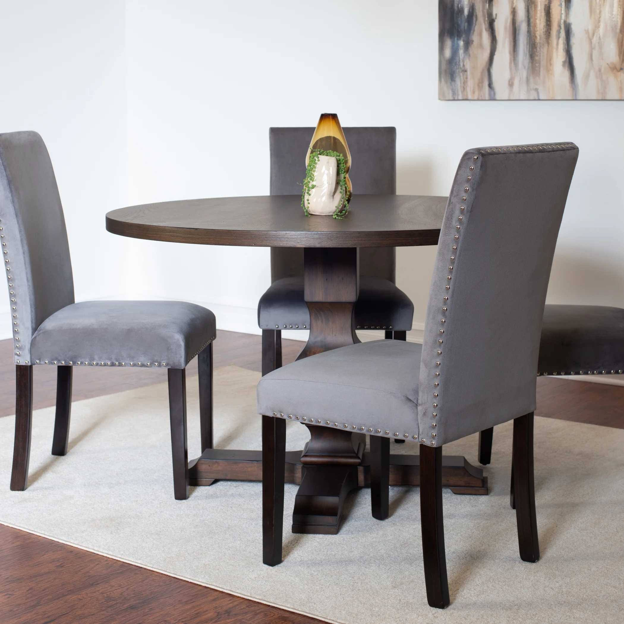 Roundhill Furniture Fordsville 5-piece Dining Set, Pedestal Round Table with 4 Stylish Chairs, Gray